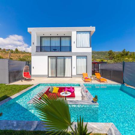 Villa Sisters,Kalkan Üzümlü'de 2022 Yapımı harika havuz ve bahçeli havuz alanı korunaklı balayı villasıdır.Dubleks mimaride olan villamız modern ve kaliteli eşyalarla döşenmiştir.Ana yatak odasında çift kişilik jakuzi bulunmaktadır.Salonda kondisyon bisikleti ve eğlenceli vakit için langırt bulunan evimiz misafirlerimizin ihtiyaçları doğrultusunda donatılmıştır.