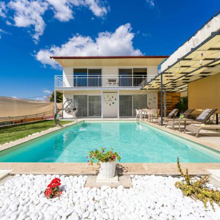 Villa Smyrna,Kalkan'ın merkeze yakın noktalarından Akbel mevkisinde 2 yatak odası 4 kişi kapasiteli deniz manzaralı özel havuzlu tatil villasıdır.Villamız şık tasarıma sahip olup kaliteli eşyalarla donatılmıştır.Merkeze araçla bir kaç dakikada bulunan evimiz deniz manzaralı geniş bahçeye sahiptir.Yatak odasında jakuzi bulunan evimiz balayı çiftleri ve çekirdek aileler için idealdir.Havuz alanı %70 korunaklı olan villamızda 2 adet çift kişilik yatak bulunmaktadır.