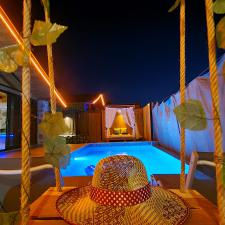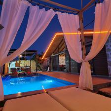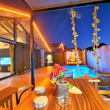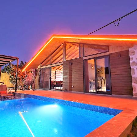 Villa Softs, Kalkan Sarıbelen mevkisinde tek yatak odalı havuz alanı korunaklı jakuzili, sinema sistemli taş balayı villasıdır.