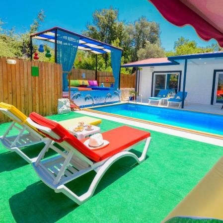 Kalkan Üzümlü köyünde tek yatak odası ile 2 kişilik kapasiteye sahip villadır.Çekirdek aile ve balayı çiftleri için ideal bir seçenek olan villamızın yatak odasında jakuzi bulunmakadır.