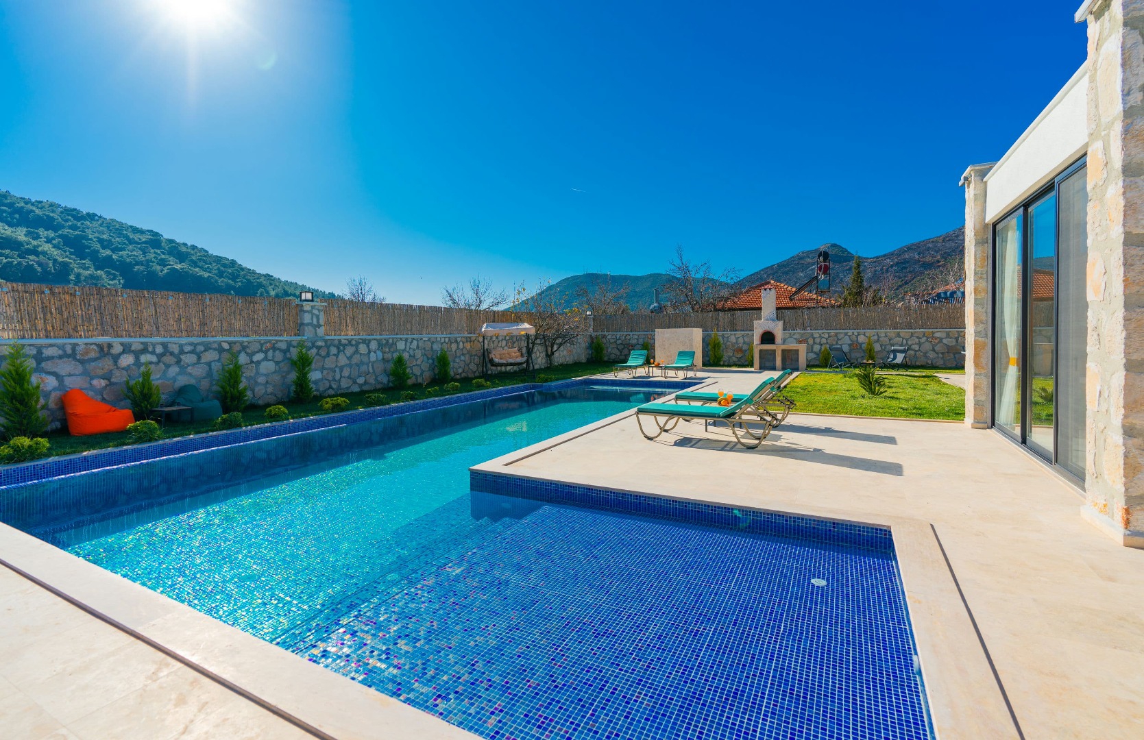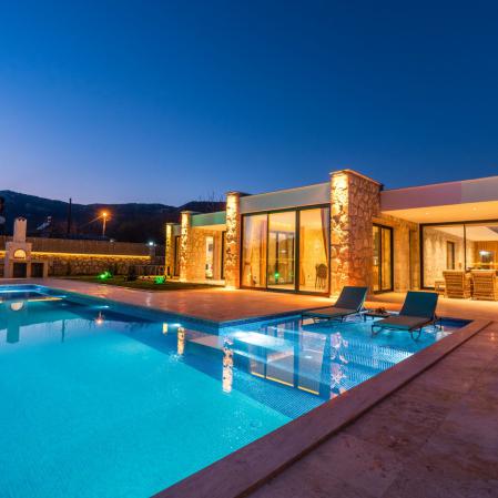 Villa VIP, Antalya'nın villa turizmiyle meşhur ilçesi Kaş-Kalkan'da Sarıbelen mevkisinde bulunmaktadır. Villamız 3 yatak odası 7 kişi kapasiteli 2023 yapımı taş bir villadır.