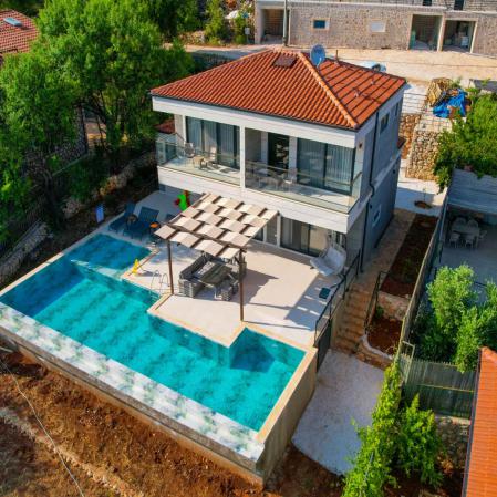 Kaş kiralık villa seçenekleri arasında öne çıkan villamız; doğa manzaralı villamız son derece sessiz sakin bir konumda yer almaktadır Villamız geniş terası ve harika doğa manzarasıyla misafirlerini cezbetmektedir. Havuzda bulunan sığ kısım çocuk havuzu olarak kullanılabilir. Tüm odalarında ebeveyn banyosu bulunan evimiz kaliteli eşyalarla döşenmiştir. Villamızın hemen önünde benzer mimariye sahip 6 kişilik Villa Adin bulunmaktadır. Birlikte villa kiralamak geniş aileler ve arkadaş grupları için uygundur.