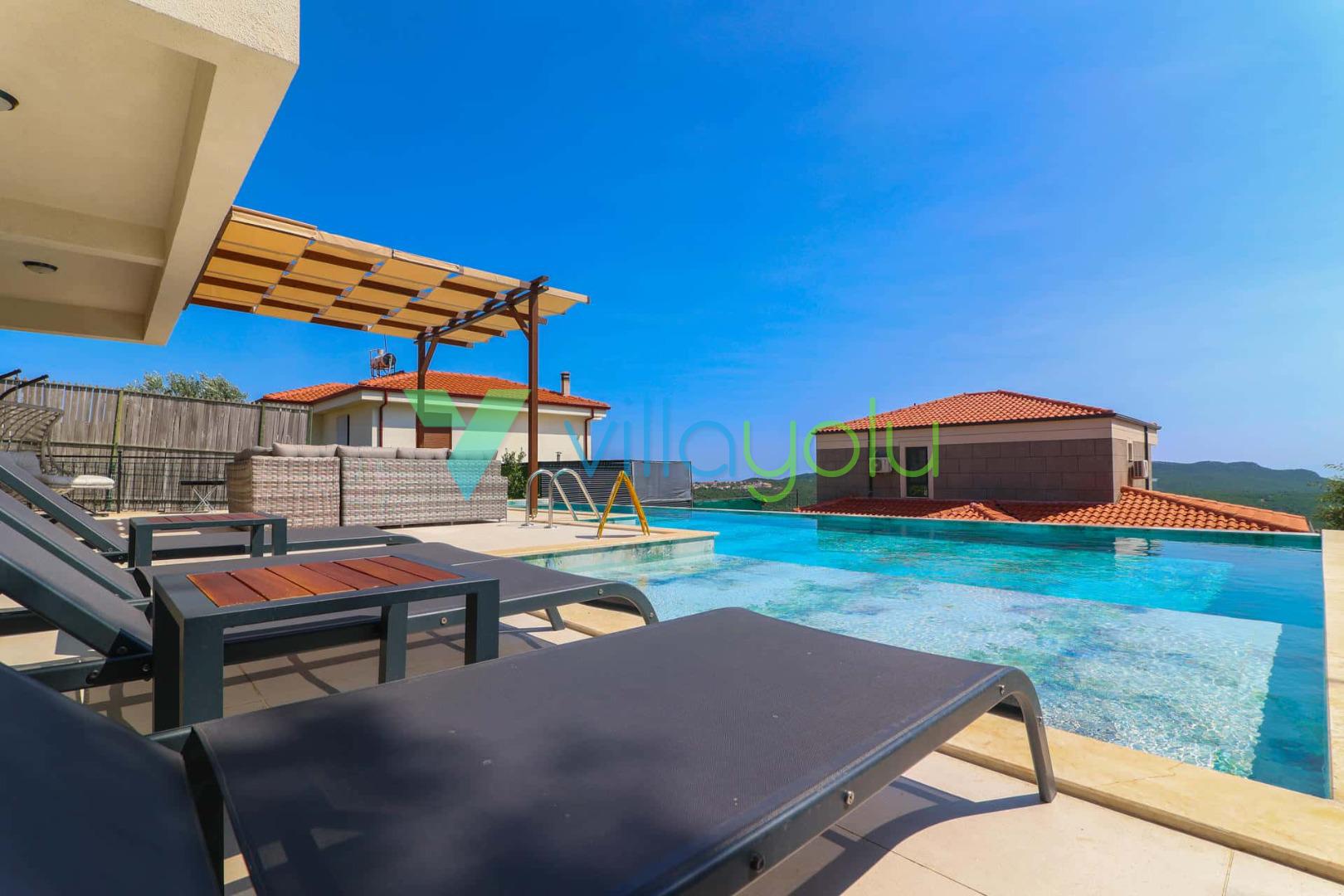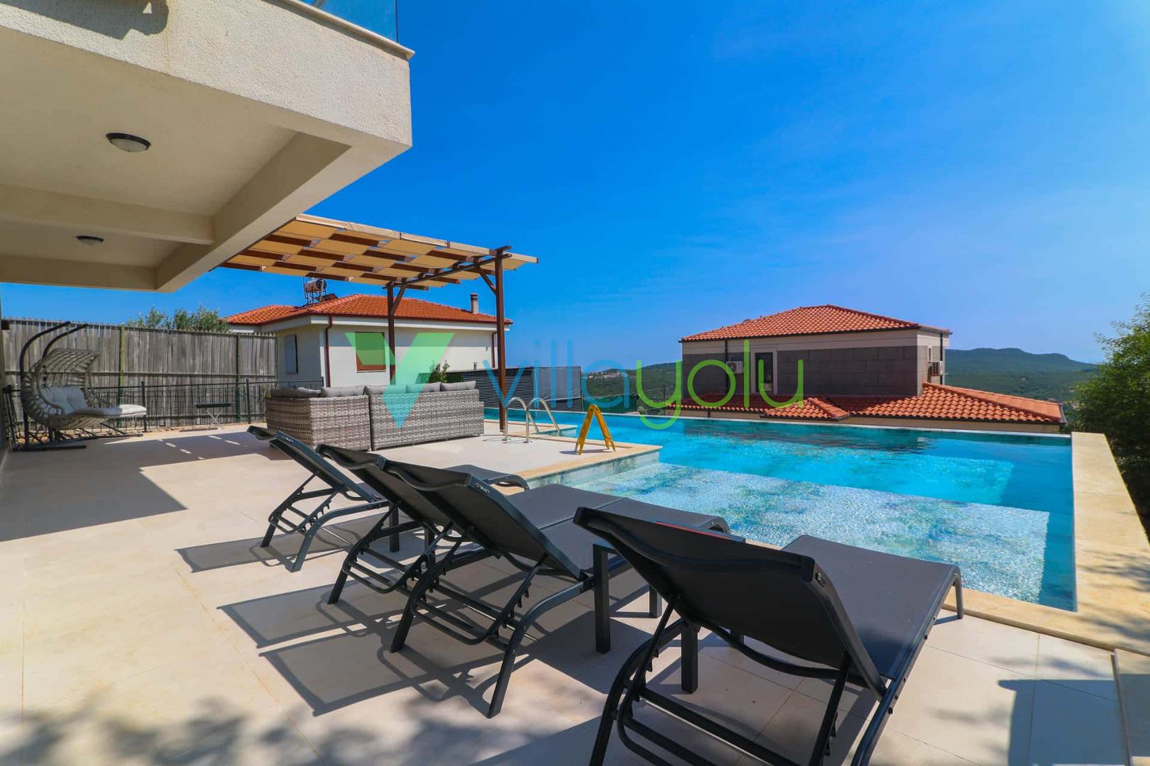 Villada yer alan yüzme havuzu tamamen size özeldir ve her konaklama sonrası profesyonel ekipler tarafından temizlenip dezenfekte edilmektedir.