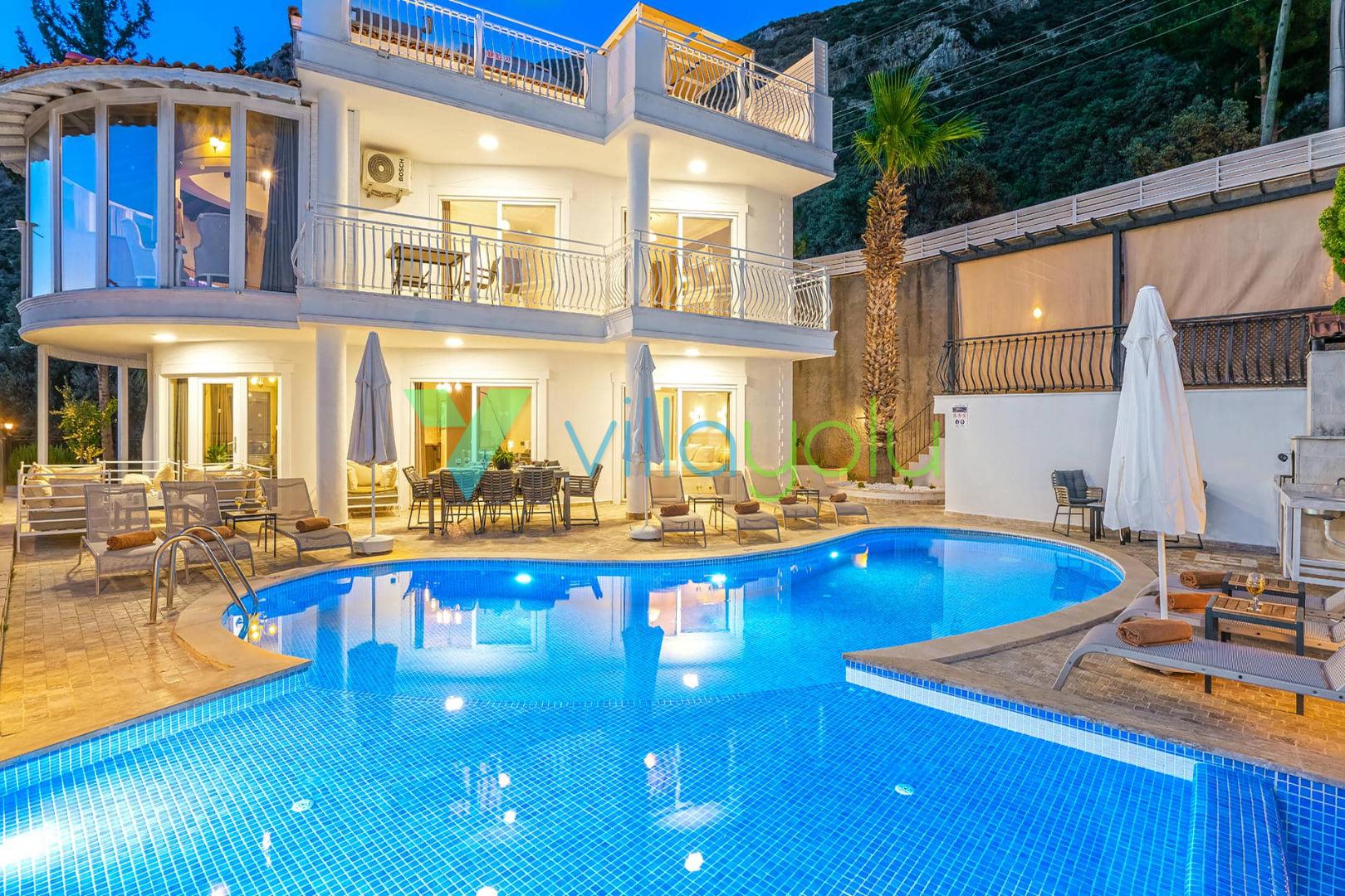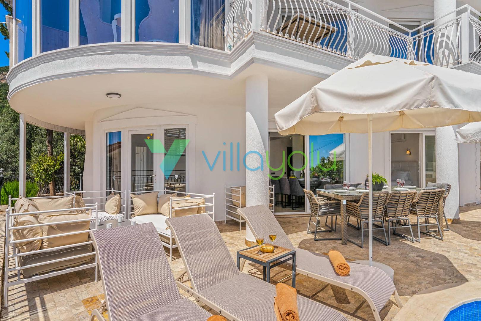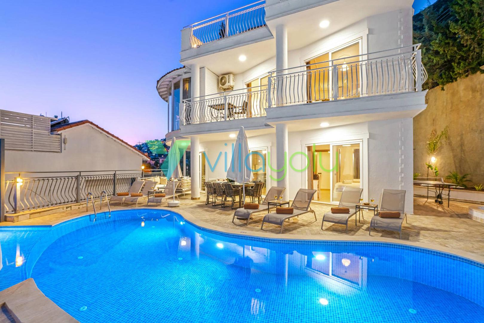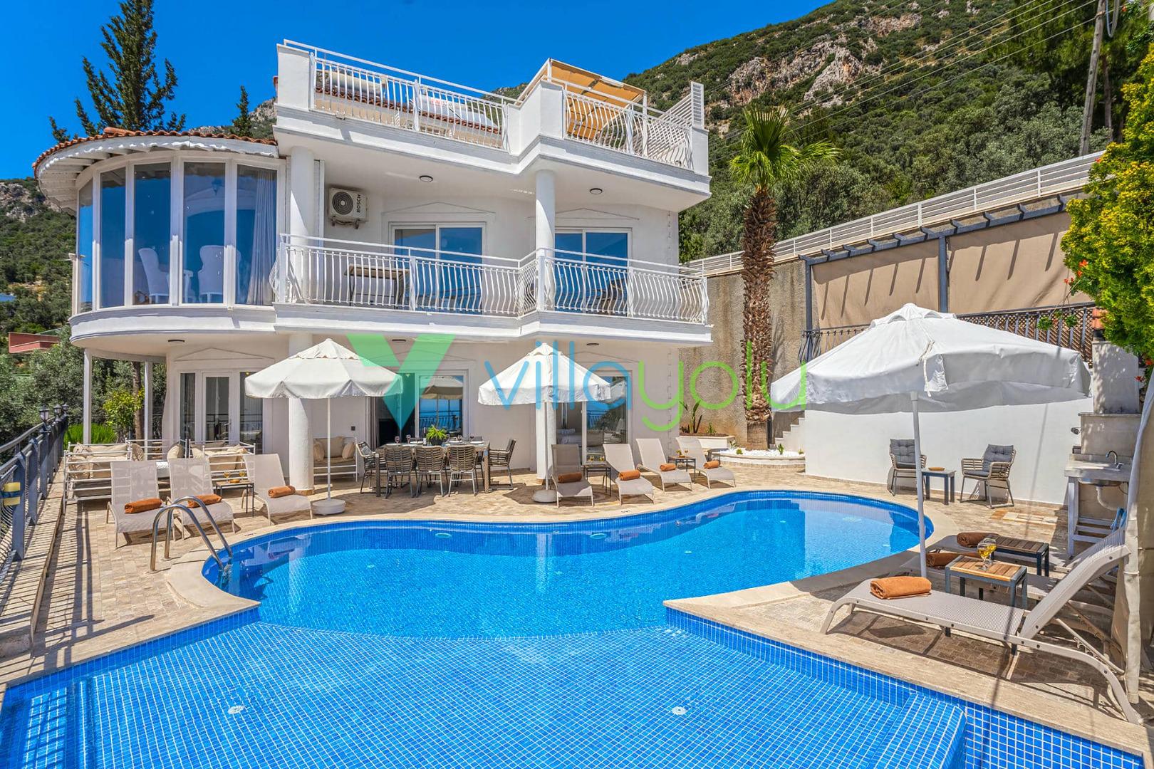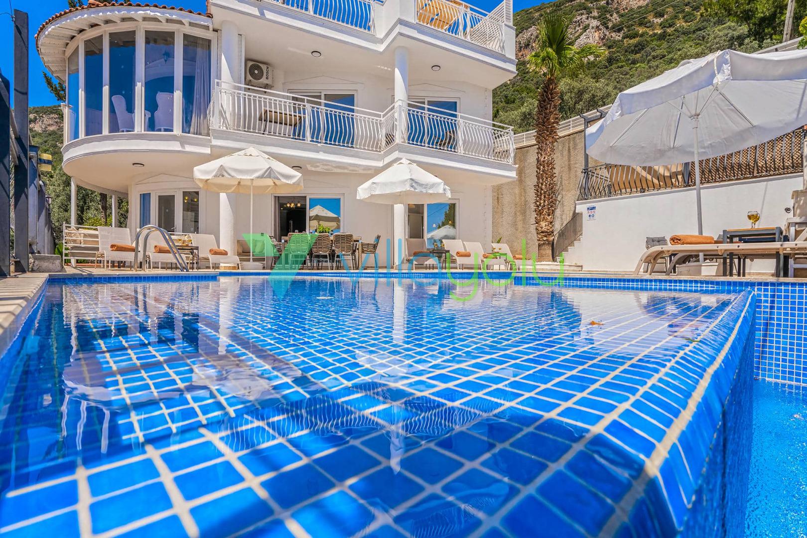Villa Beyaz, Kalkan Kızıltaş'ta bulunan 5 yatak odalı 10 kişilik deniz manzaralı villamızdır.Villamızın ana yatak odasında kapalı havuz,teras katındaki odasında ise jakuzi bulunmaktadır. Havuza entegre geniş bir çocuk havuzu bulunan villamız çocuklu aileler için uygun bir seçenektir.Kalkan merkeze çok yakın konumda bulunan villamız,plajlara araçla 5 dk mesafededir.Geniş aile ve arkadaş grupları için harika bir seçimdir.