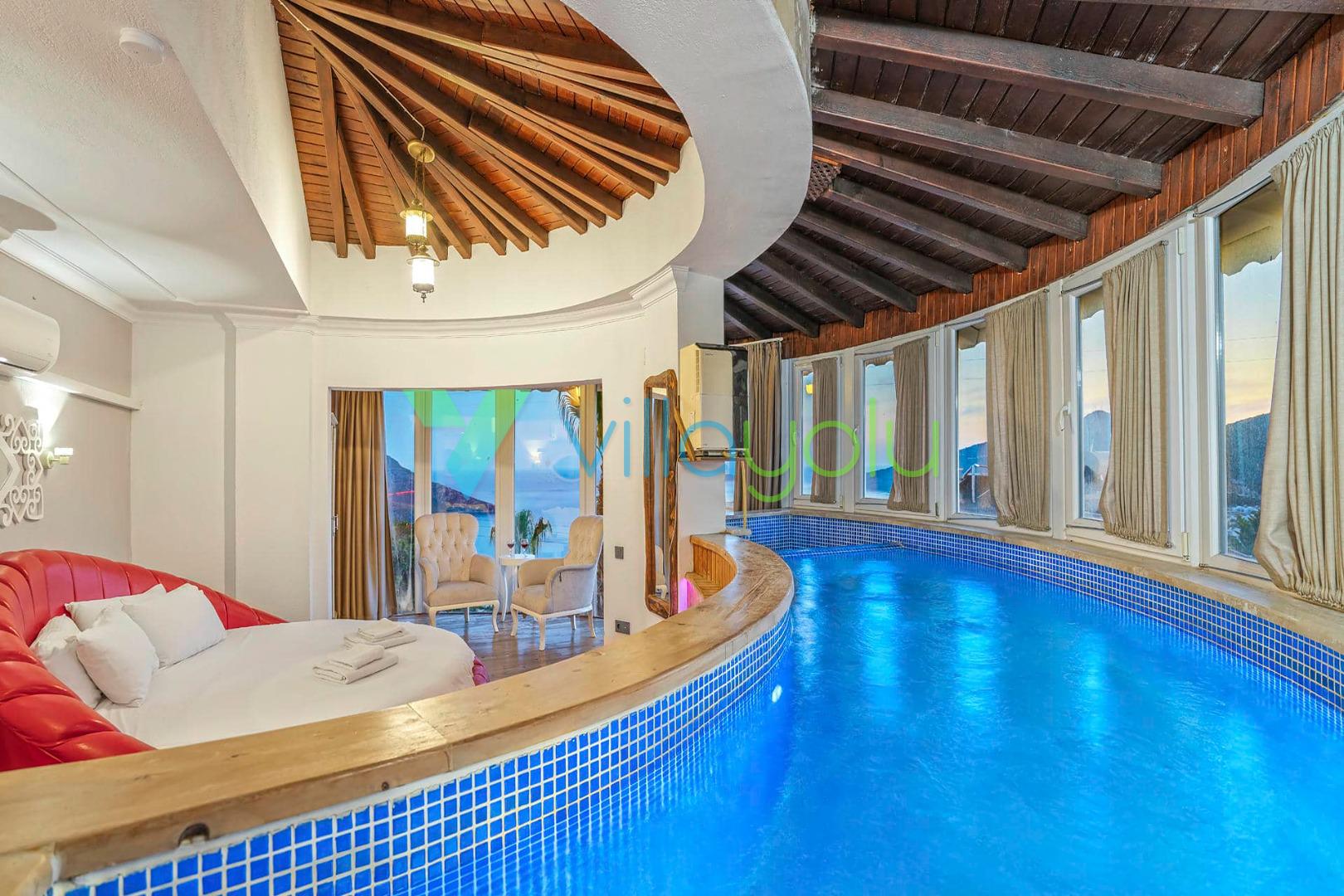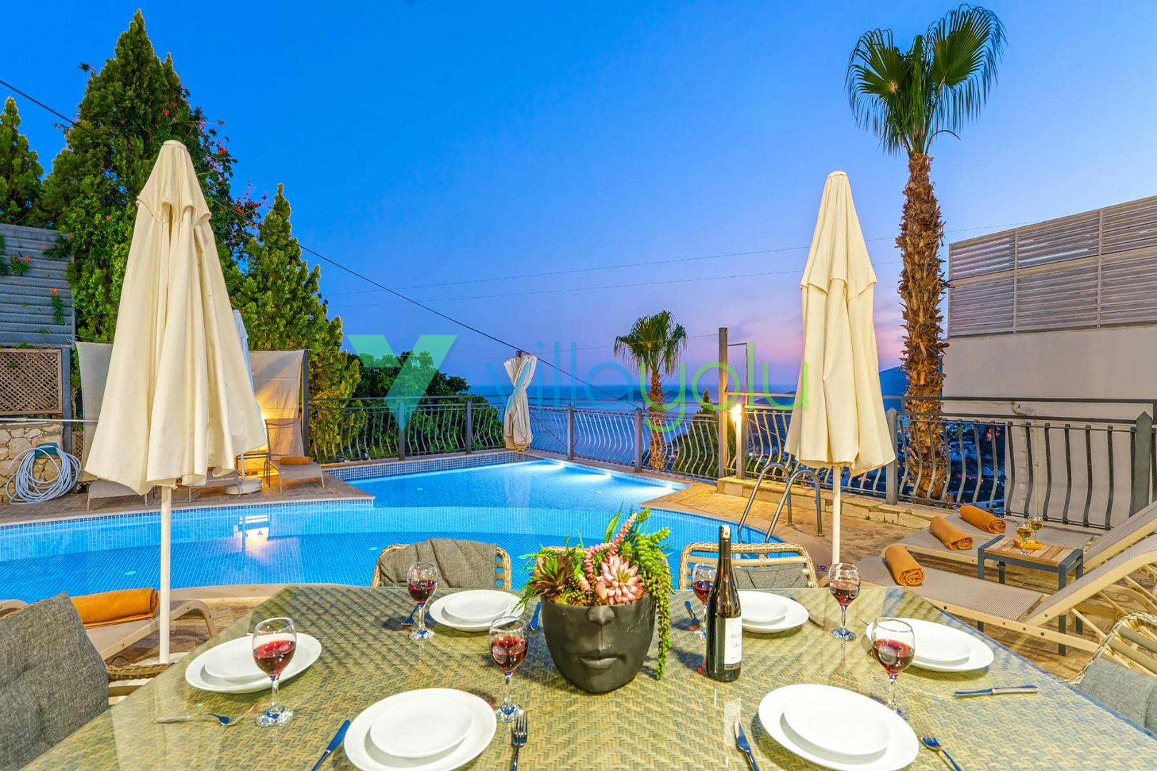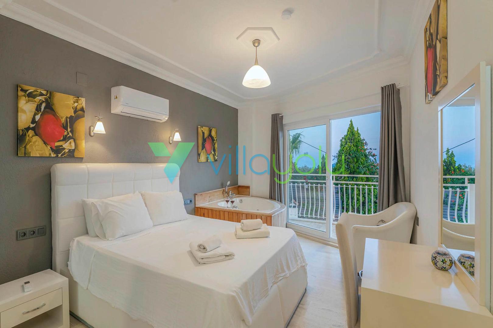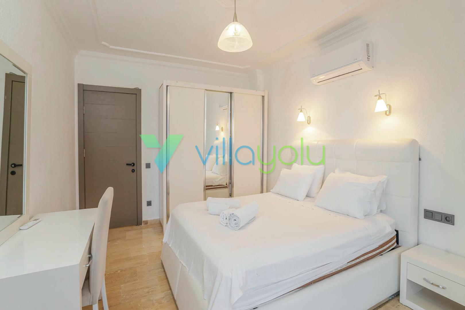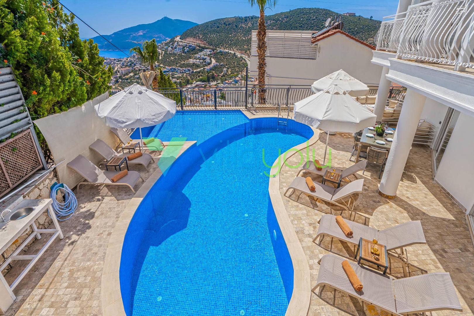 Villa Beyaz, Kalkan Kızıltaş'ta bulunan 5 yatak odalı 10 kişilik deniz manzaralı villamızdır.Villamızın ana yatak odasında kapalı havuz,teras katındaki odasında ise jakuzi bulunmaktadır. Havuza entegre geniş bir çocuk havuzu bulunan villamız çocuklu aileler için uygun bir seçenektir.Kalkan merkeze çok yakın konumda bulunan villamız,plajlara araçla 5 dk mesafededir.Geniş aile ve arkadaş grupları için harika bir seçimdir.