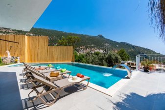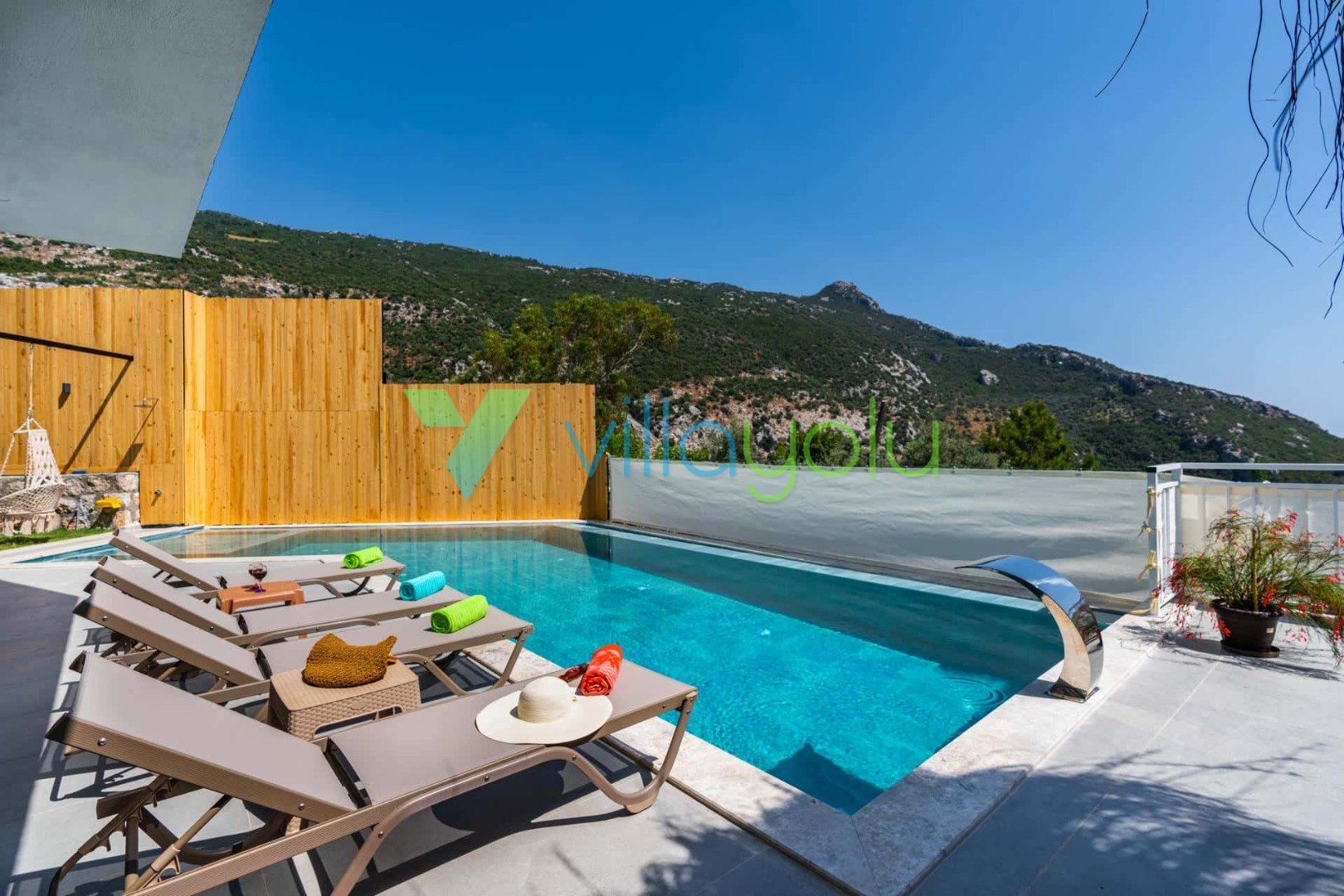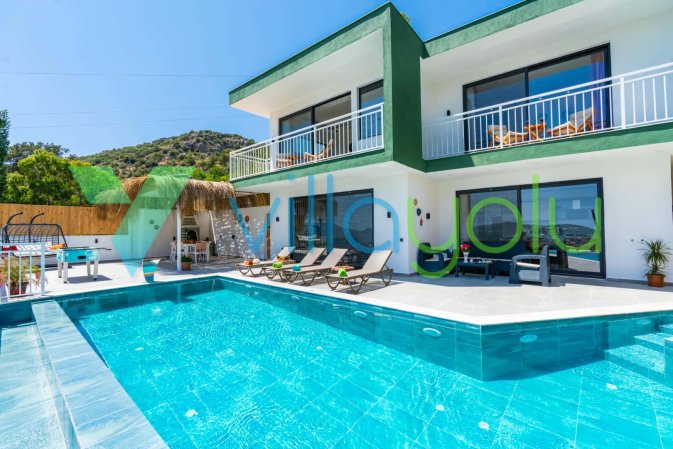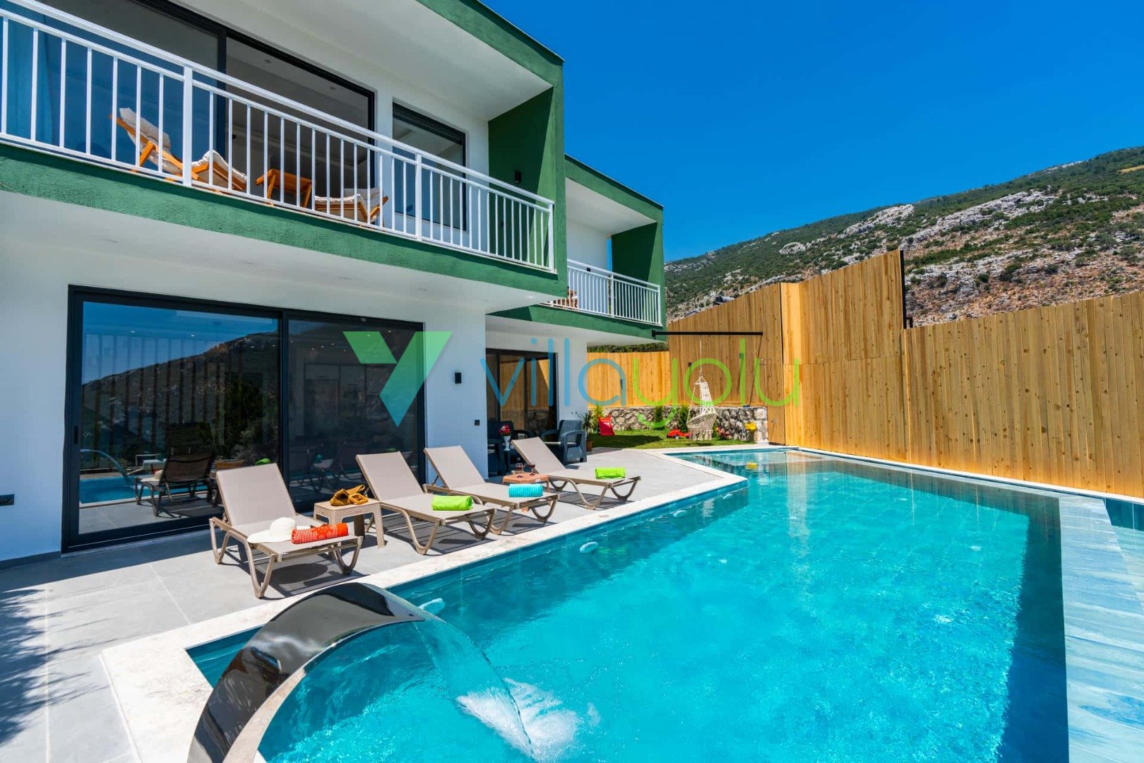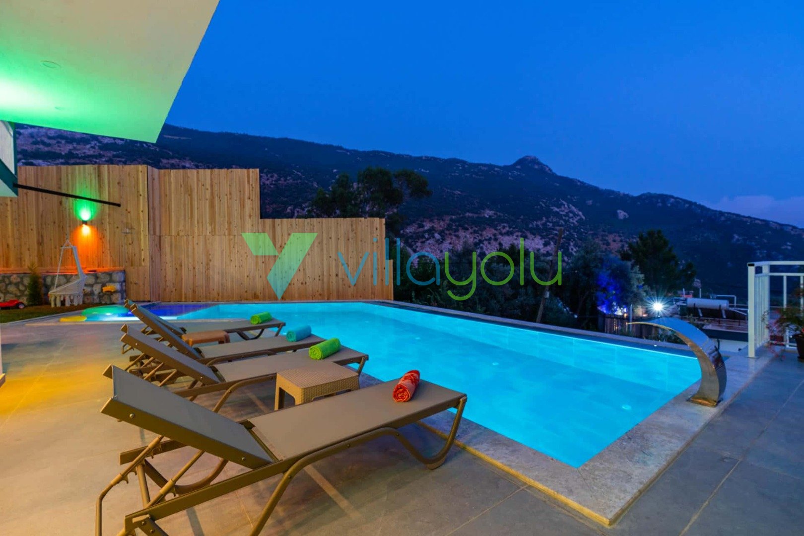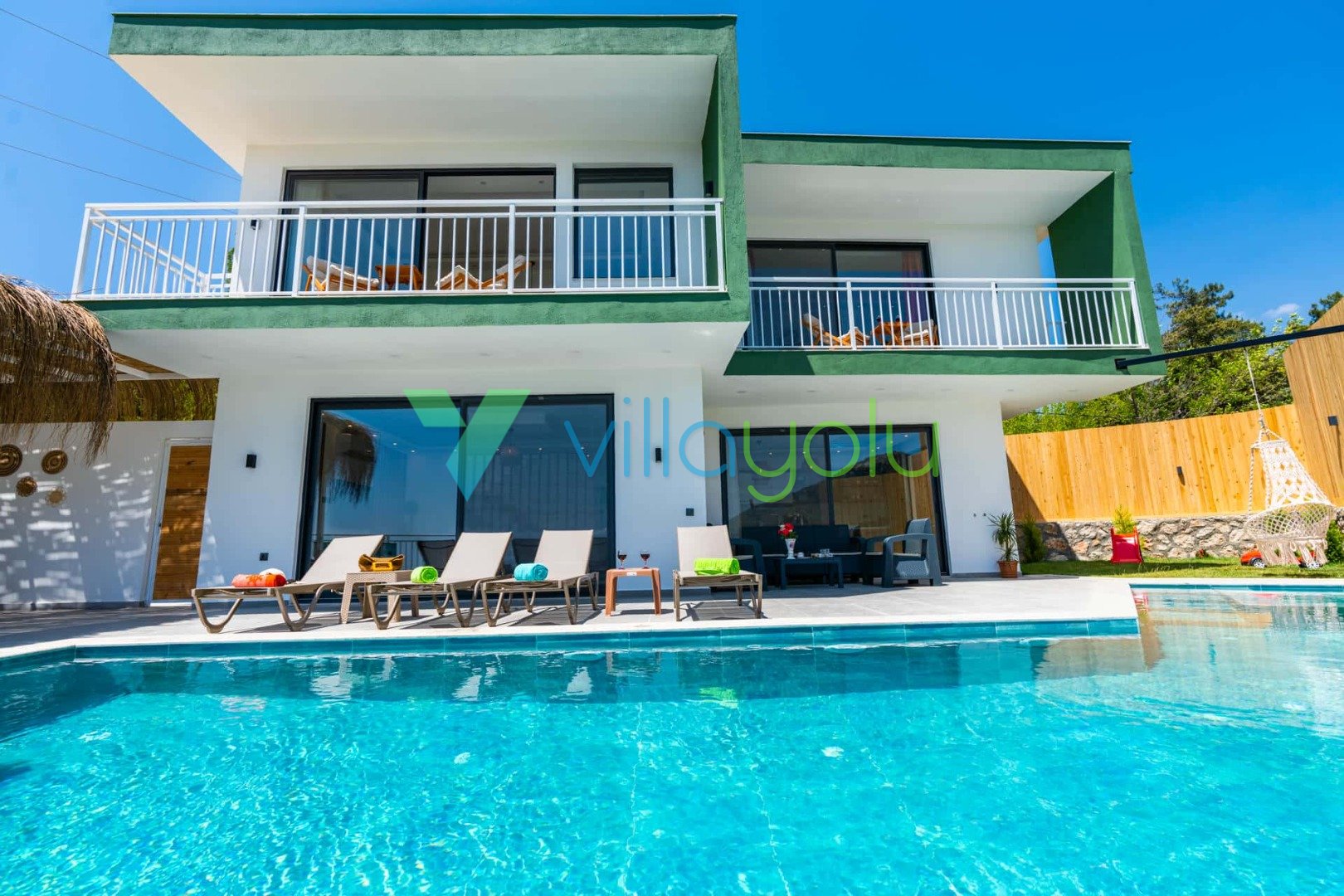 Villa Buyaz,Kalkan İslamlar'da havuz alanı korunaklı,doğa manzaralı villamız 2 yatak odalı olup 5 kişilik konaklama kapasitesine sahiptir. Yeşillikler içersinde bulunan villamız, şehir hayatının gürültülü atmosferinden biraz uzakta tatili tercih edenler için harika bir seçenek.Ana yatak odasında çift kişilik jakuzi bulunmaktadır.Havuza entegre çocuk havuzu ile çocuklu aileler içinde idealdir.