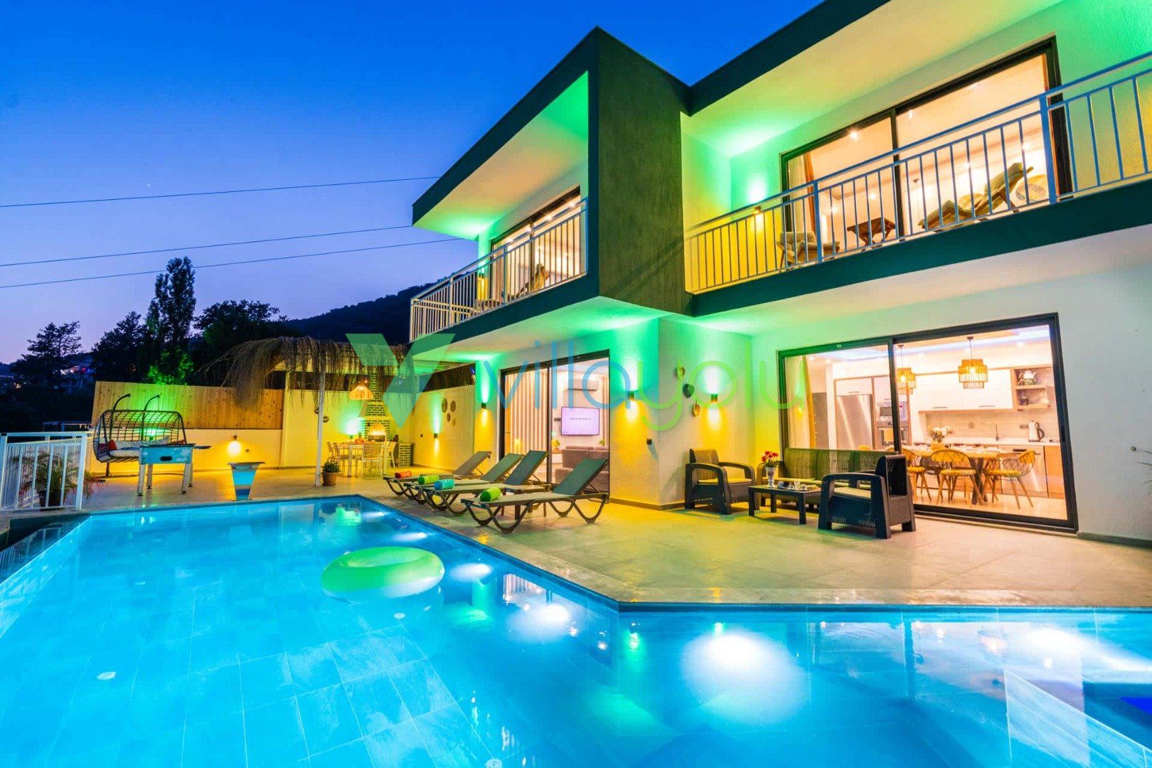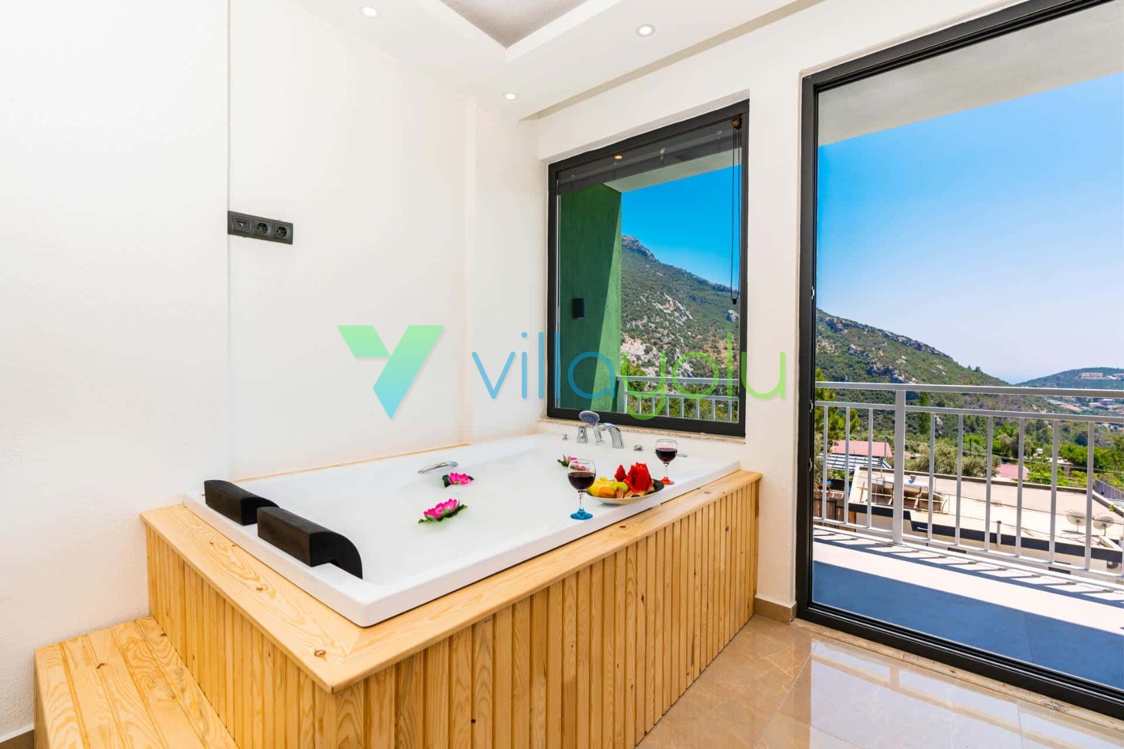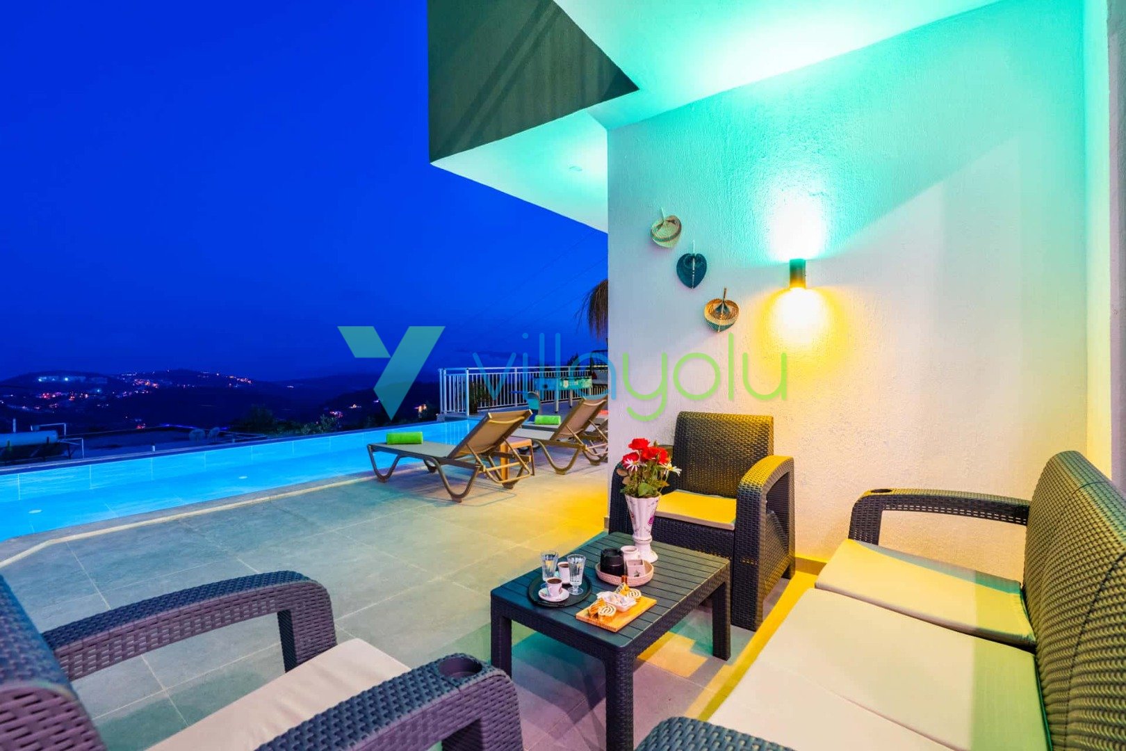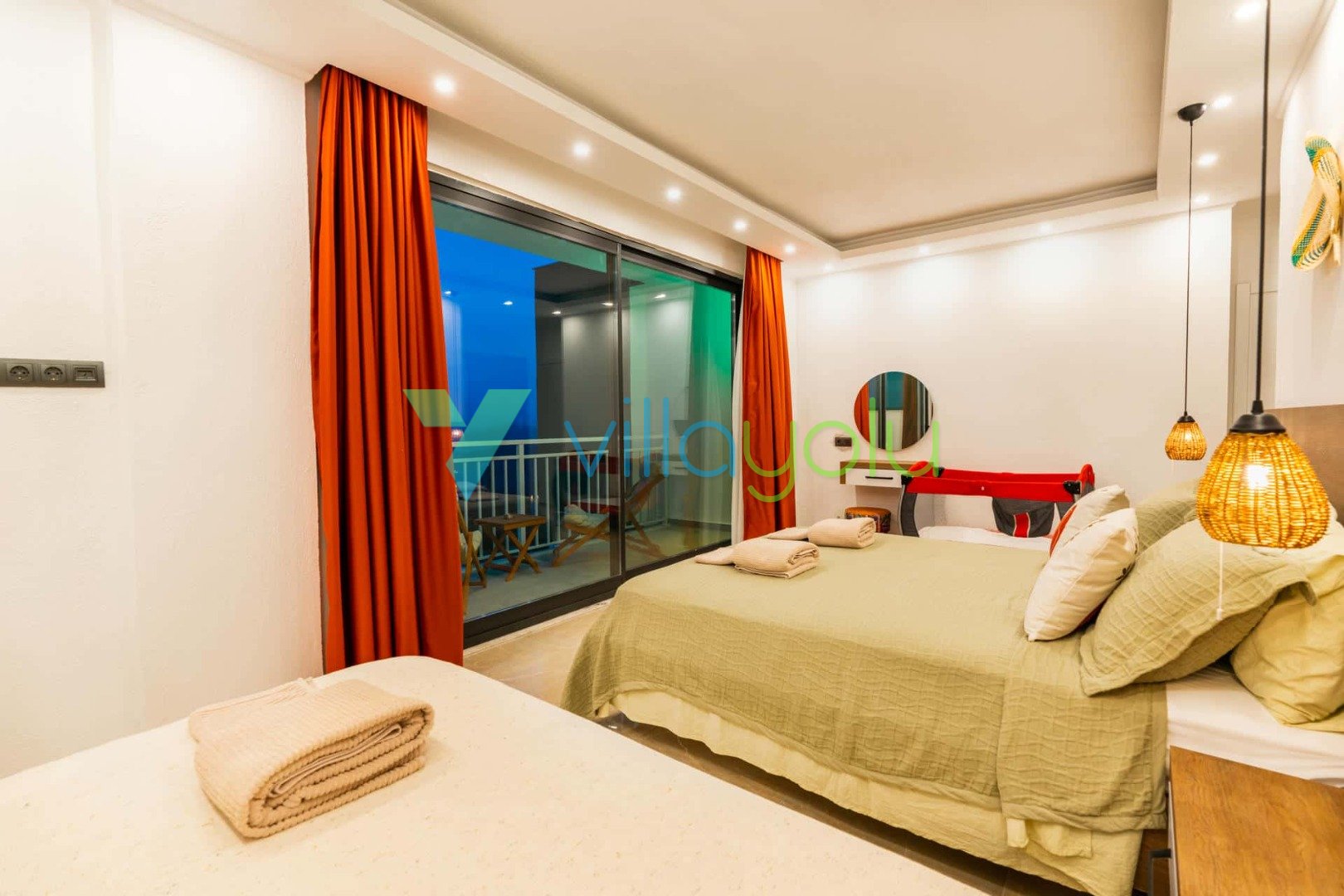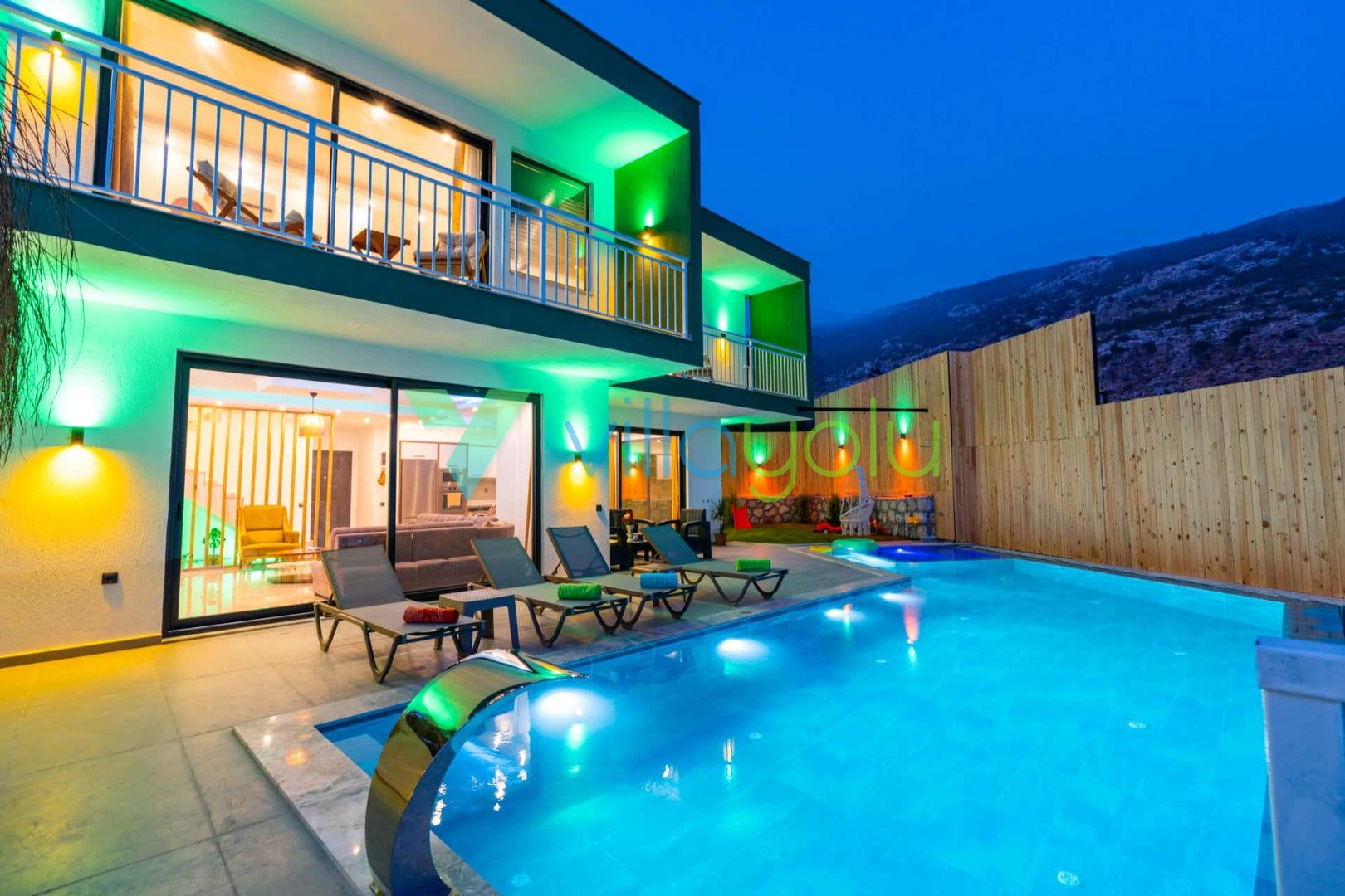 Villa Buyaz,Kalkan İslamlar'da havuz alanı korunaklı,doğa manzaralı villamız 2 yatak odalı olup 5 kişilik konaklama kapasitesine sahiptir. Yeşillikler içersinde bulunan villamız, şehir hayatının gürültülü atmosferinden biraz uzakta tatili tercih edenler için harika bir seçenek.Ana yatak odasında çift kişilik jakuzi bulunmaktadır.Havuza entegre çocuk havuzu ile çocuklu aileler içinde idealdir.