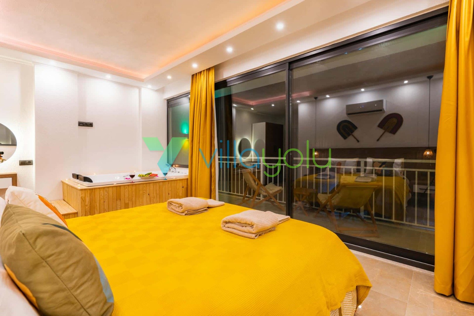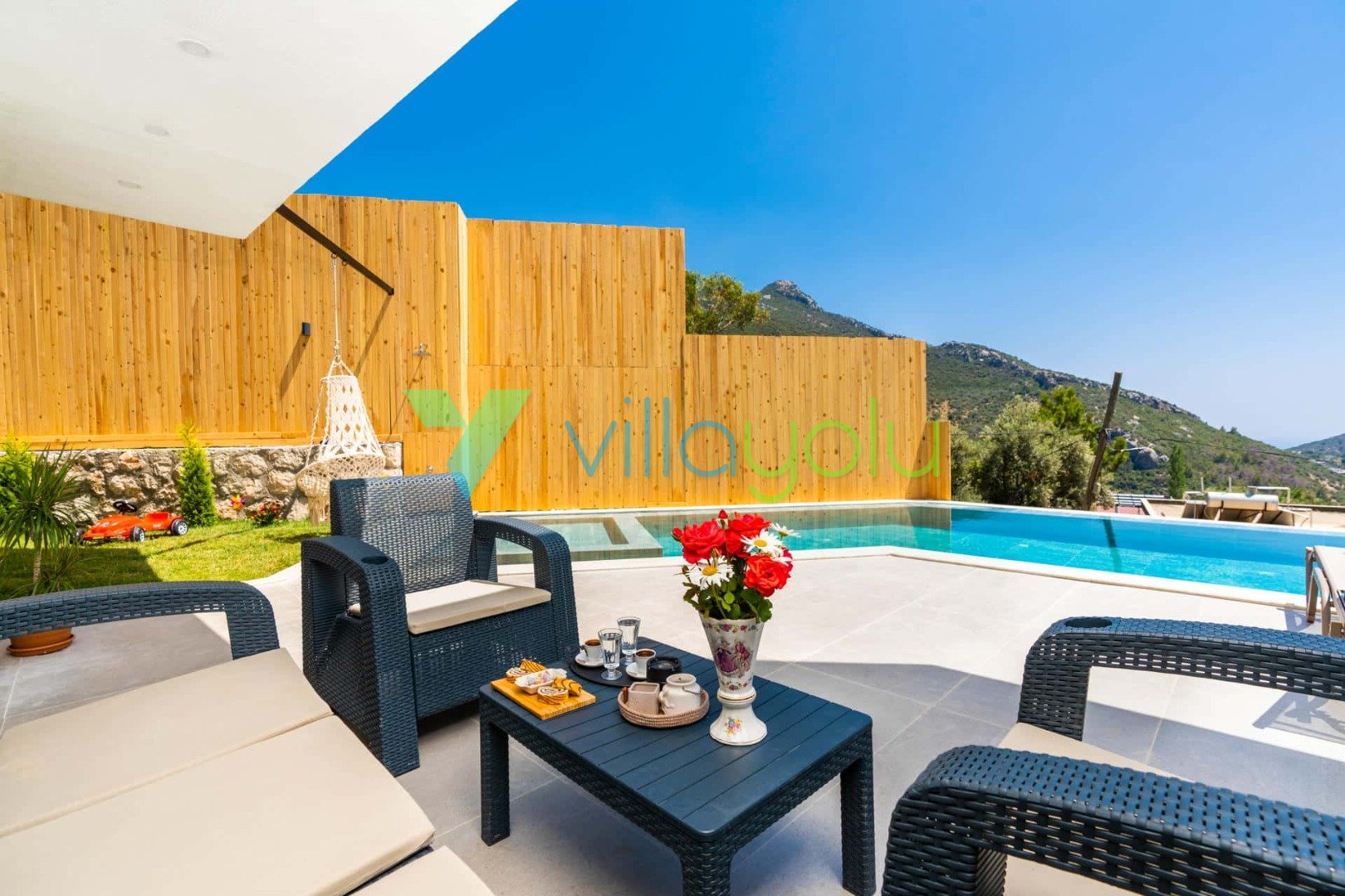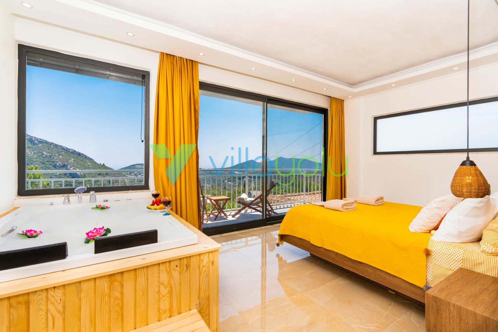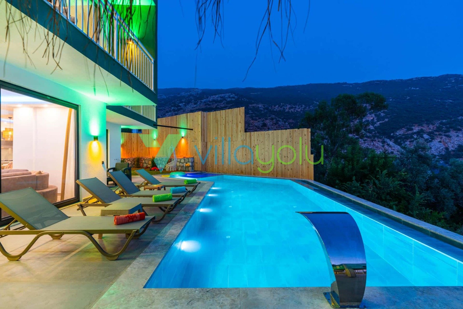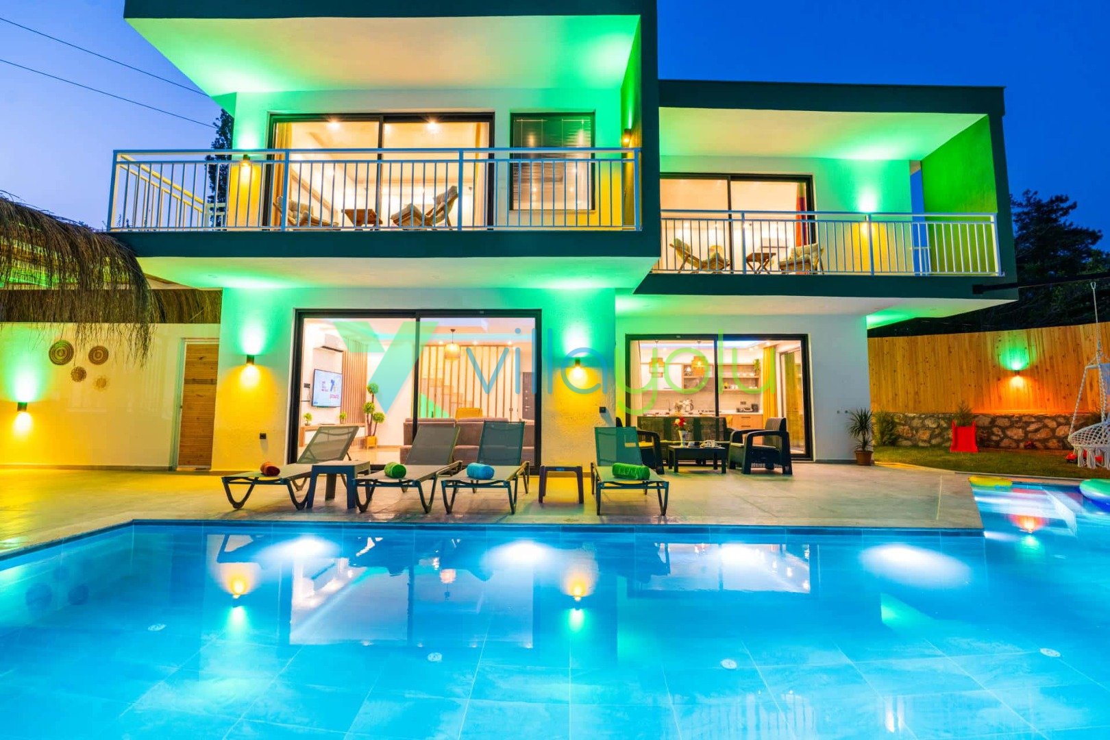 Villa Buyaz,Kalkan İslamlar'da havuz alanı korunaklı,doğa manzaralı villamız 2 yatak odalı olup 5 kişilik konaklama kapasitesine sahiptir. Yeşillikler içersinde bulunan villamız, şehir hayatının gürültülü atmosferinden biraz uzakta tatili tercih edenler için harika bir seçenek.Ana yatak odasında çift kişilik jakuzi bulunmaktadır.Havuza entegre çocuk havuzu ile çocuklu aileler içinde idealdir.
