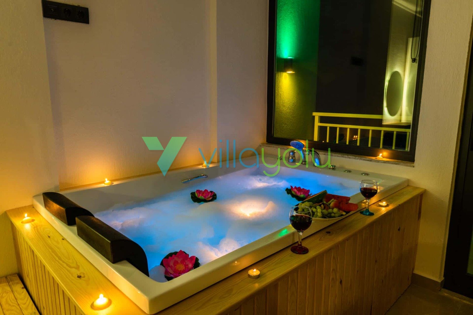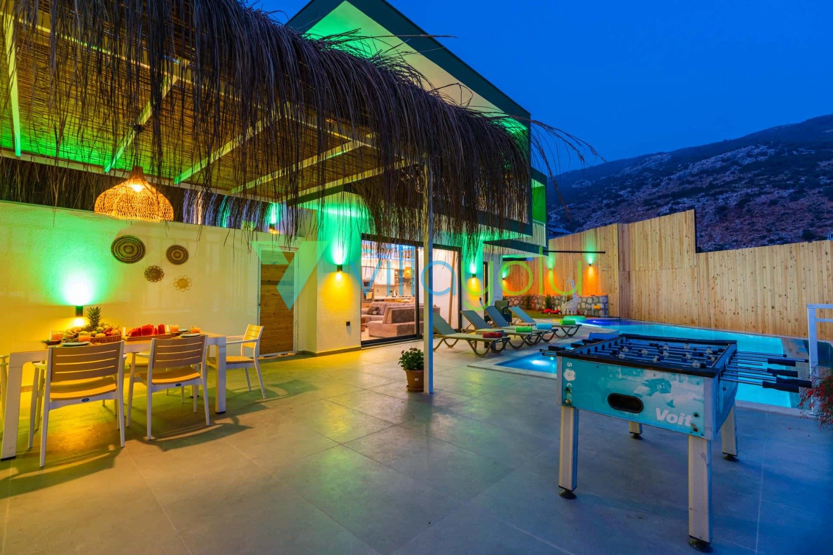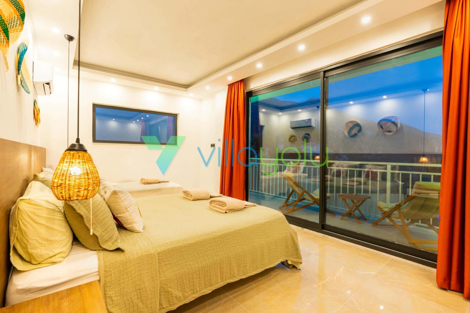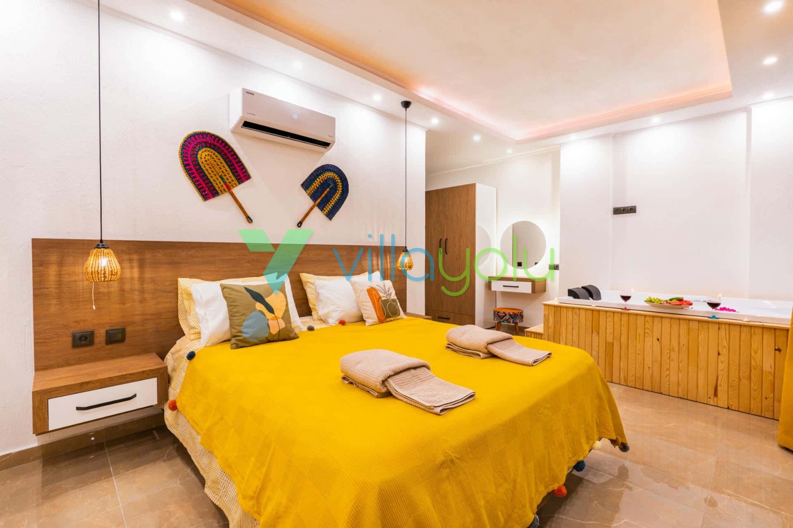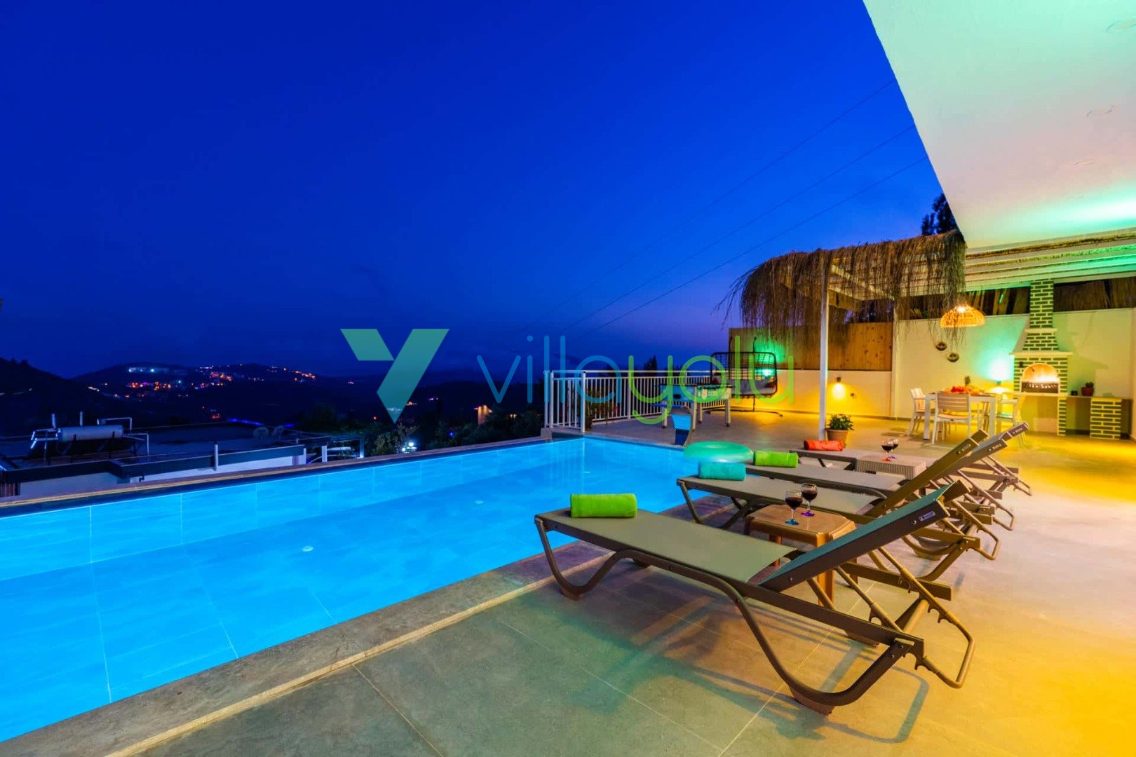 Villa Buyaz,Kalkan İslamlar'da havuz alanı korunaklı,doğa manzaralı villamız 2 yatak odalı olup 5 kişilik konaklama kapasitesine sahiptir. Yeşillikler içersinde bulunan villamız, şehir hayatının gürültülü atmosferinden biraz uzakta tatili tercih edenler için harika bir seçenek.Ana yatak odasında çift kişilik jakuzi bulunmaktadır.Havuza entegre çocuk havuzu ile çocuklu aileler içinde idealdir.