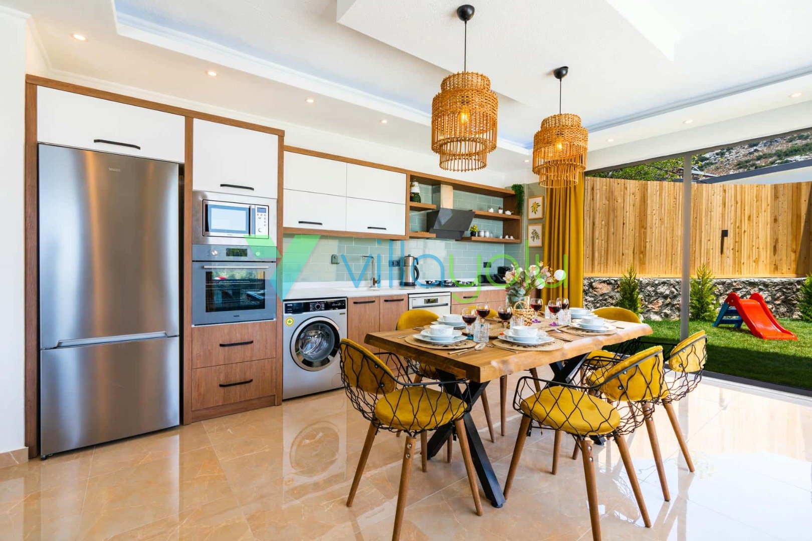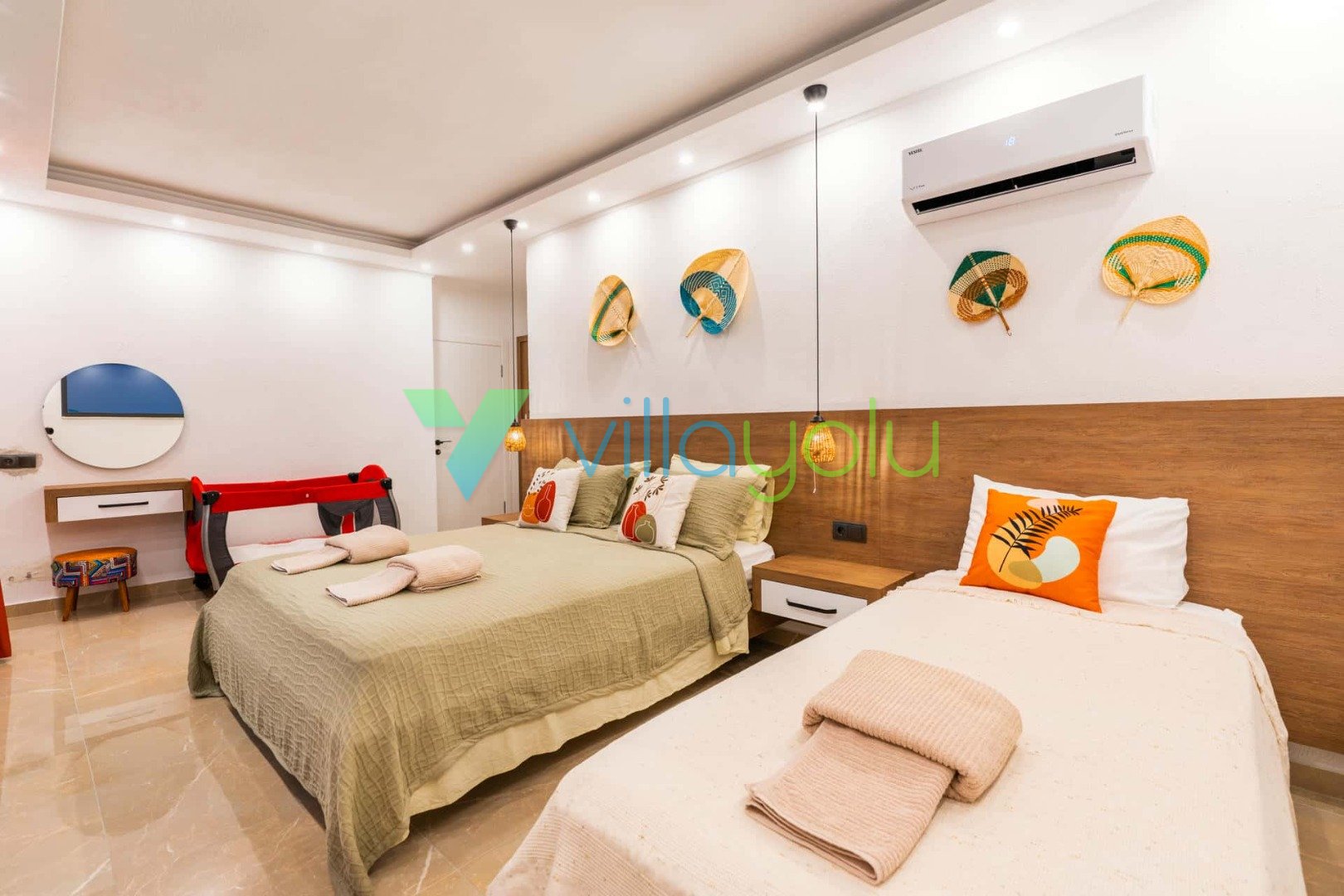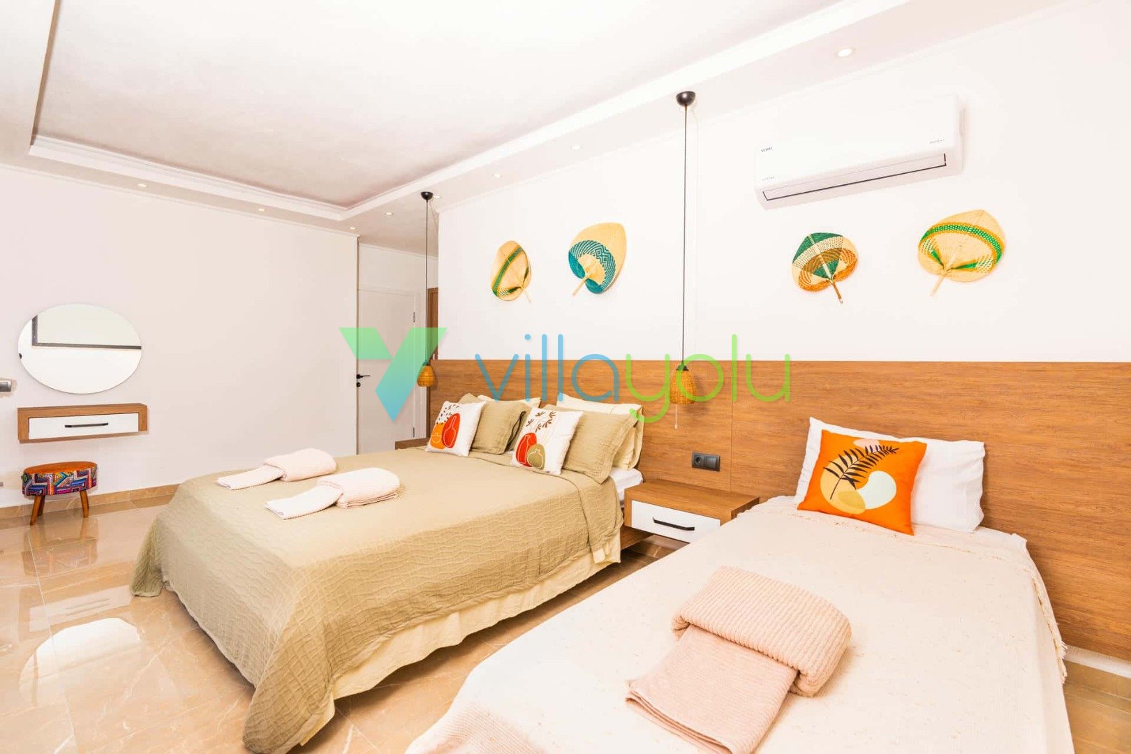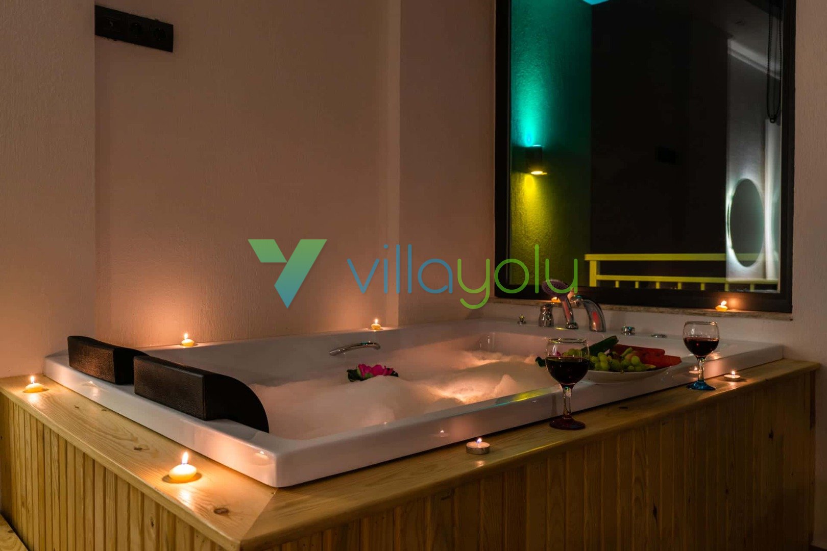Villa Buyaz,Kalkan İslamlar'da havuz alanı korunaklı,doğa manzaralı villamız 2 yatak odalı olup 5 kişilik konaklama kapasitesine sahiptir. Yeşillikler içersinde bulunan villamız, şehir hayatının gürültülü atmosferinden biraz uzakta tatili tercih edenler için harika bir seçenek.Ana yatak odasında çift kişilik jakuzi bulunmaktadır.Havuza entegre çocuk havuzu ile çocuklu aileler içinde idealdir.