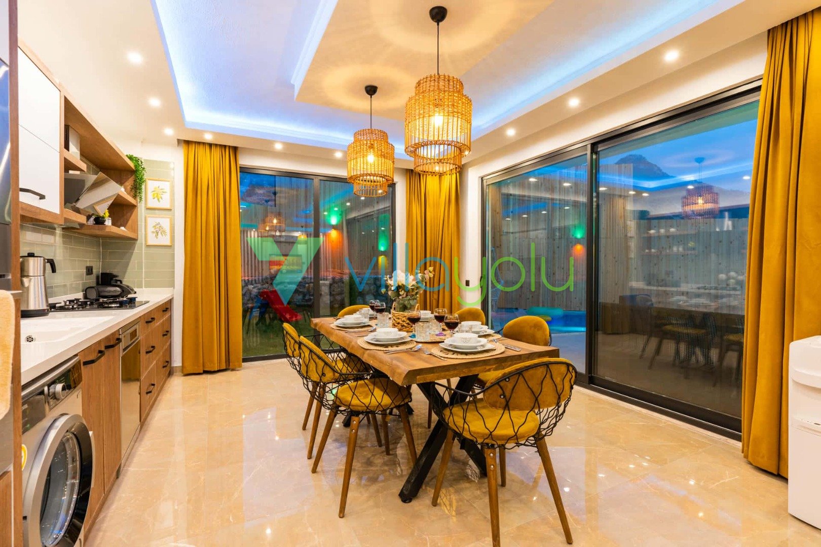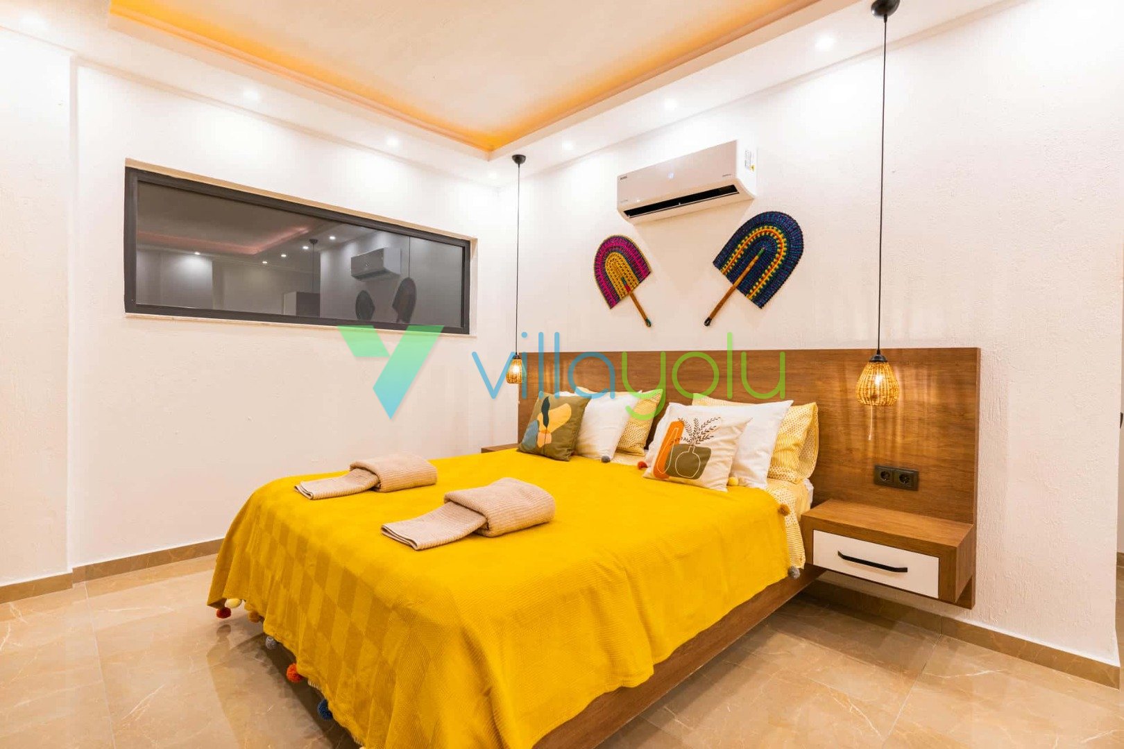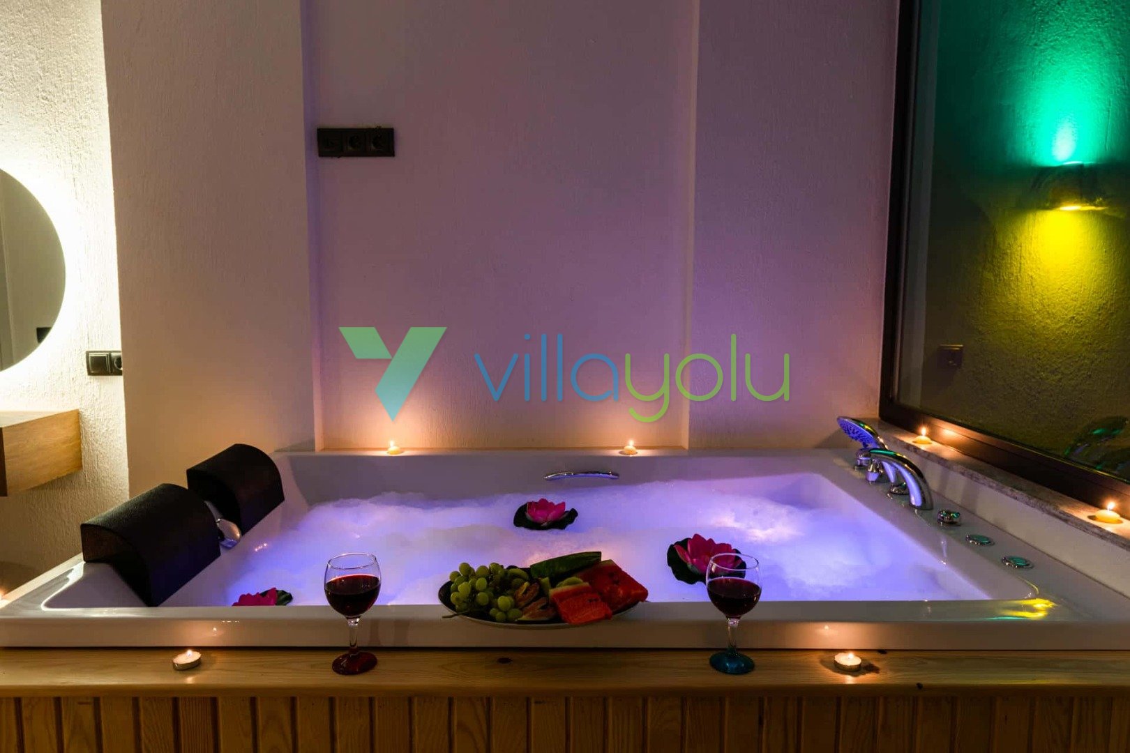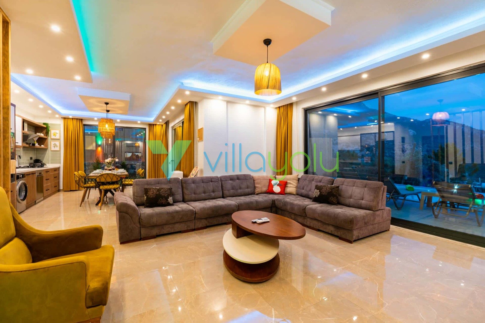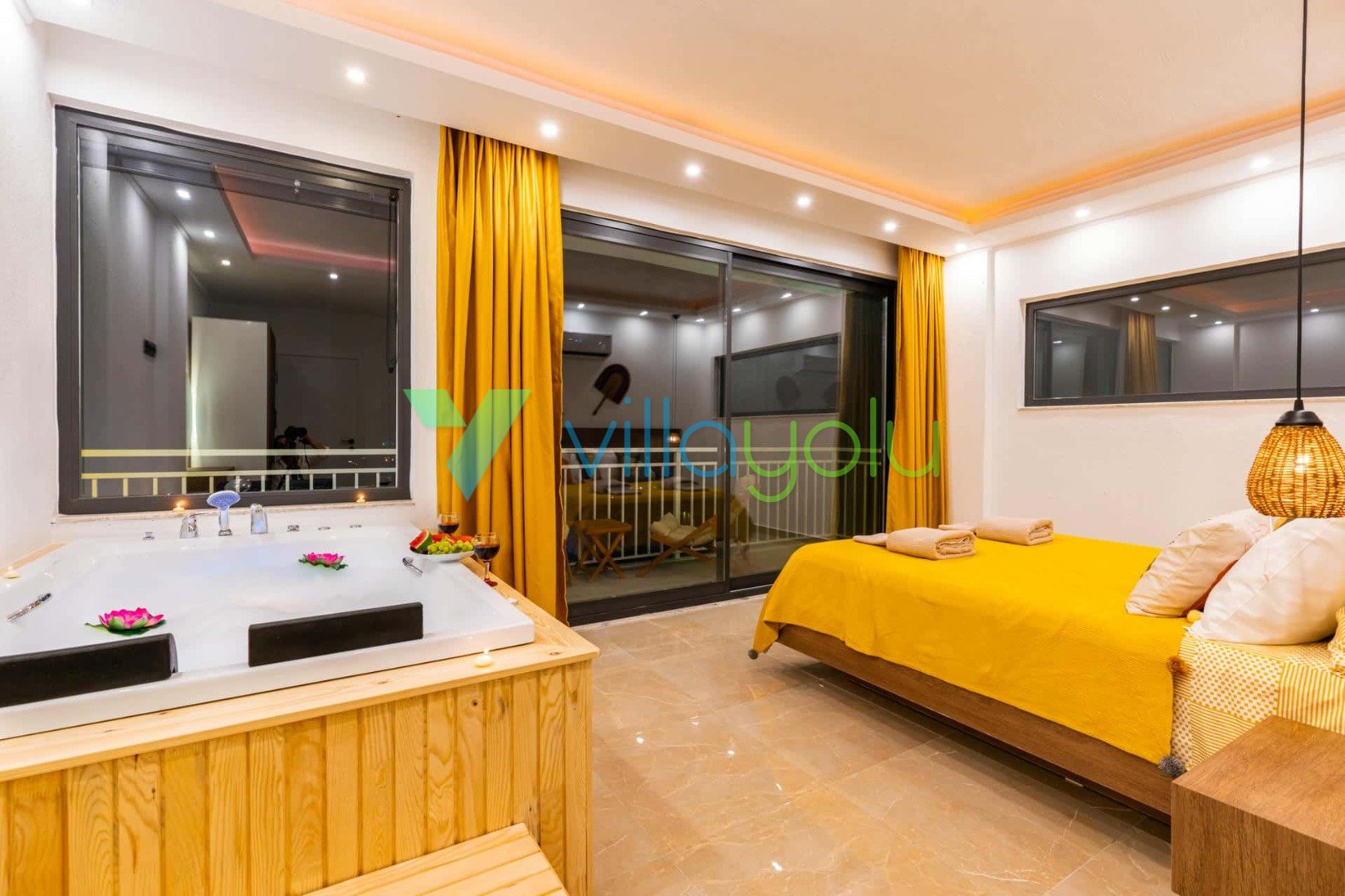 Villa Buyaz,Kalkan İslamlar'da havuz alanı korunaklı,doğa manzaralı villamız 2 yatak odalı olup 5 kişilik konaklama kapasitesine sahiptir. Yeşillikler içersinde bulunan villamız, şehir hayatının gürültülü atmosferinden biraz uzakta tatili tercih edenler için harika bir seçenek.Ana yatak odasında çift kişilik jakuzi bulunmaktadır.Havuza entegre çocuk havuzu ile çocuklu aileler içinde idealdir.