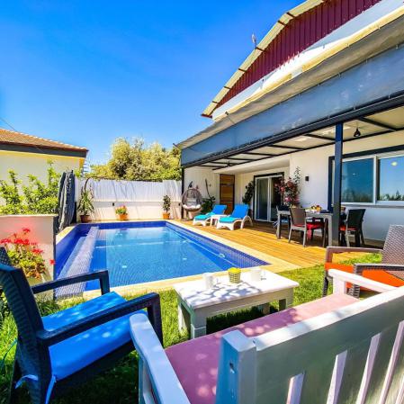 Not:Villamız 2 katlı olup, alt katı misafirlerer kiralanmaktadır. Villamızın üst katında ev sahibimiz oturmakta olup, evlerin girişleri birbirinden bağımsızdır.Havuz ve bahçe eve özel olup üst kattan gözükmemektedir.