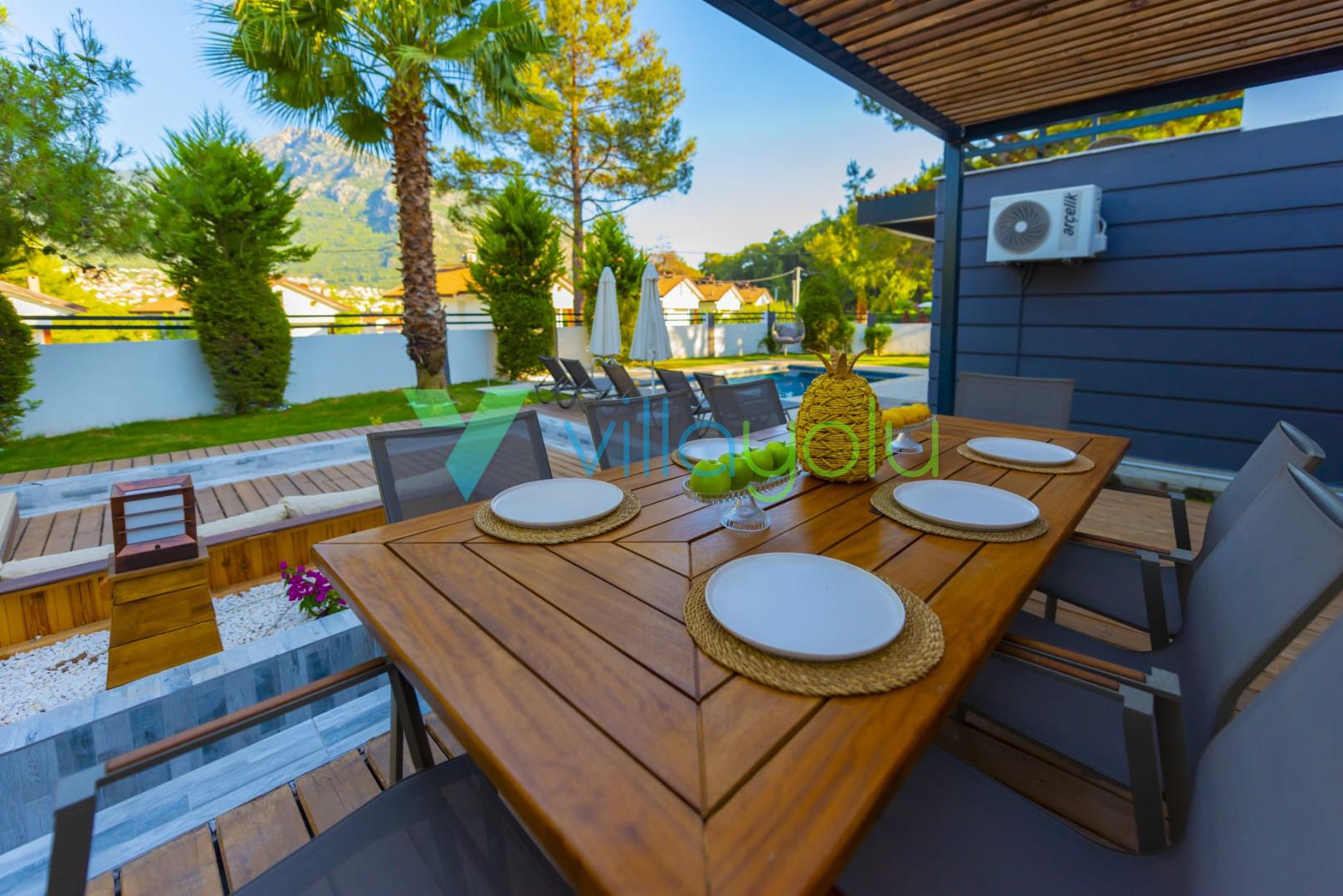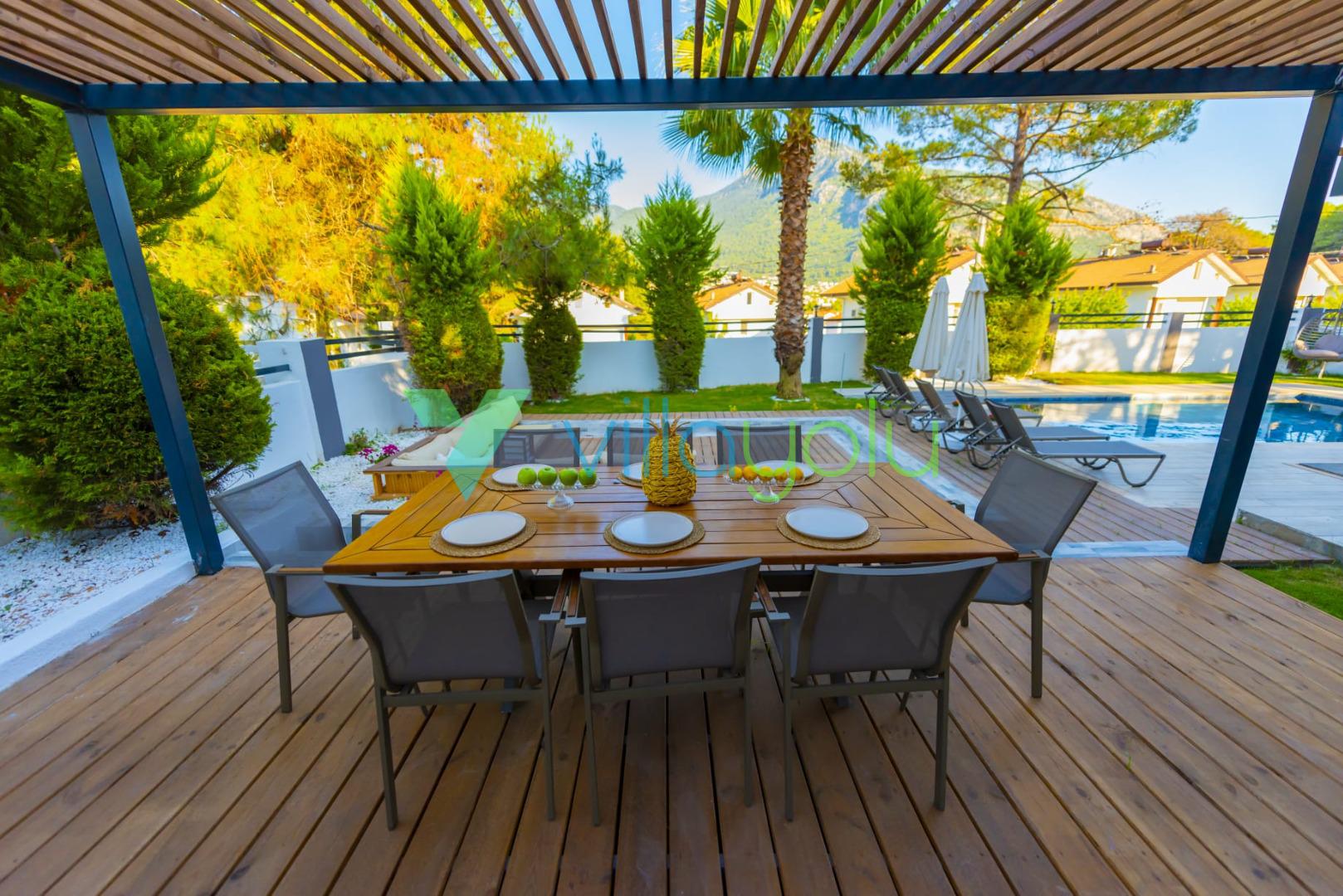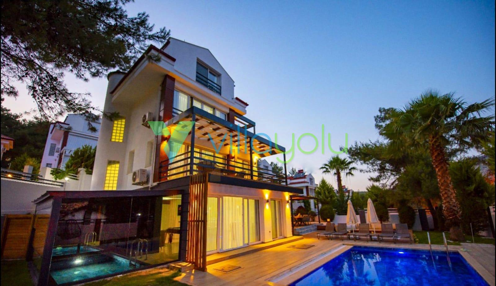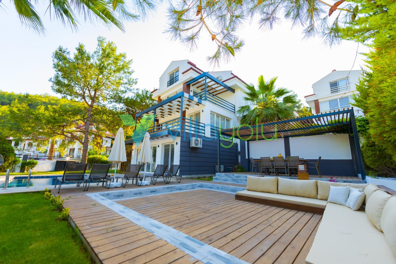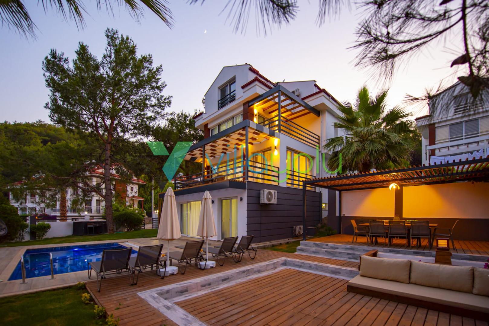 Villa Deep Sea Vip, Fethiye'nin Ölüdeniz Hisarönü mevkisinde 4 yatak odası 8 kişi kapasiteli Hisarönü merkeze 750mt mesafede özel havuzlu tatil villasıdır.Site içerisinde ve merkezi konumda bulunan villamız Babadağ manzarasına sahiptir.. Geniş bahçesi ve özel yüzme havuzu bulunan kiralık villamızdan Hisarönü merkeze, eğlence mekanlarına, barlar sokağına, market ve restoranlara kolaylıkla ulalım sağlayabilirsiniz.
