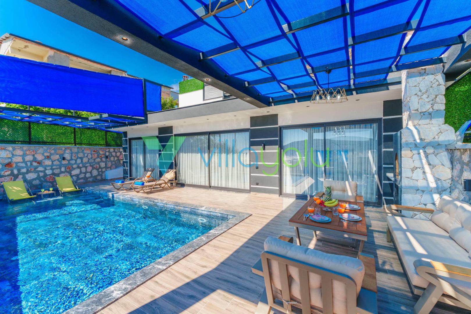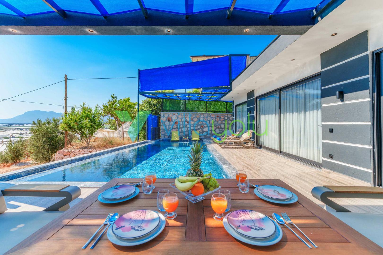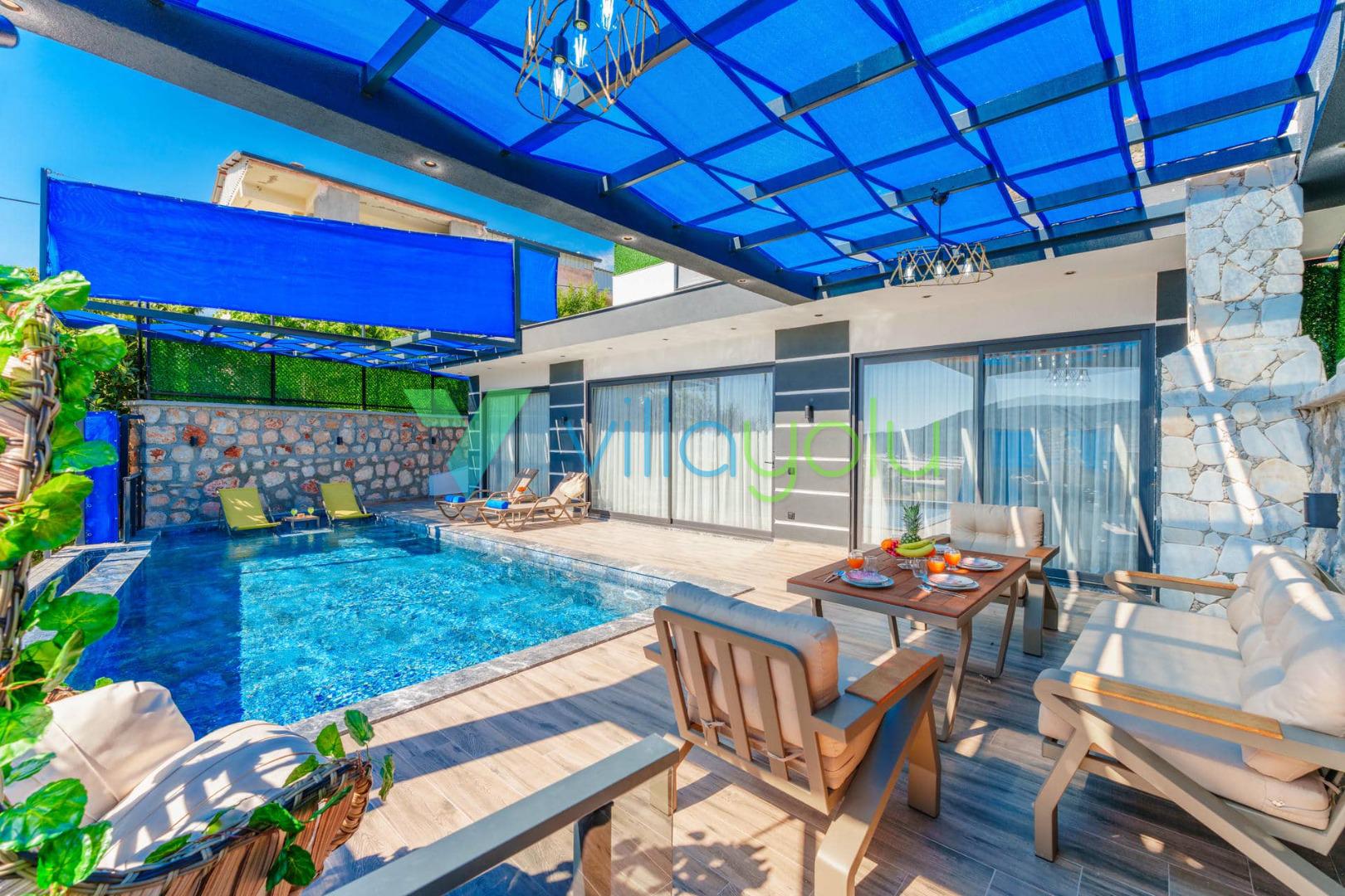 Villa Efecan, Kalkan Yeşilköy'de 2 yatak odası 4 kişi kapasiteli havuz alanı korunaklı tatil villasıdır.Balayı villası ve muhafazakar villa kategorisinde bulunan villamız modern ve lüks mimariye sahiptir.Çocuk havuzu olarak kullanılabilecek sığ havuz,ana yatak odasında çift kişilik jakuzi bulunmaktadır.Kalkan merkeze 9 km en yakın plaj ise 9 km mesafededir.