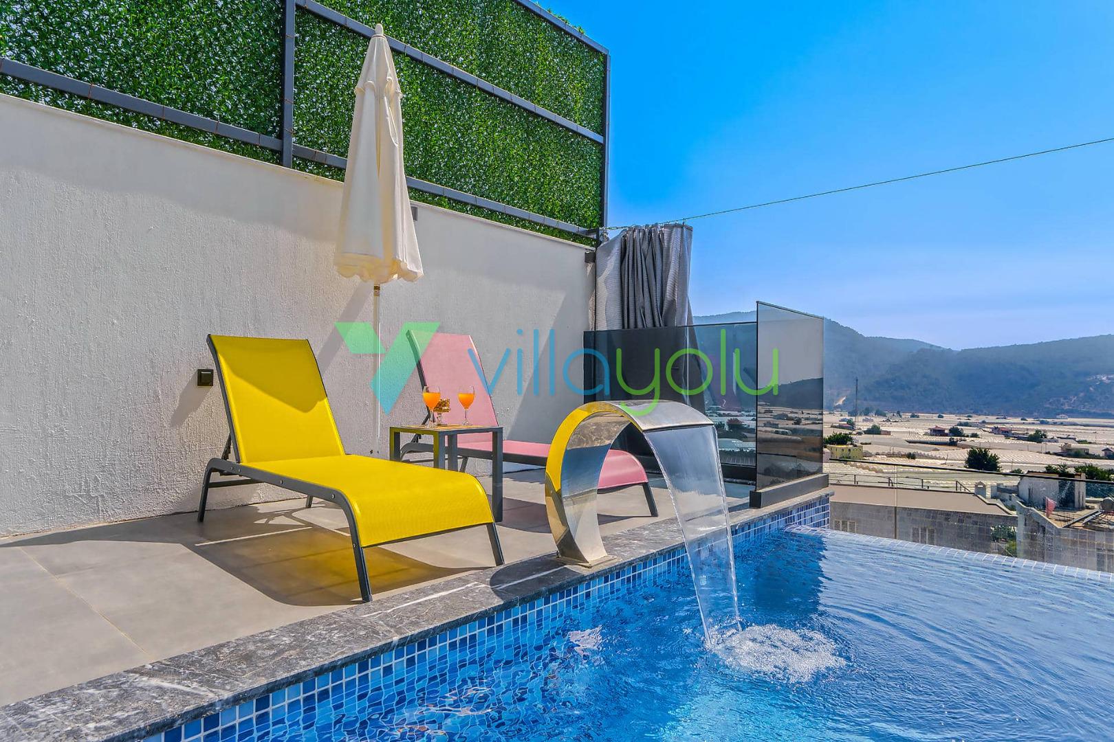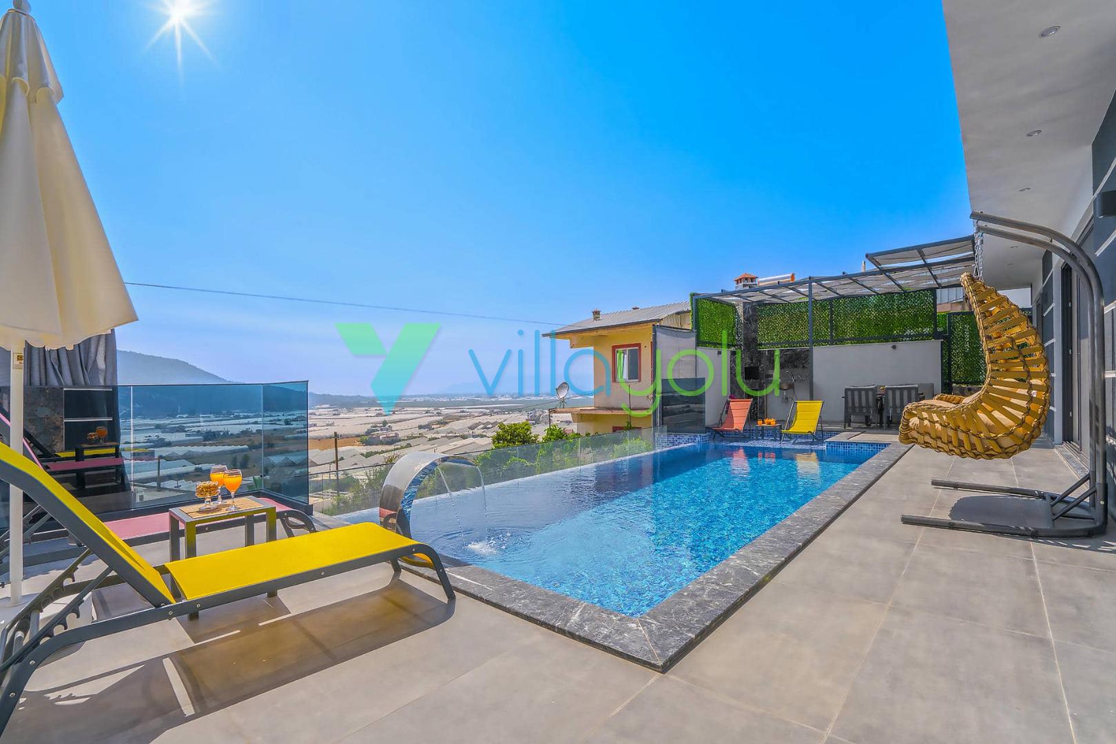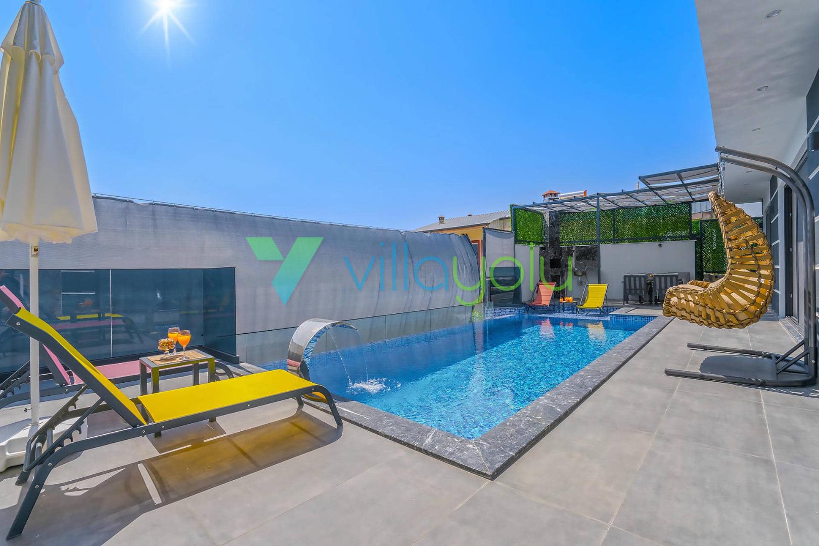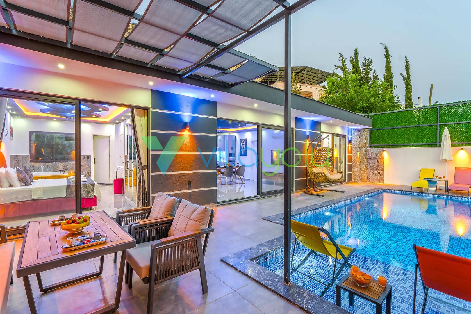 Villa Grace, Kalkan Yeşilköy'de 2 yatak odası 4 kişi kapasiteli havuz alanı korunaklı tatil villasıdır.Balayı villası ve muhafazakar villa kategorisinde bulunan villamız modern ve lüks mimariye sahiptir.Çocuk havuzu olarak kullanılabilecek sığ havuz,ana yatak odasında çift kişilik jakuzi bulunmaktadır.Kalkan merkeze 9 km en yakın plaj ise 9 km mesafededir.