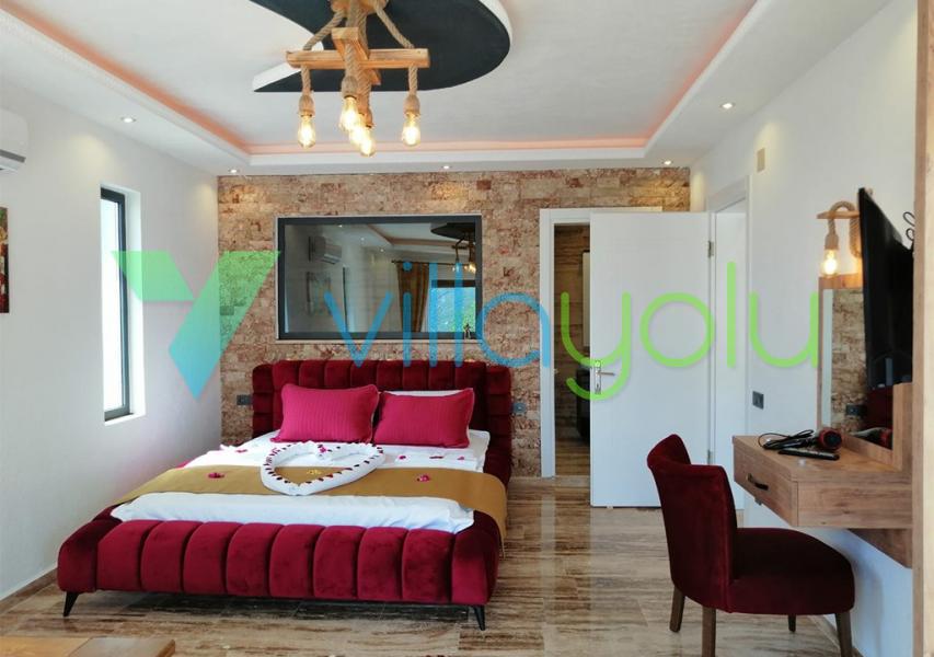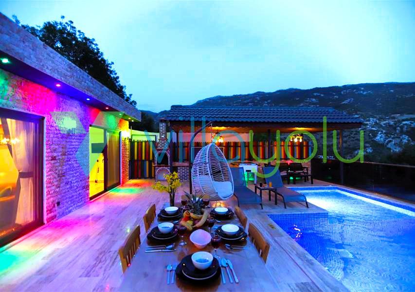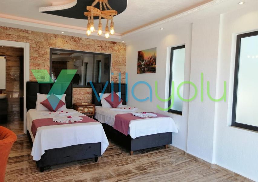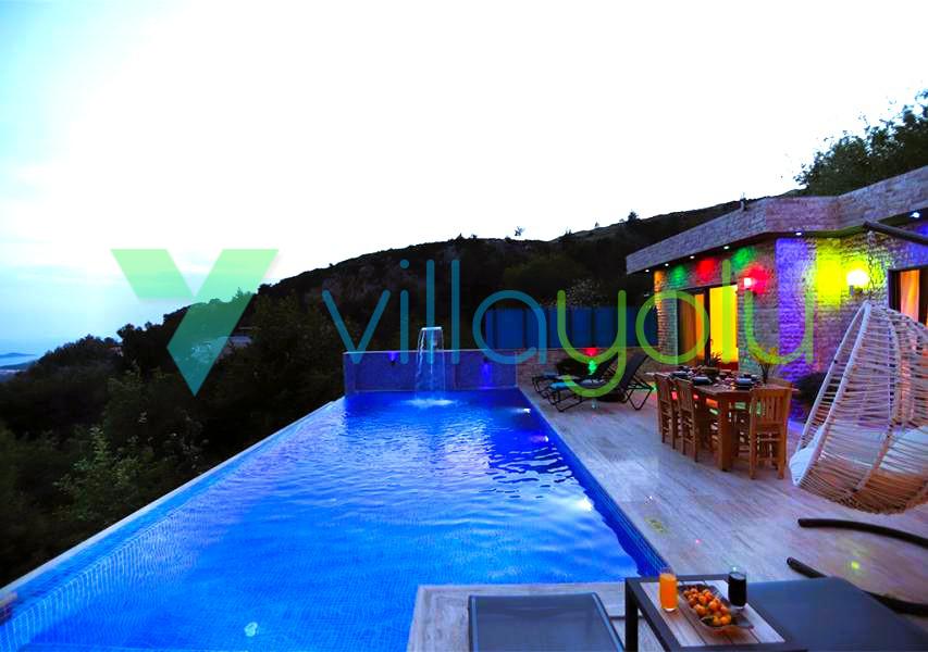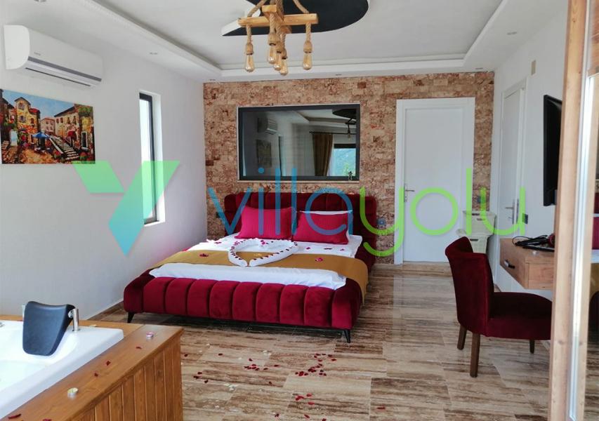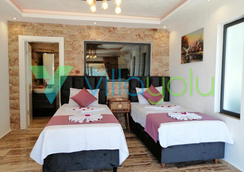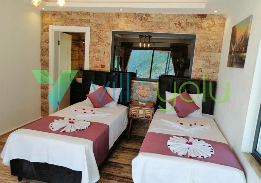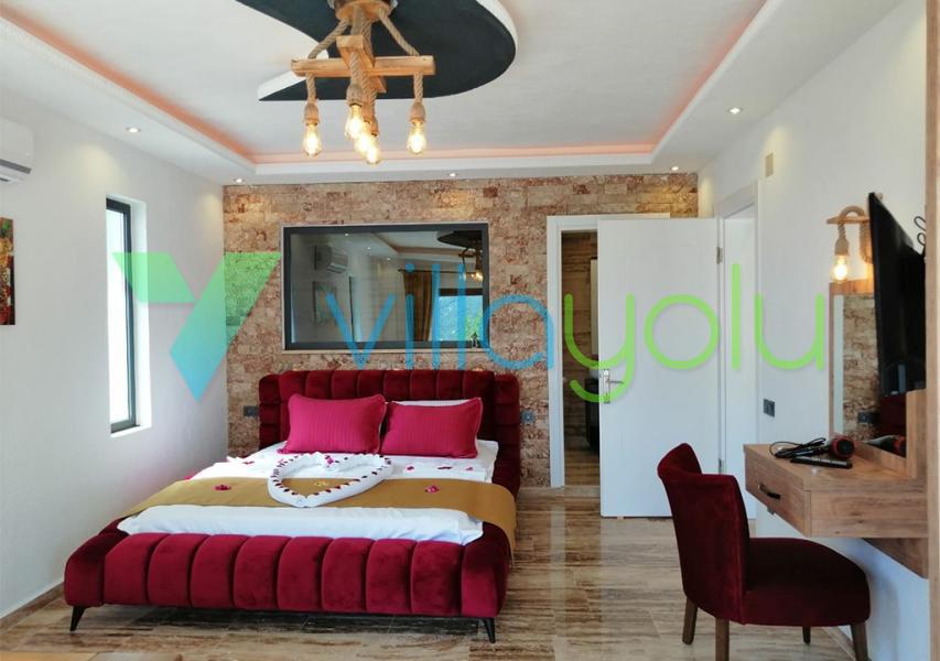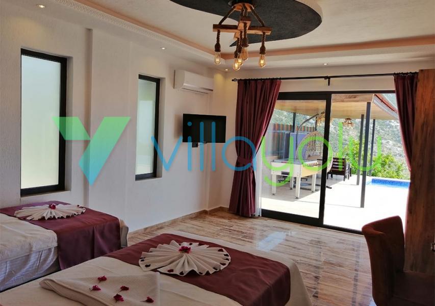 Kalkan İslamlar köyünde bulunan Villa Kale-1, 2 yatak odası 4 kişi kapasiteli havuz alanı korunaklı tatil villasıdır.
