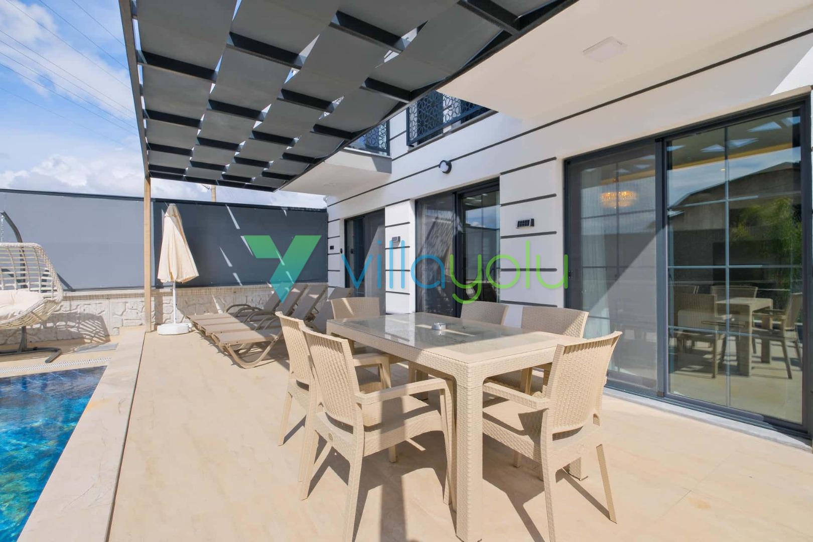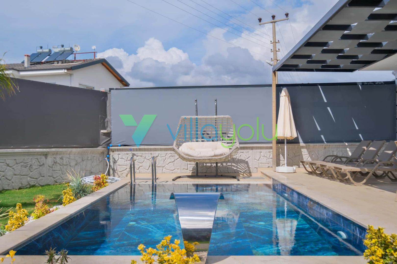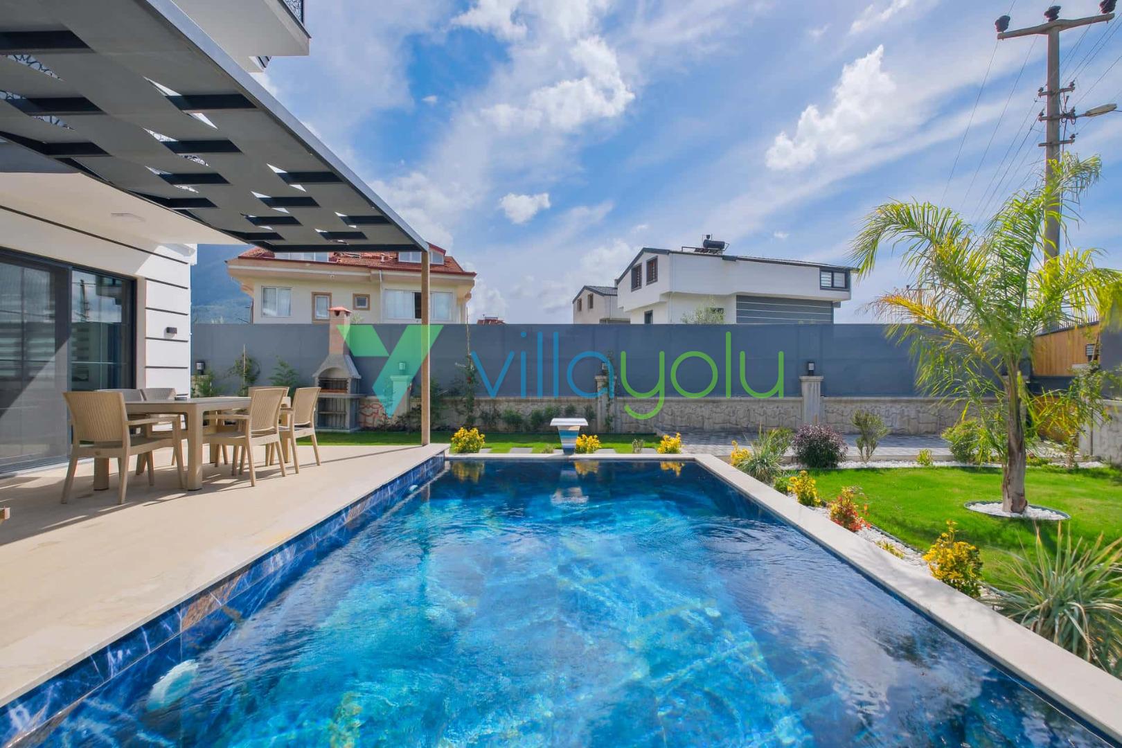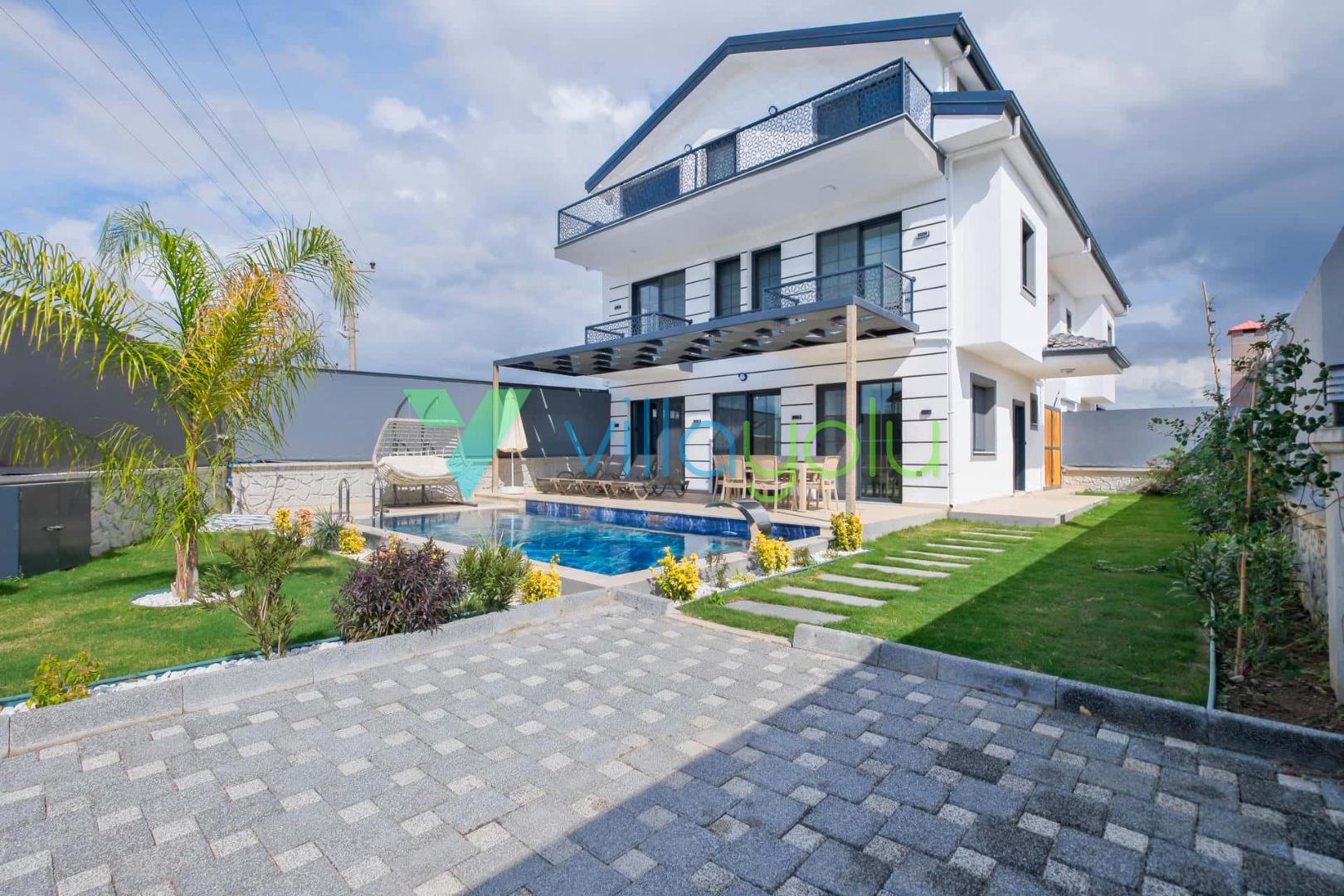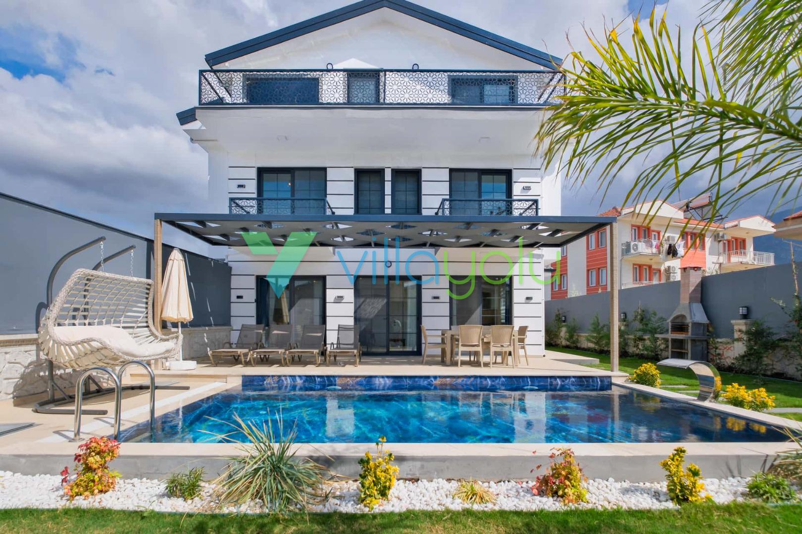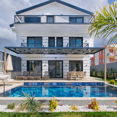 Villa Sembol,Fethiye Çalıca'da 4 yatak odası 8 kişi kapasiteli özel havuzlu tatil villasıdır.Villamız modern ve lüks mimariye sahip kaliteli eşyalarla döşenmiştir.Ana yatak odasında jakuzisi bulunmaktadır.Sauna'da bulunan villamız Fethiye merkeze 6 km,Çalış plajına araçla 15 dk mesafededir.Geniş aile ve arkadaş grupları için uygundur.