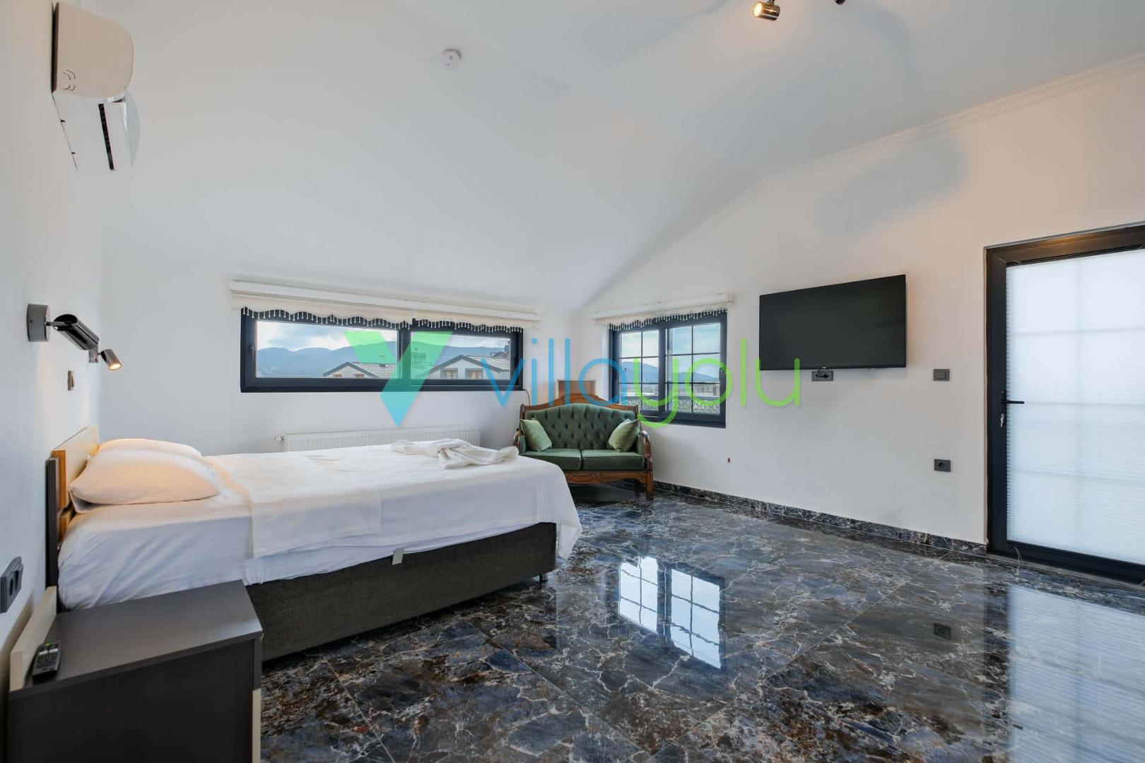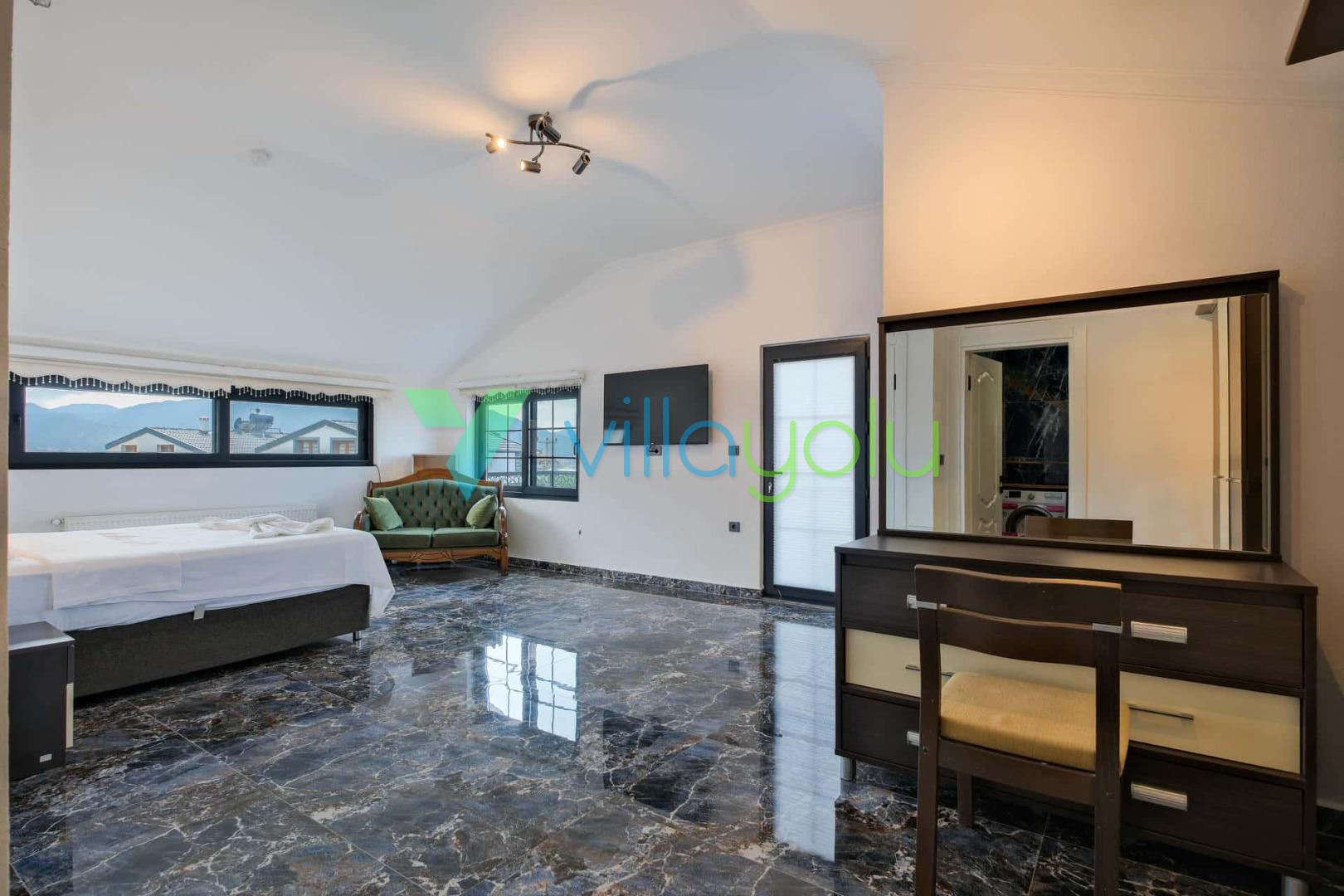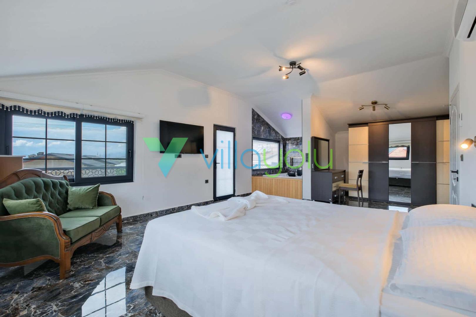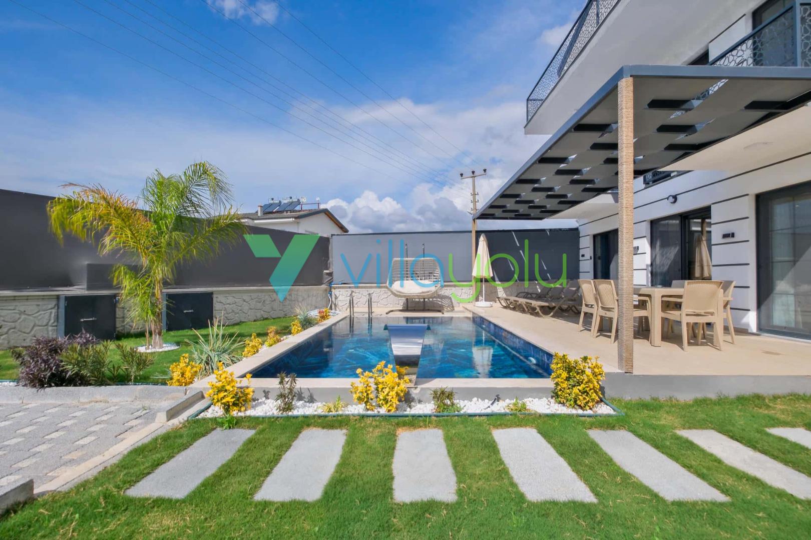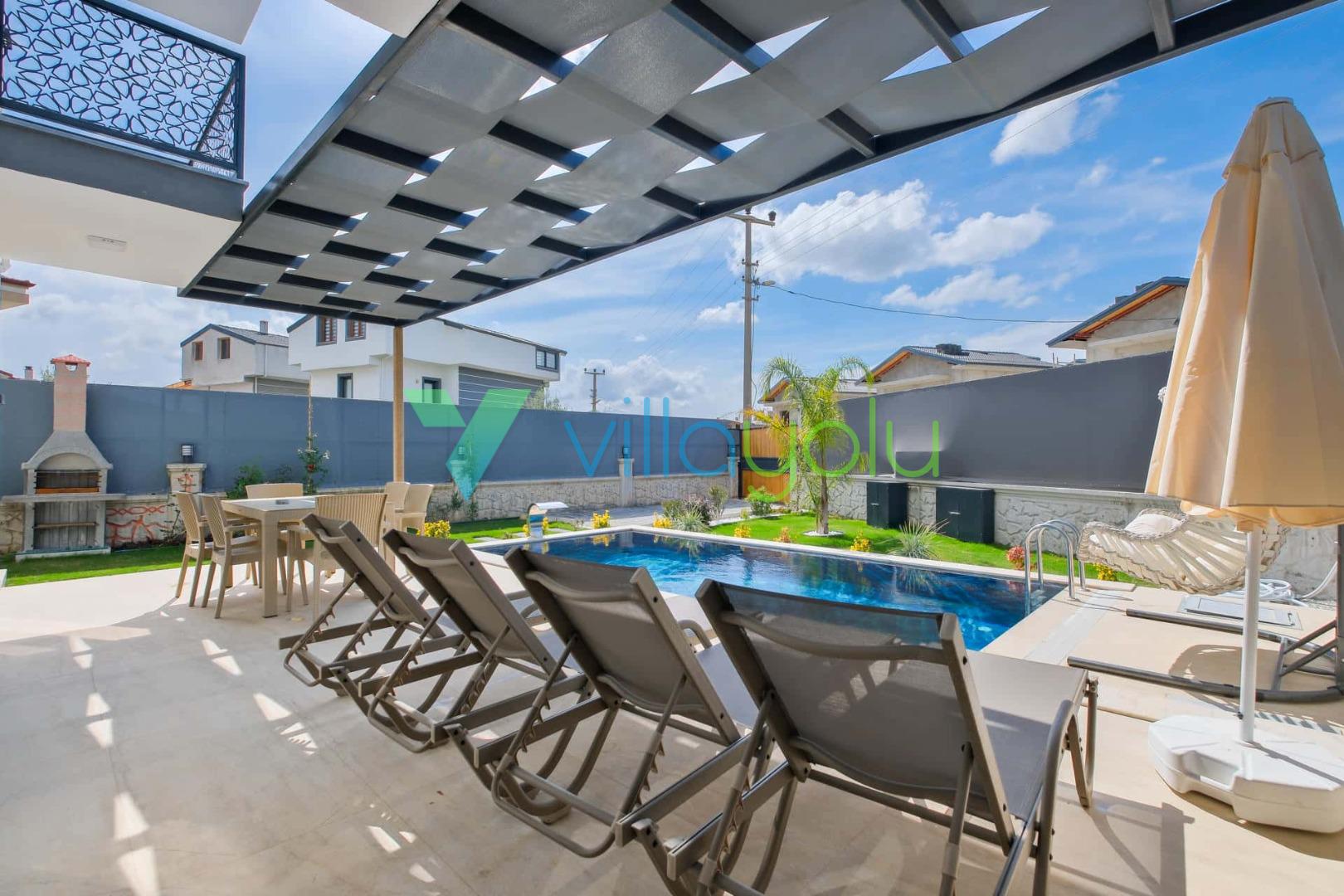 Villa Sembol,Fethiye Çalıca'da 4 yatak odası 8 kişi kapasiteli özel havuzlu tatil villasıdır.Villamız modern ve lüks mimariye sahip kaliteli eşyalarla döşenmiştir.Ana yatak odasında jakuzisi bulunmaktadır.Sauna'da bulunan villamız Fethiye merkeze 6 km,Çalış plajına araçla 15 dk mesafededir.Geniş aile ve arkadaş grupları için uygundur.