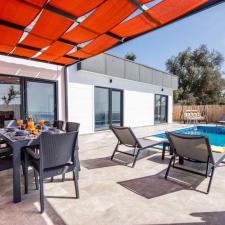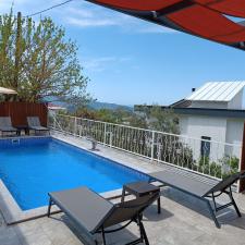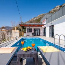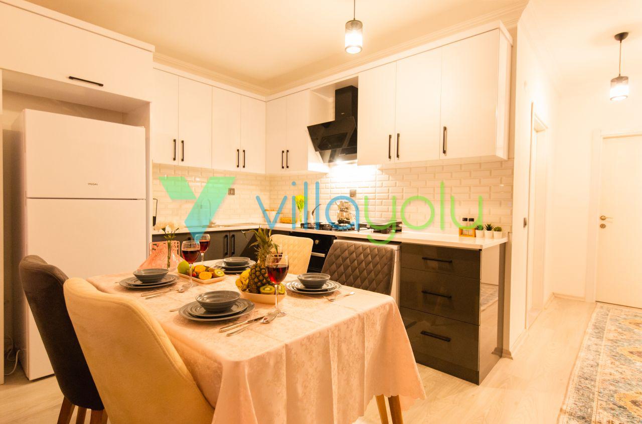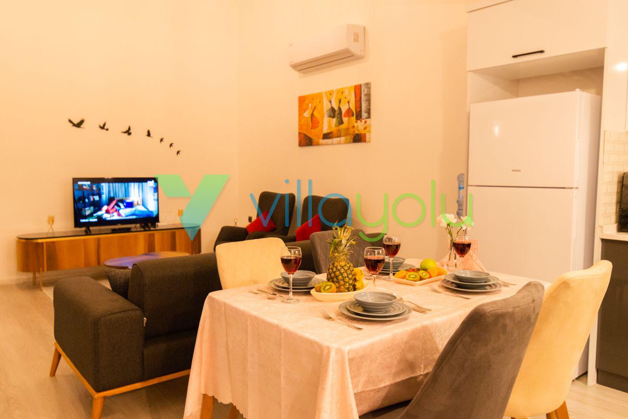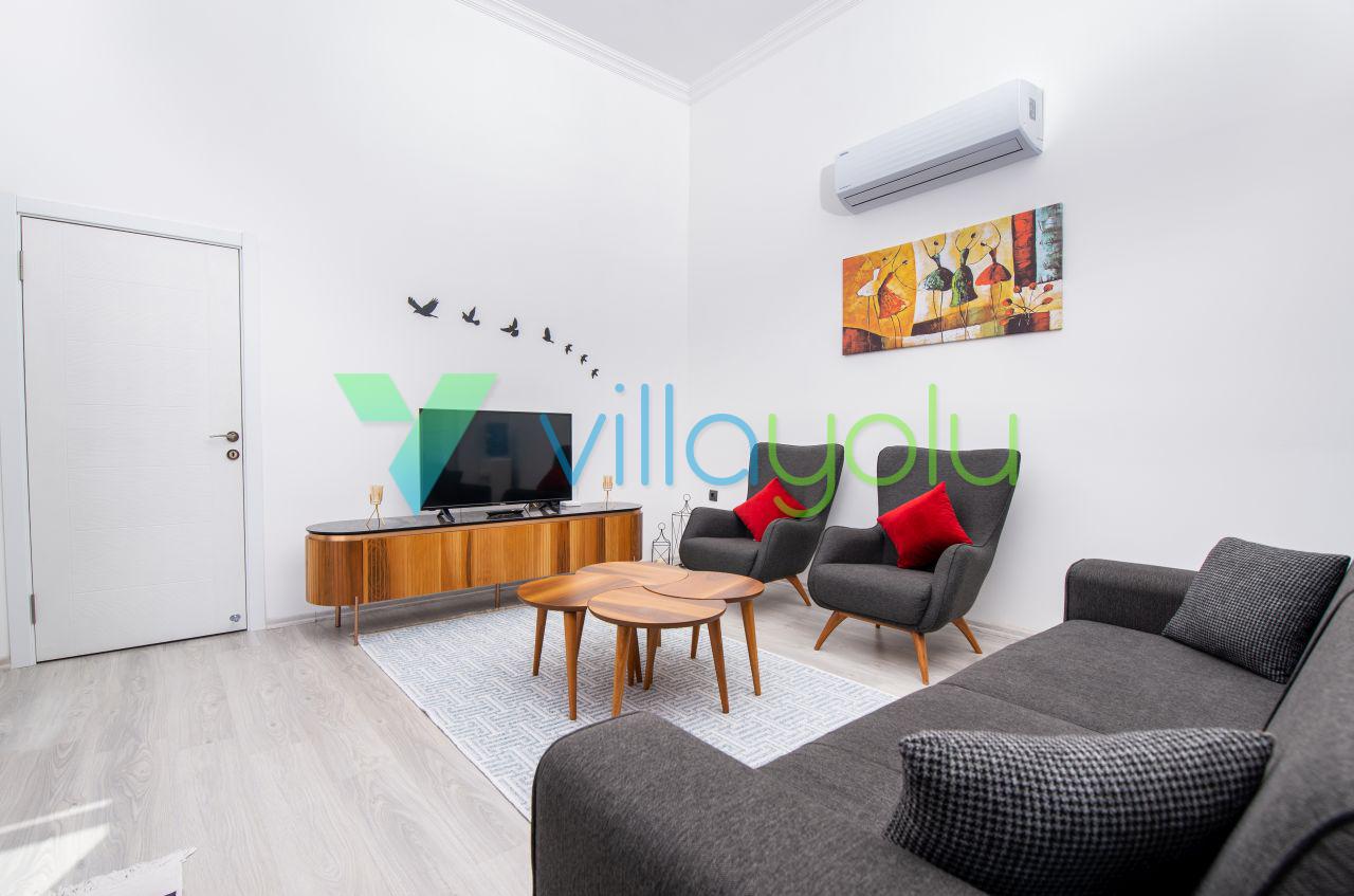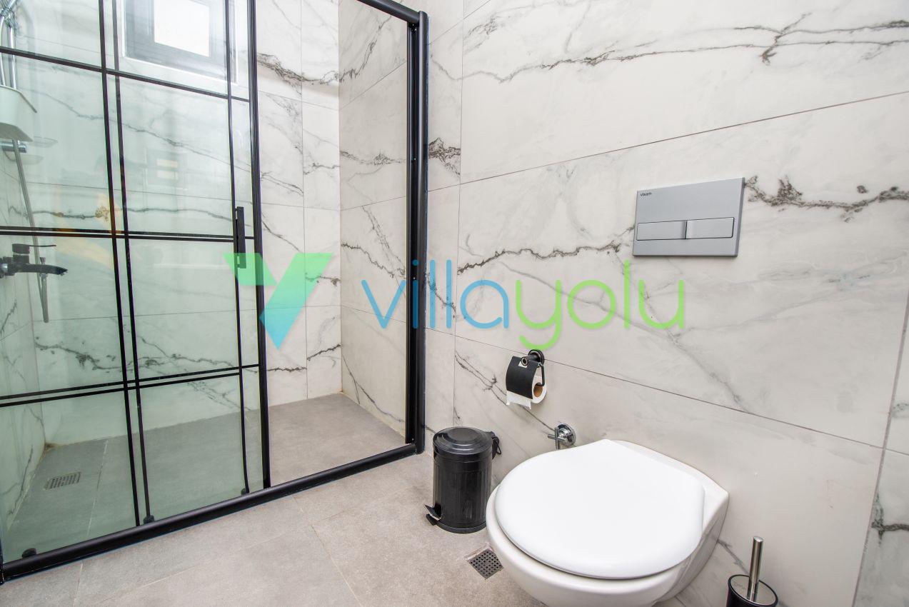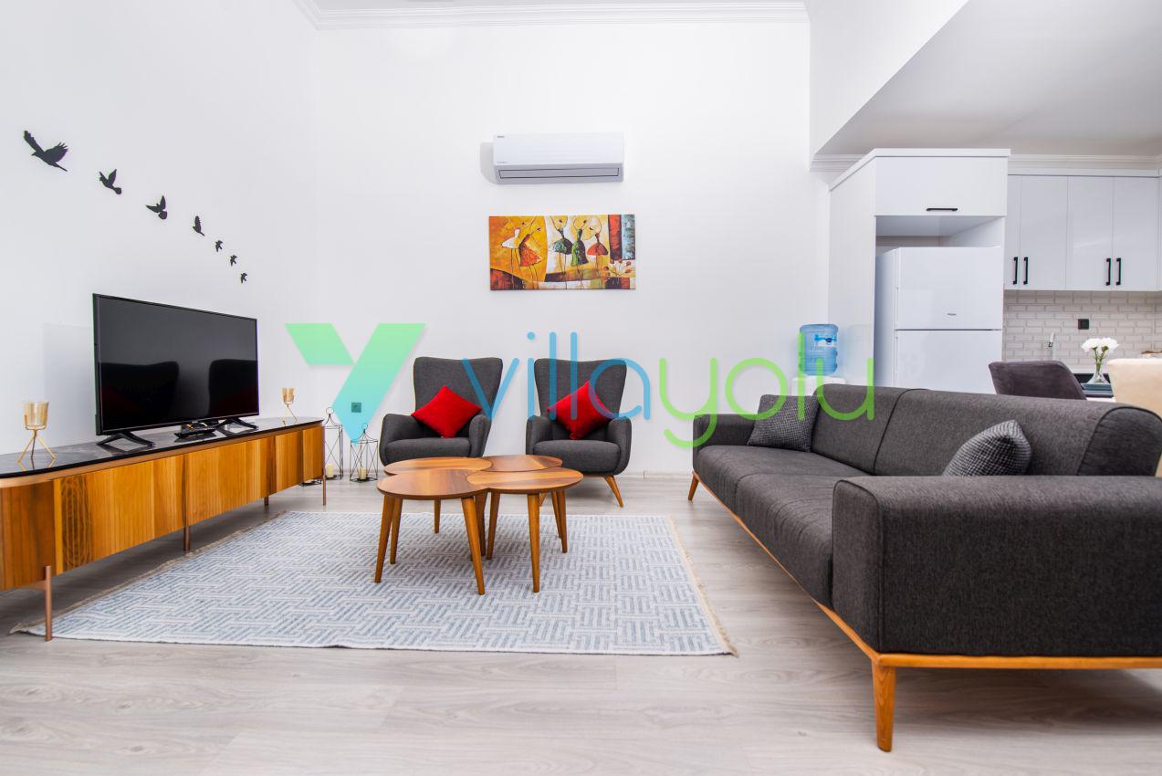 Kalkan Üzümlü mevkisinde 2 yatak odası 4 kişi kapasiteli geniş havuz ve bahçeli havuz alanı korunaklı villadır.