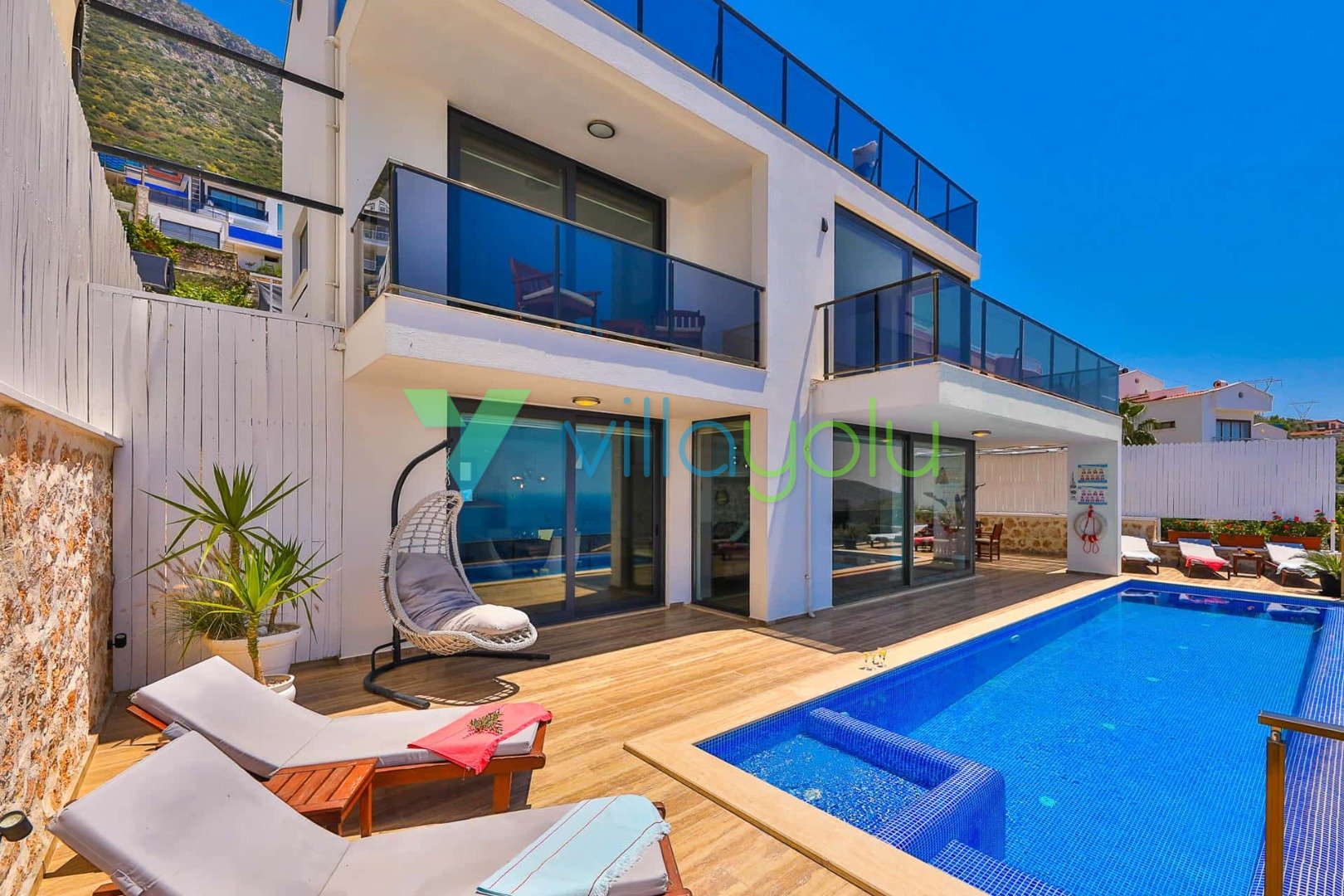 Villa Akasya Kızıltaş'ta,Kalkan Merkez'de 3 yatak odası 6 kişi kapasiteli deniz manzaralı tatil villasıdır.Odalarından deniz manzarasına sahip villamız terasında bulunan jakuzisi ile balayı çiftleri içinde uygundur.Lüks ve mpdern tasarıma sahip villamız alışveriş olanaklarına çok yakın noktadadır.Havuza entegre çocuk havuzu bulunan villamız geniş yeşil alanı ile çocuklu ailelere uygun bir seçenektir.