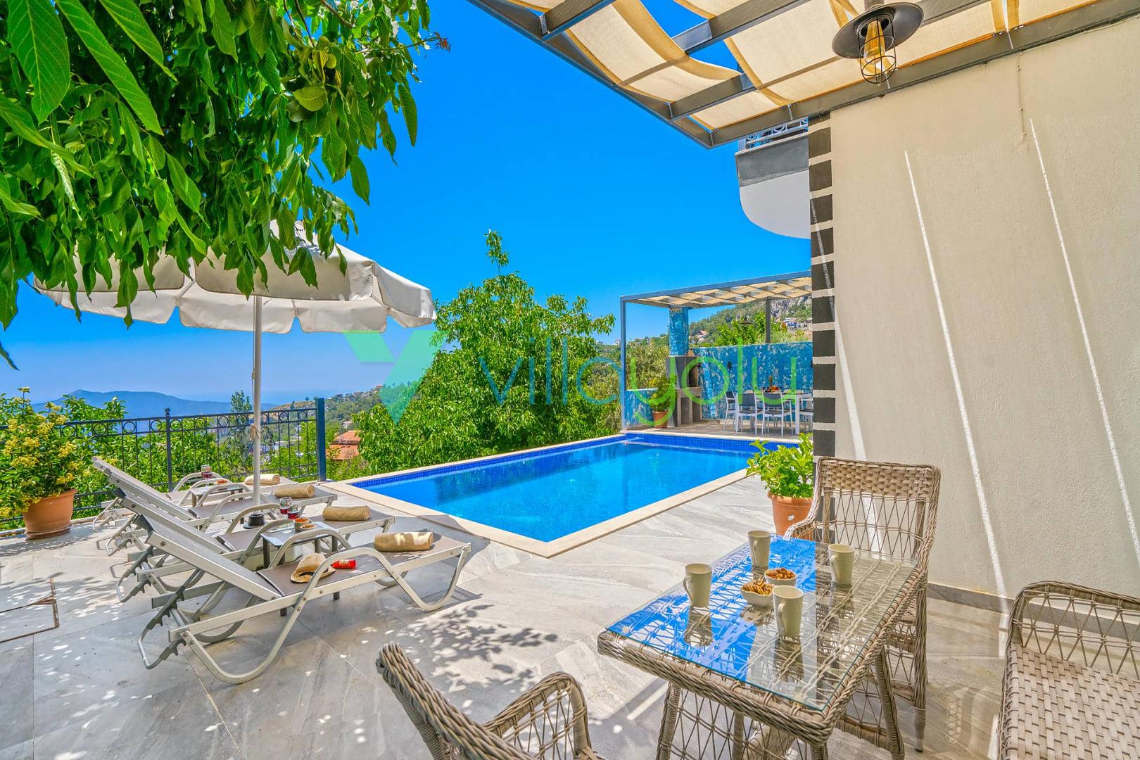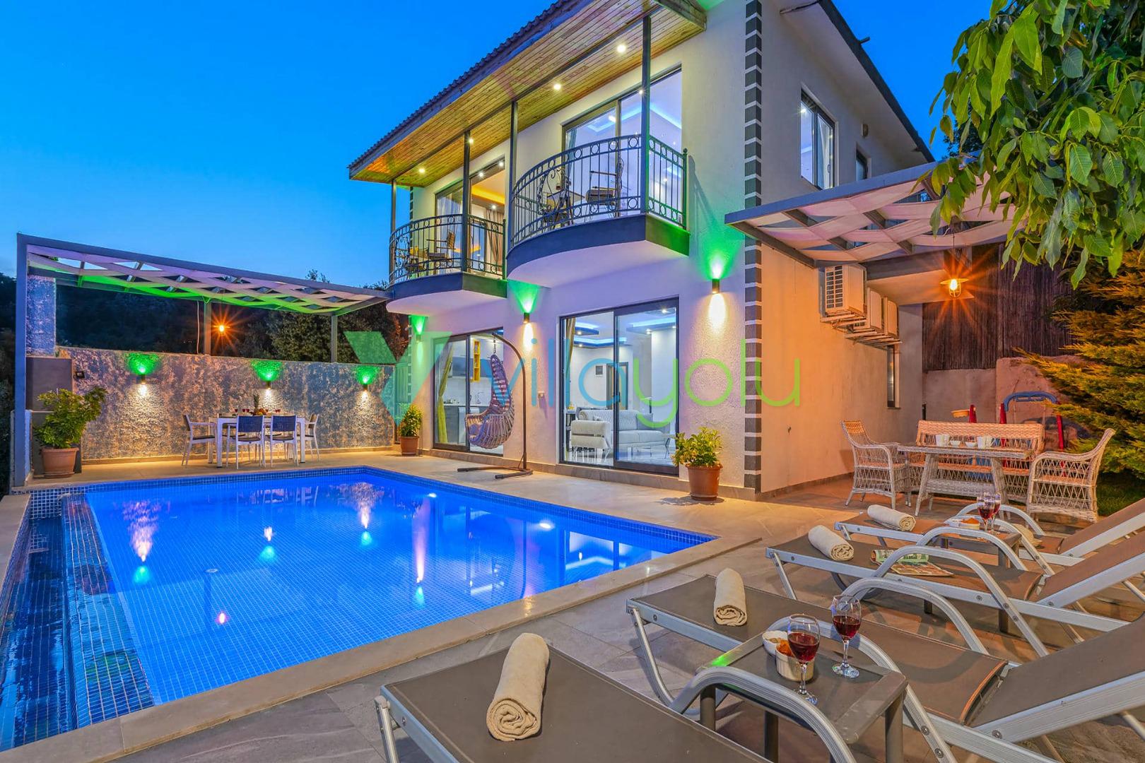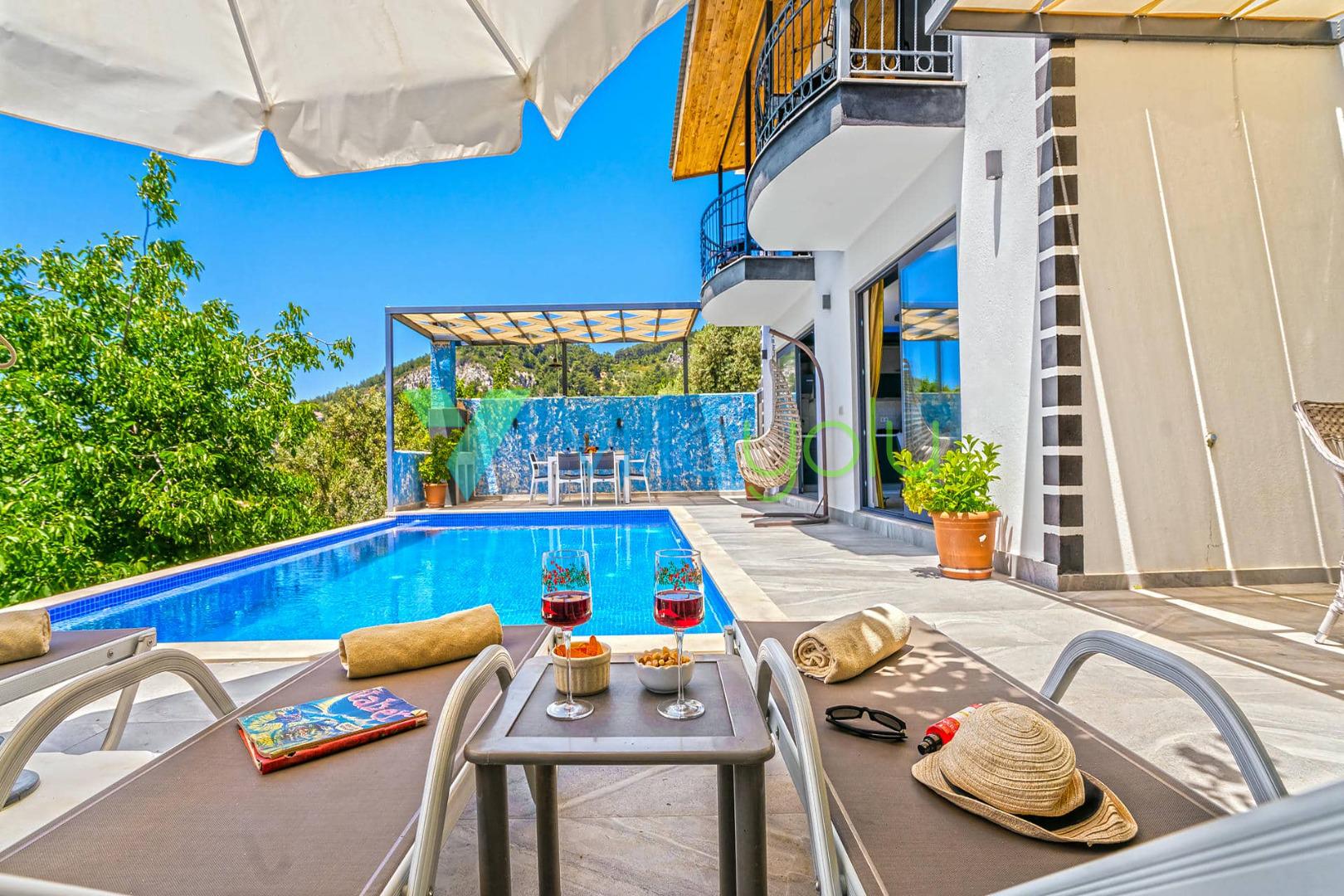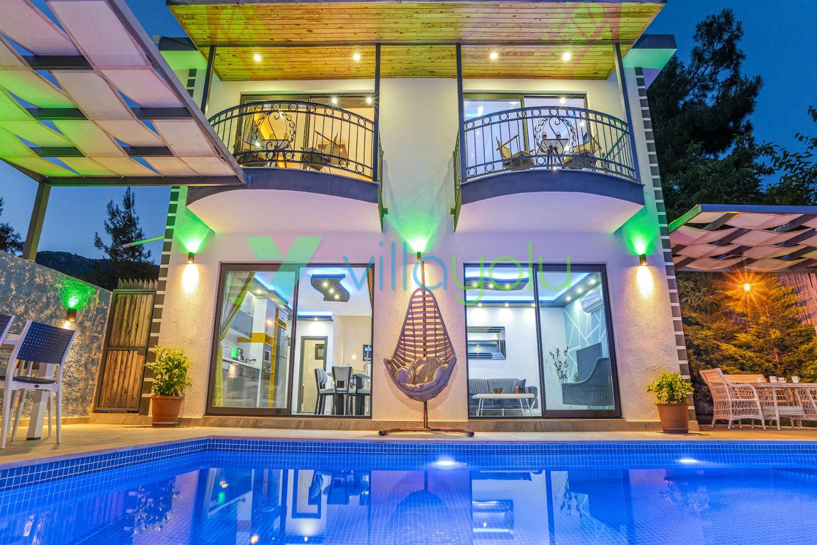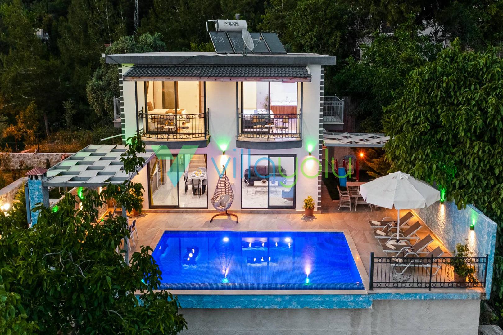 Kalkan İslamlar'da mevkisinde 2 yatak odası 4 kişi kapasiteli geniş havuz ve bahçeli,havuz alanı korunaklı villadır.Giriş katında salon ve amerikan mutfak üst katta ise 2 adet yatak odası bulunmaktadır.Villamız doğa ve deniz manzaralı olup merkeze 10dk mesafededir.