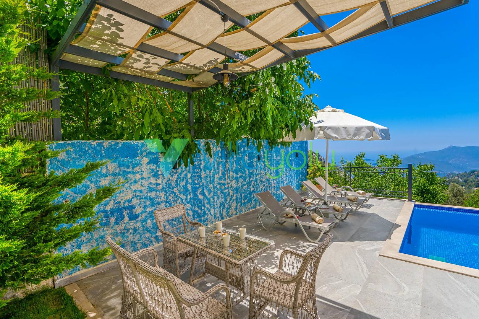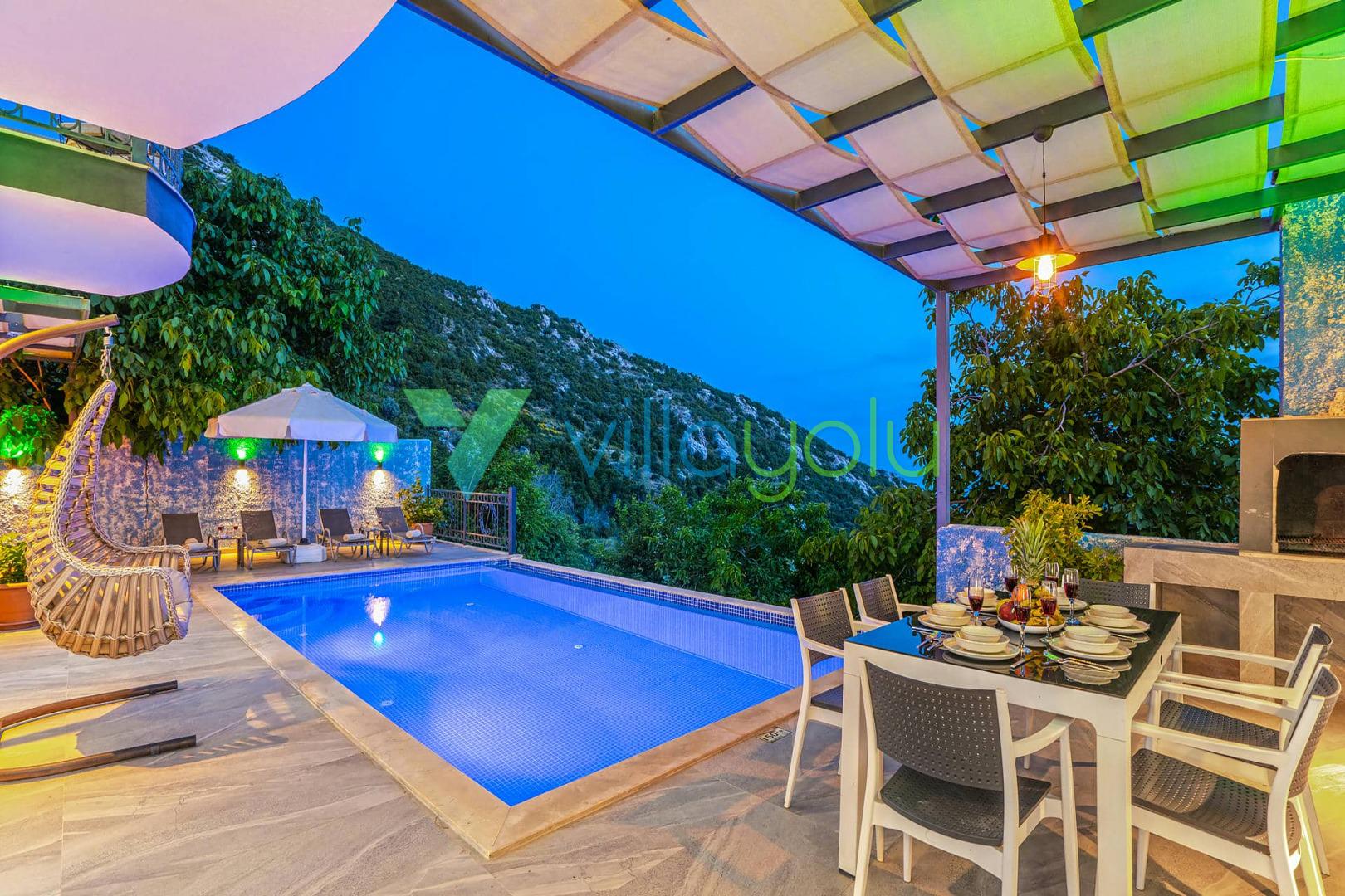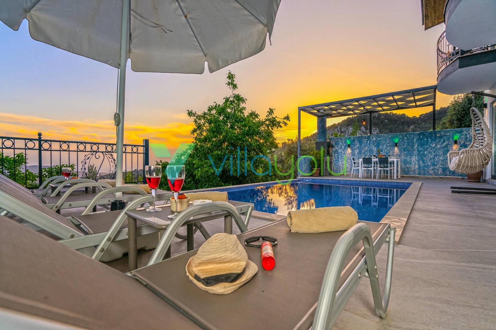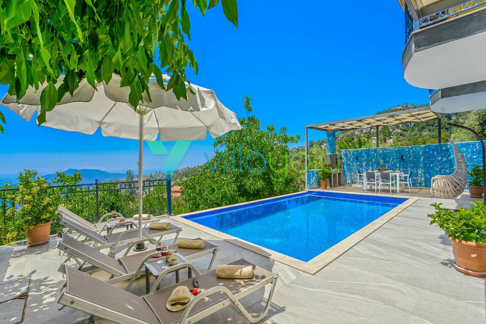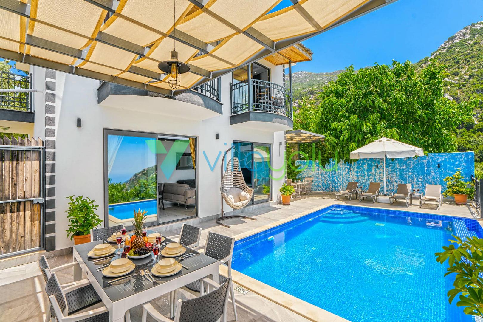 Kalkan İslamlar'da mevkisinde 2 yatak odası 4 kişi kapasiteli geniş havuz ve bahçeli,havuz alanı korunaklı villadır.Giriş katında salon ve amerikan mutfak üst katta ise 2 adet yatak odası bulunmaktadır.Villamız doğa ve deniz manzaralı olup merkeze 10dk mesafededir.