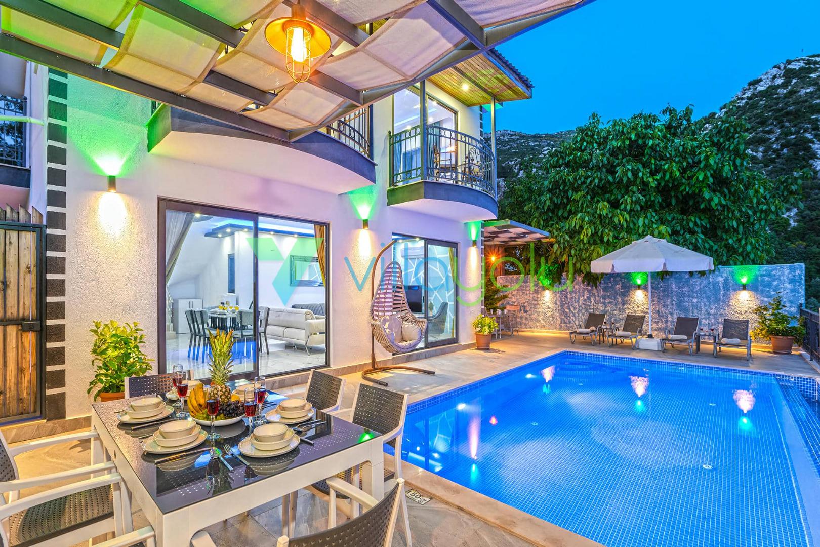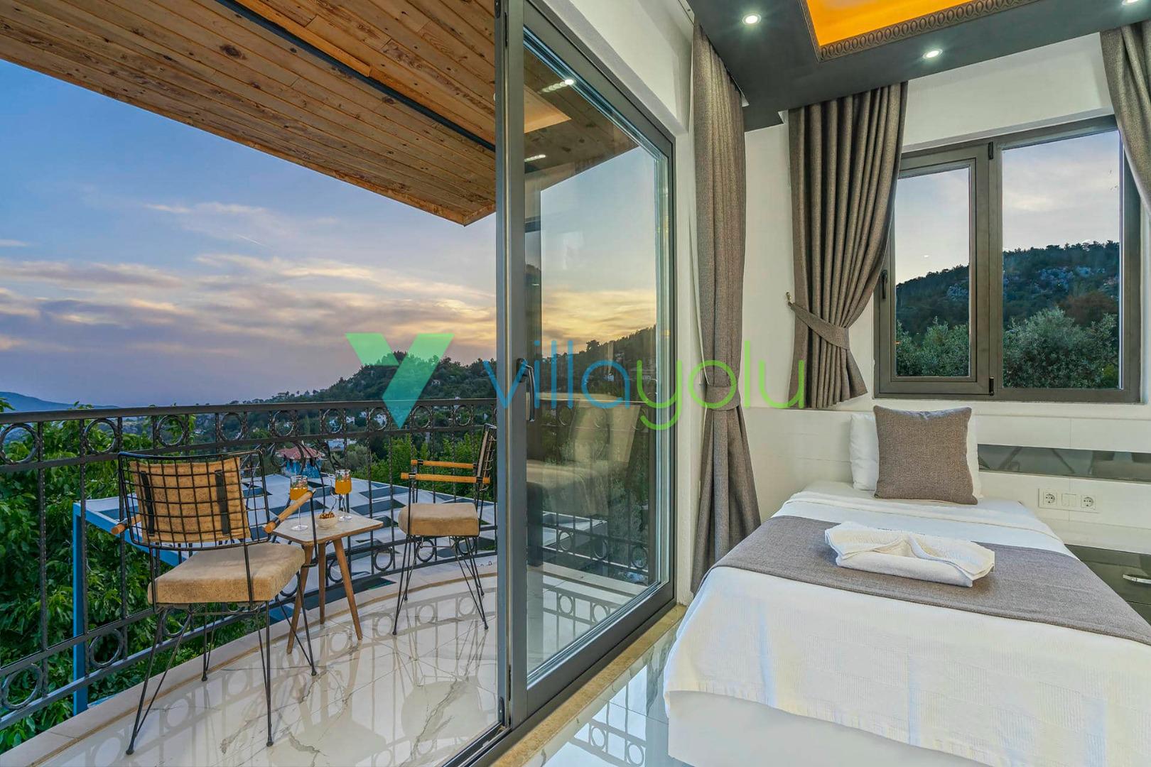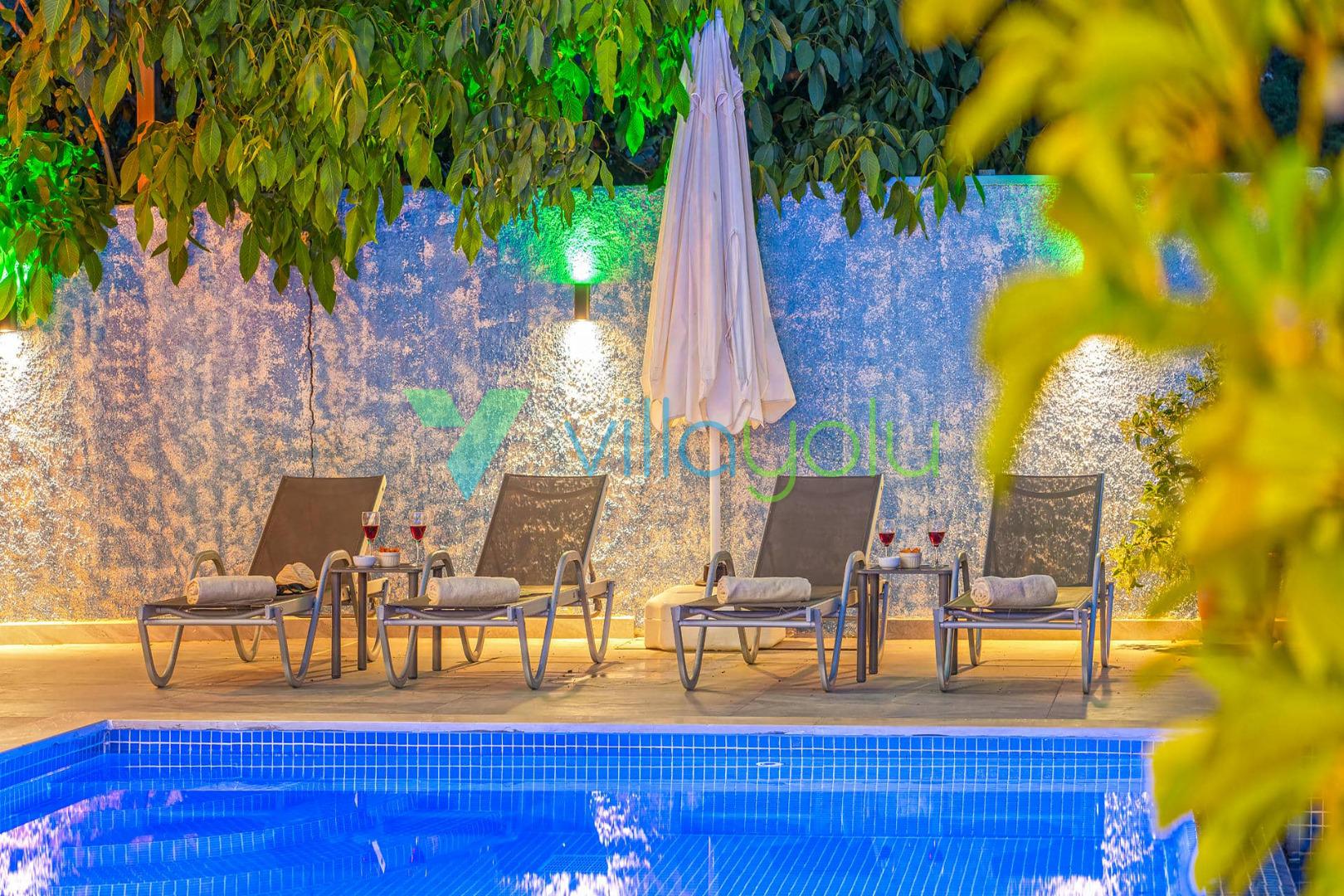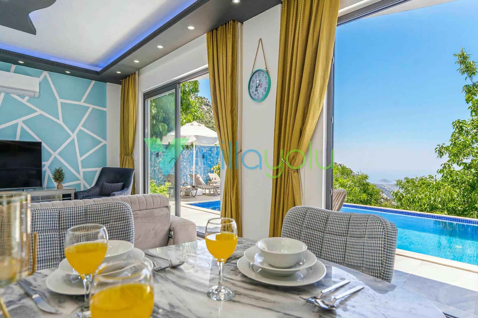 Kalkan İslamlar'da mevkisinde 2 yatak odası 4 kişi kapasiteli geniş havuz ve bahçeli,havuz alanı korunaklı villadır.Giriş katında salon ve amerikan mutfak üst katta ise 2 adet yatak odası bulunmaktadır.Villamız doğa ve deniz manzaralı olup merkeze 10dk mesafededir.