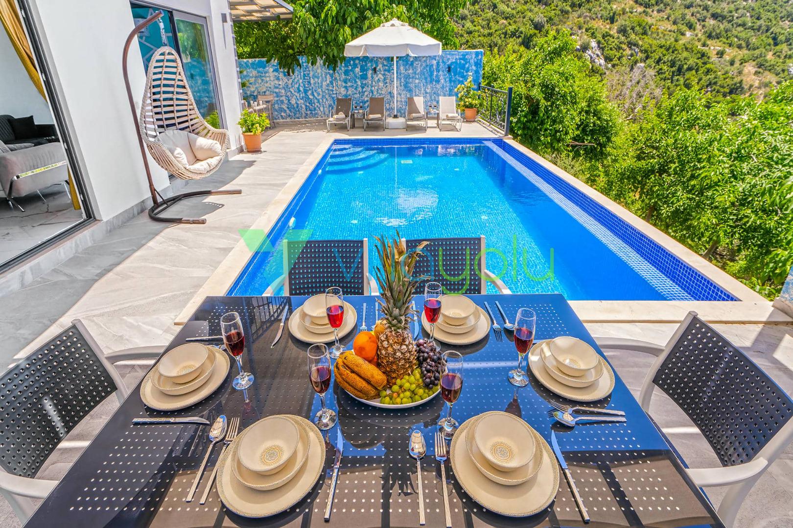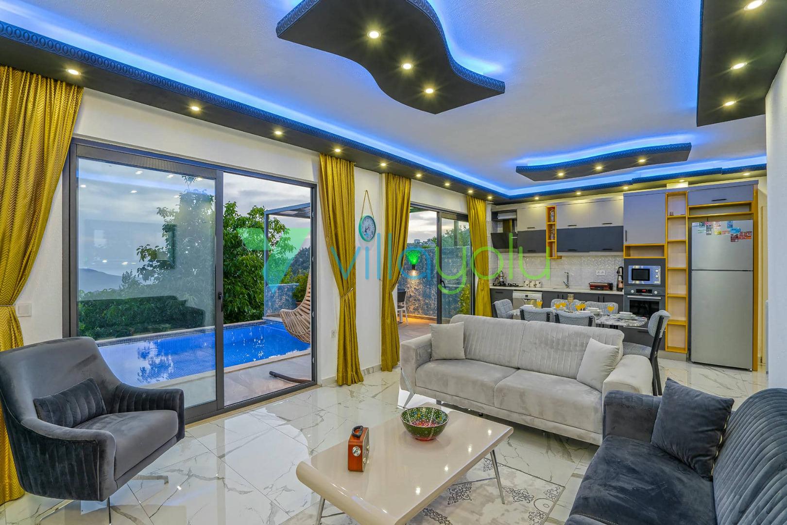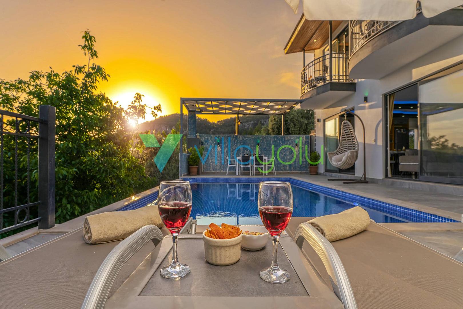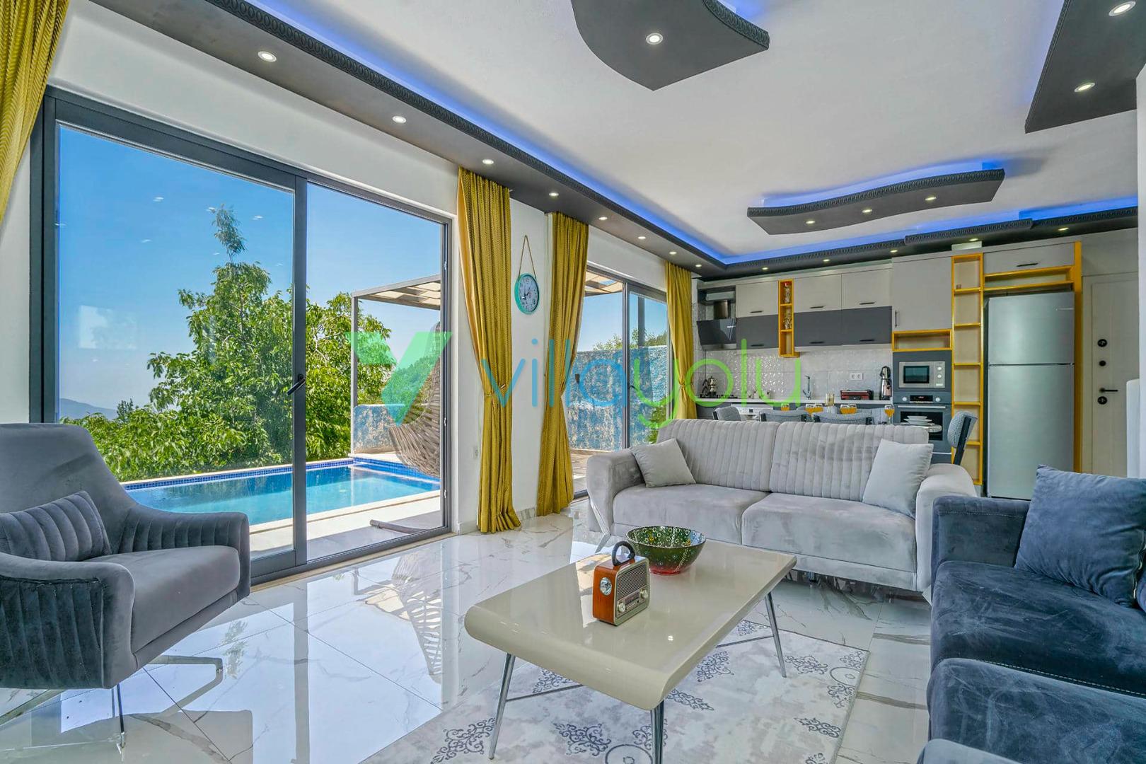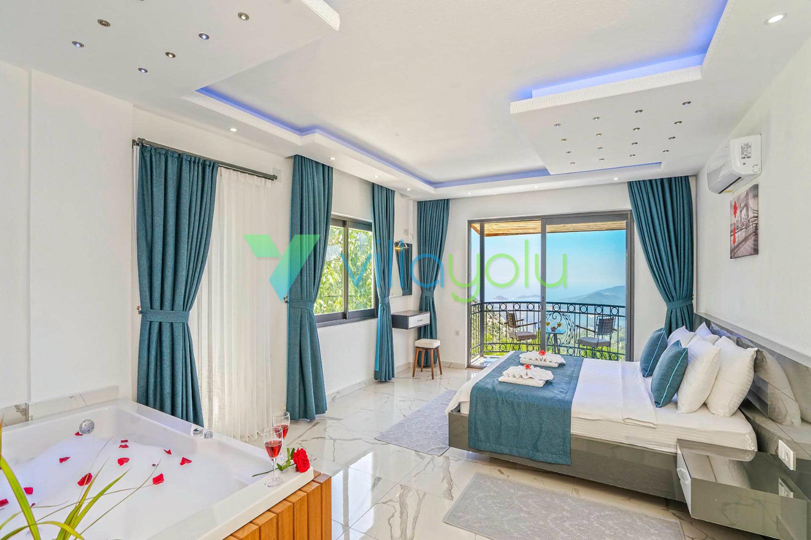 Kalkan İslamlar'da mevkisinde 2 yatak odası 4 kişi kapasiteli geniş havuz ve bahçeli,havuz alanı korunaklı villadır.Giriş katında salon ve amerikan mutfak üst katta ise 2 adet yatak odası bulunmaktadır.Villamız doğa ve deniz manzaralı olup merkeze 10dk mesafededir.