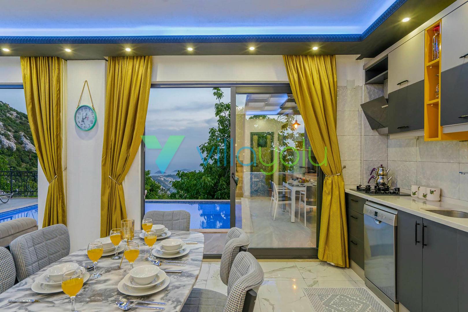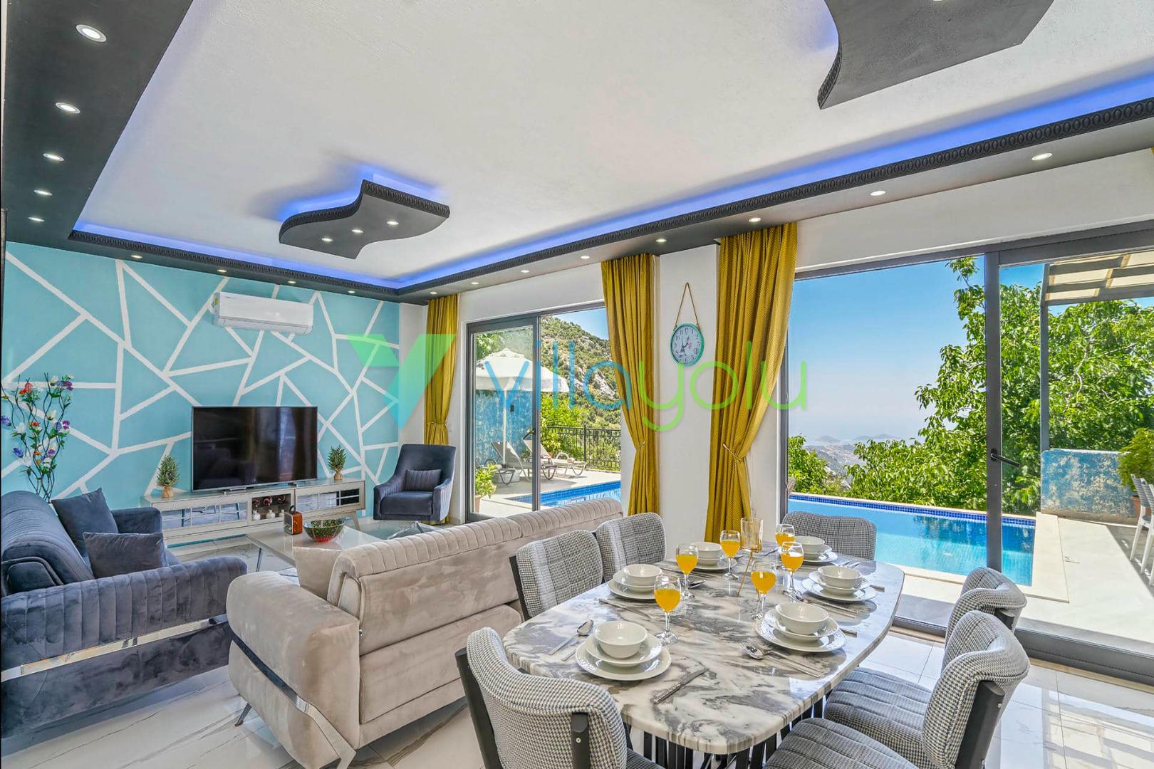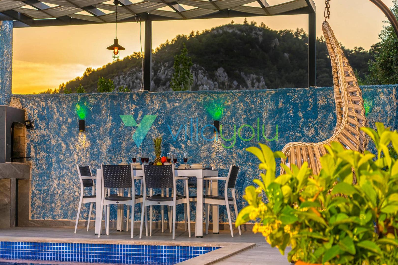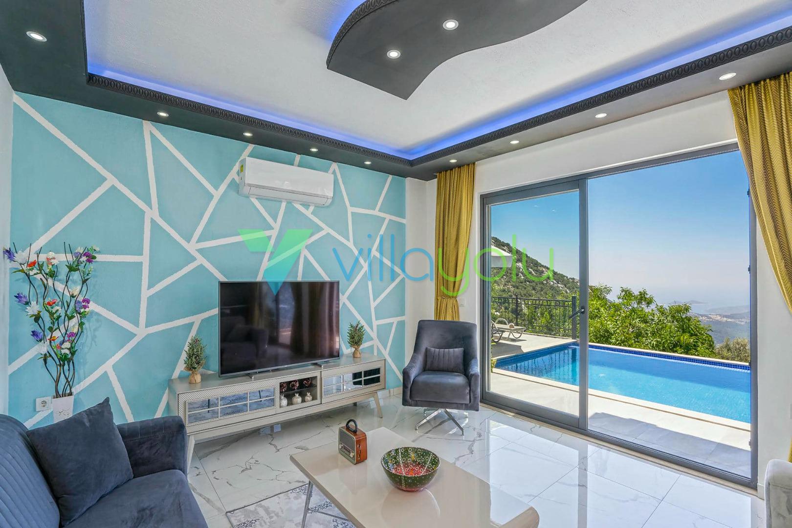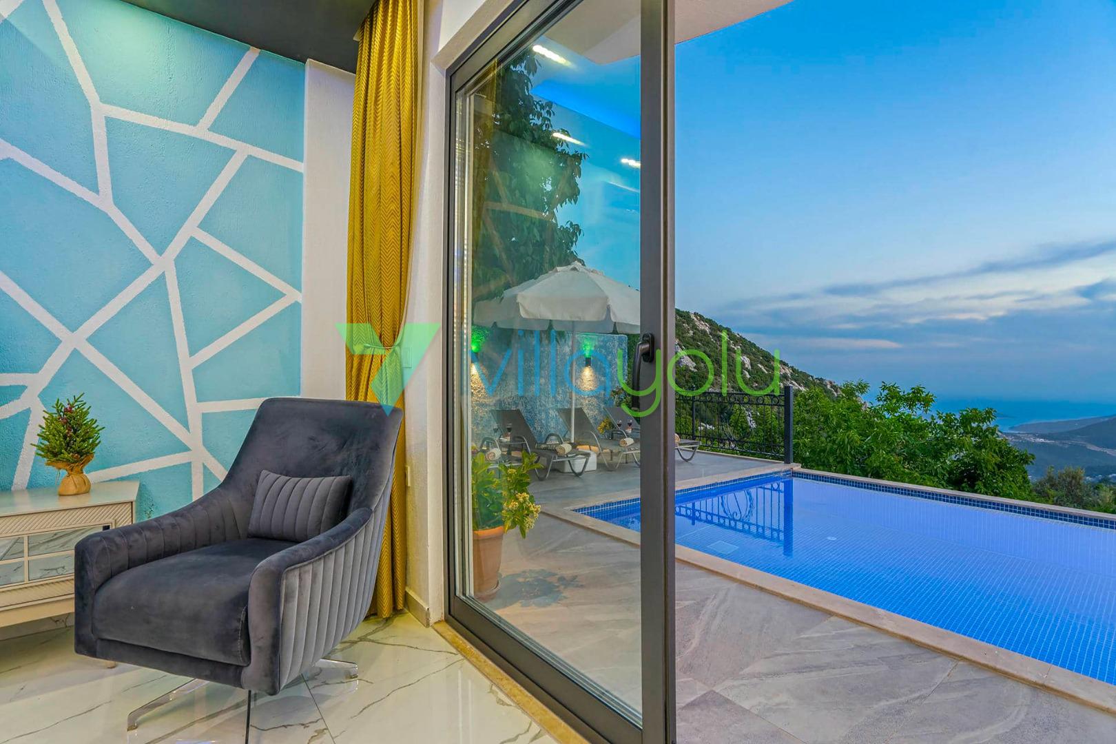 Kalkan İslamlar'da mevkisinde 2 yatak odası 4 kişi kapasiteli geniş havuz ve bahçeli,havuz alanı korunaklı villadır.Giriş katında salon ve amerikan mutfak üst katta ise 2 adet yatak odası bulunmaktadır.Villamız doğa ve deniz manzaralı olup merkeze 10dk mesafededir.