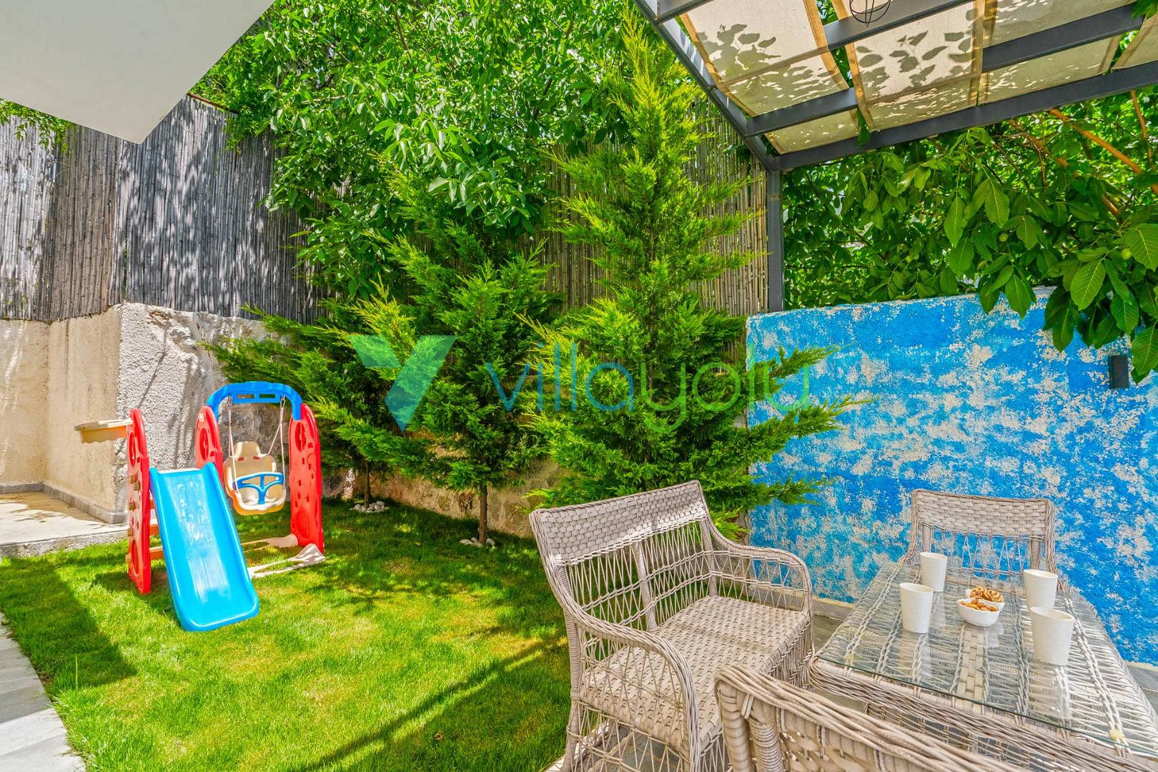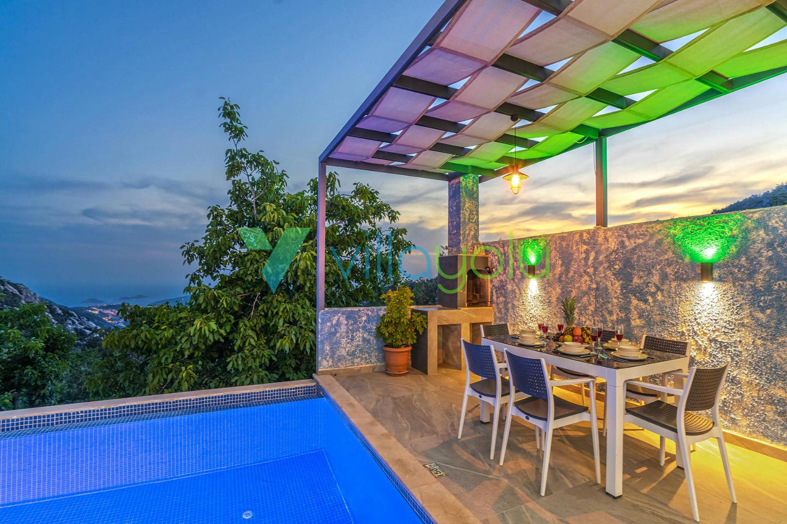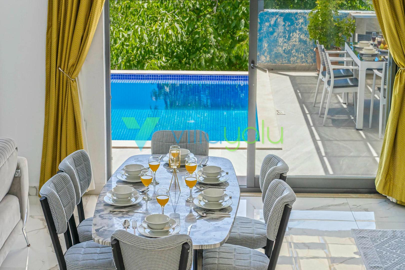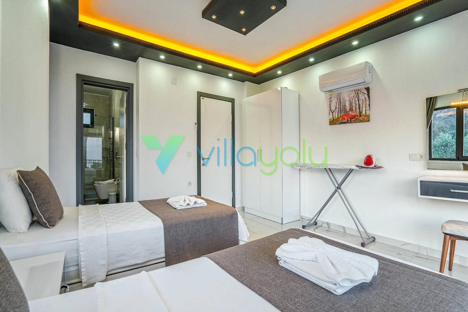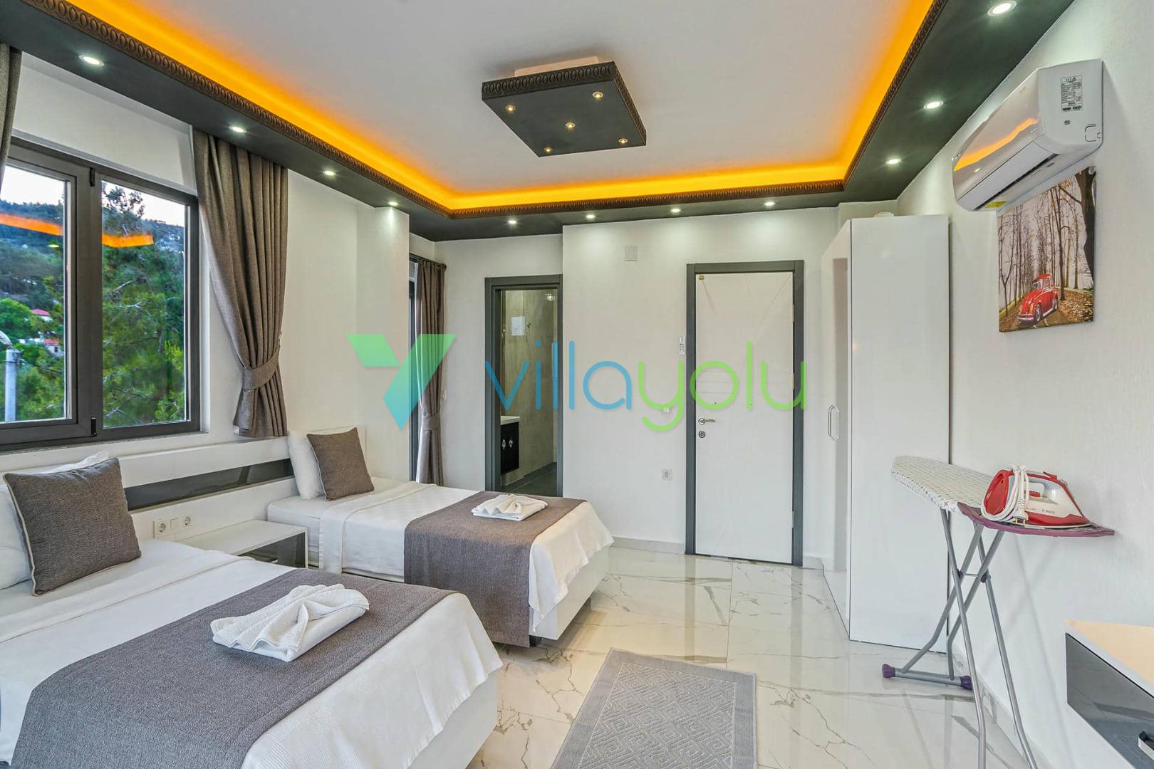 Kalkan İslamlar'da mevkisinde 2 yatak odası 4 kişi kapasiteli geniş havuz ve bahçeli,havuz alanı korunaklı villadır.Giriş katında salon ve amerikan mutfak üst katta ise 2 adet yatak odası bulunmaktadır.Villamız doğa ve deniz manzaralı olup merkeze 10dk mesafededir.