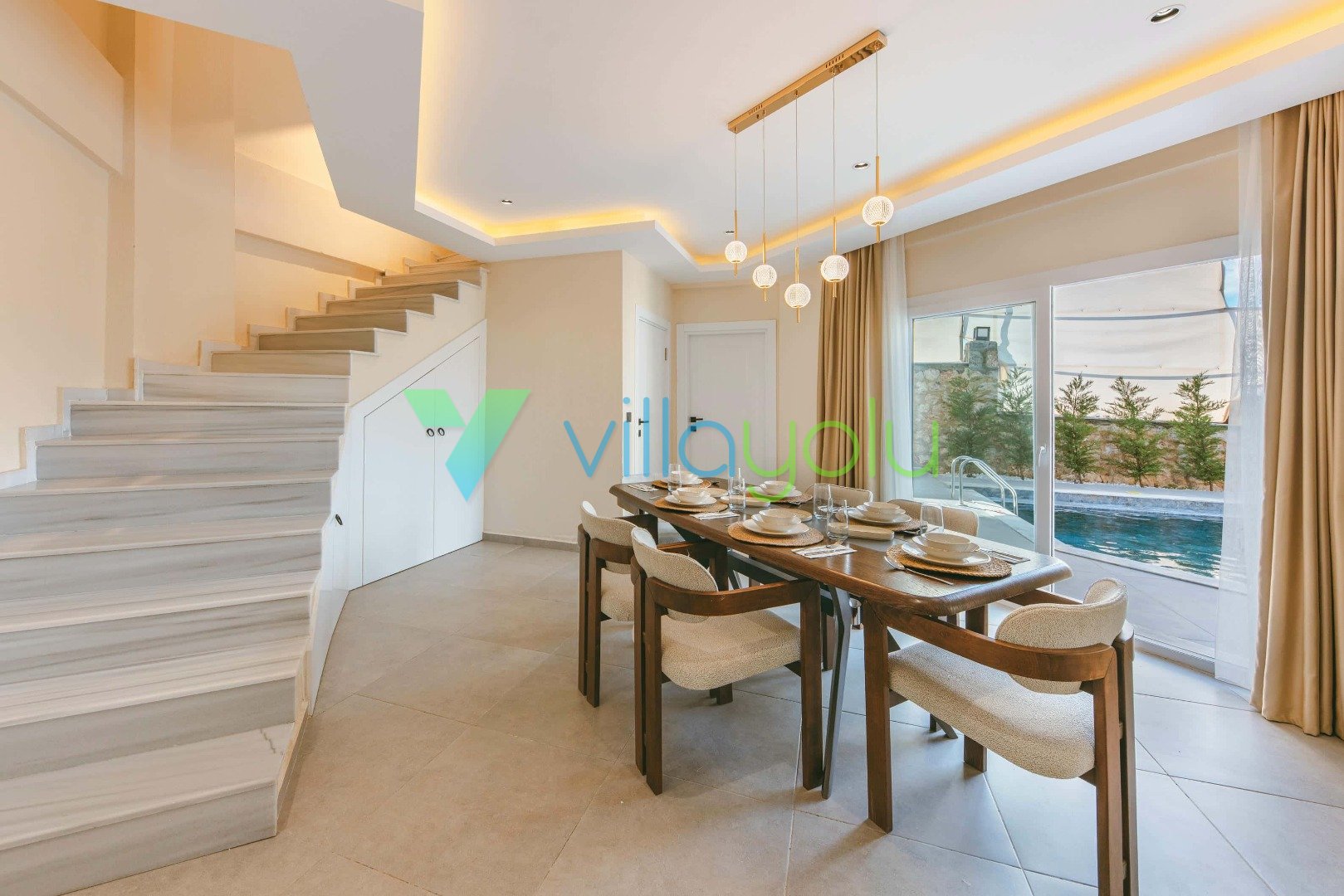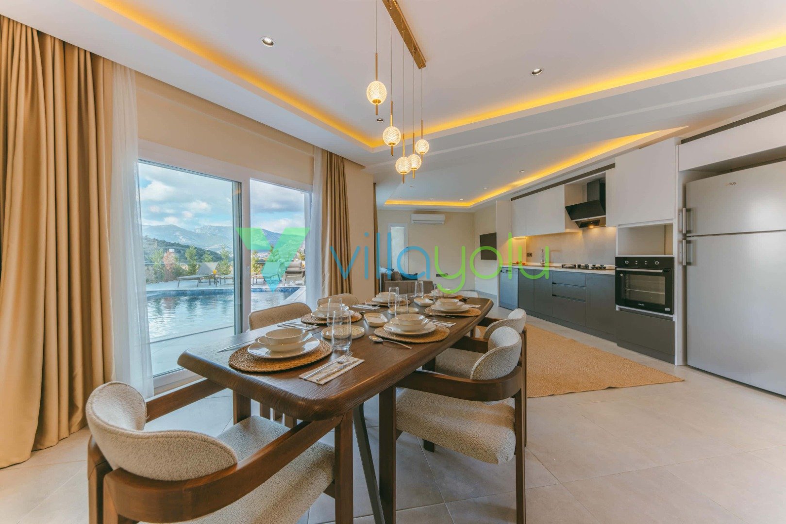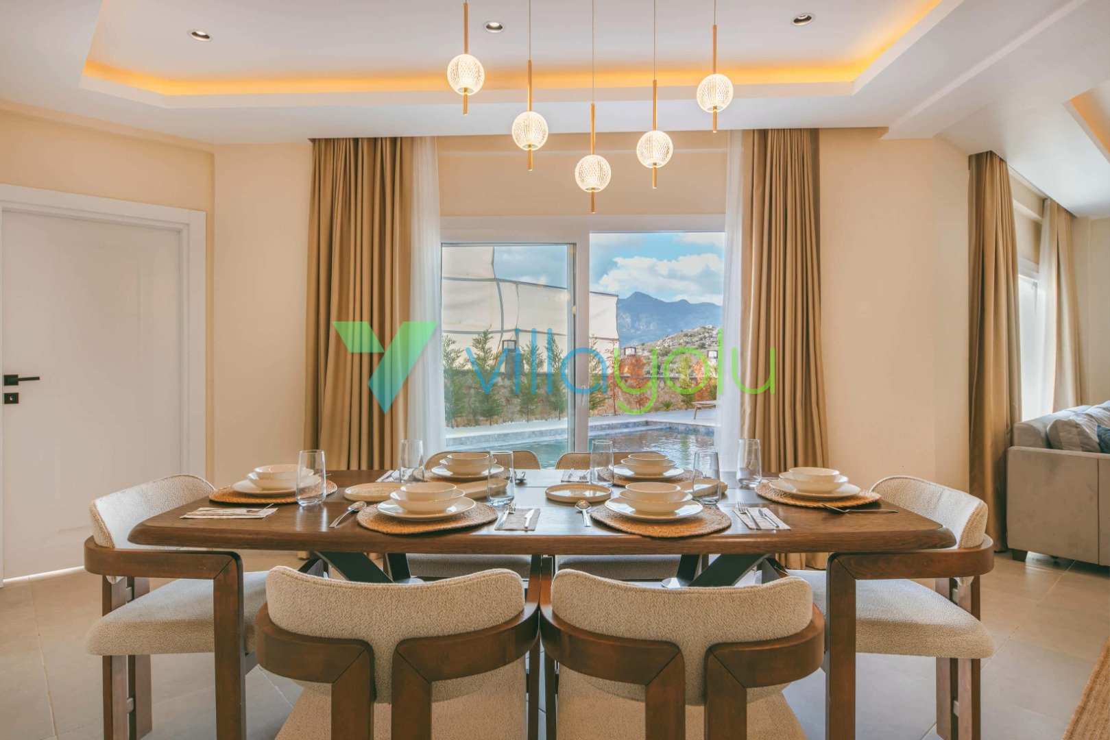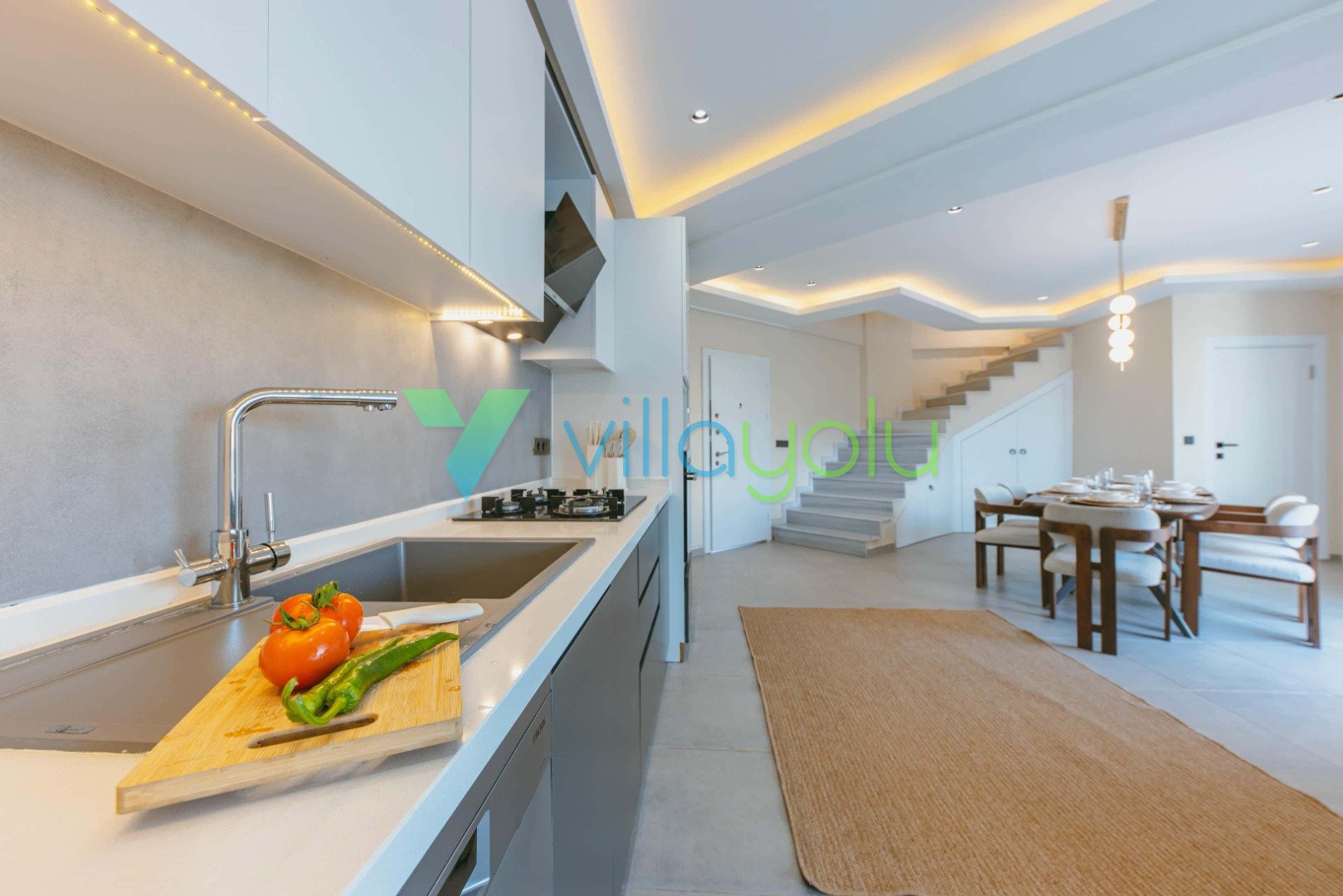 Son derece modern ve lüks tasarıma sahip villamız kaliteli eşyalarla döşenmiştir.Konum itibariyle sessiz sakin bir konumda yer almaktadır.