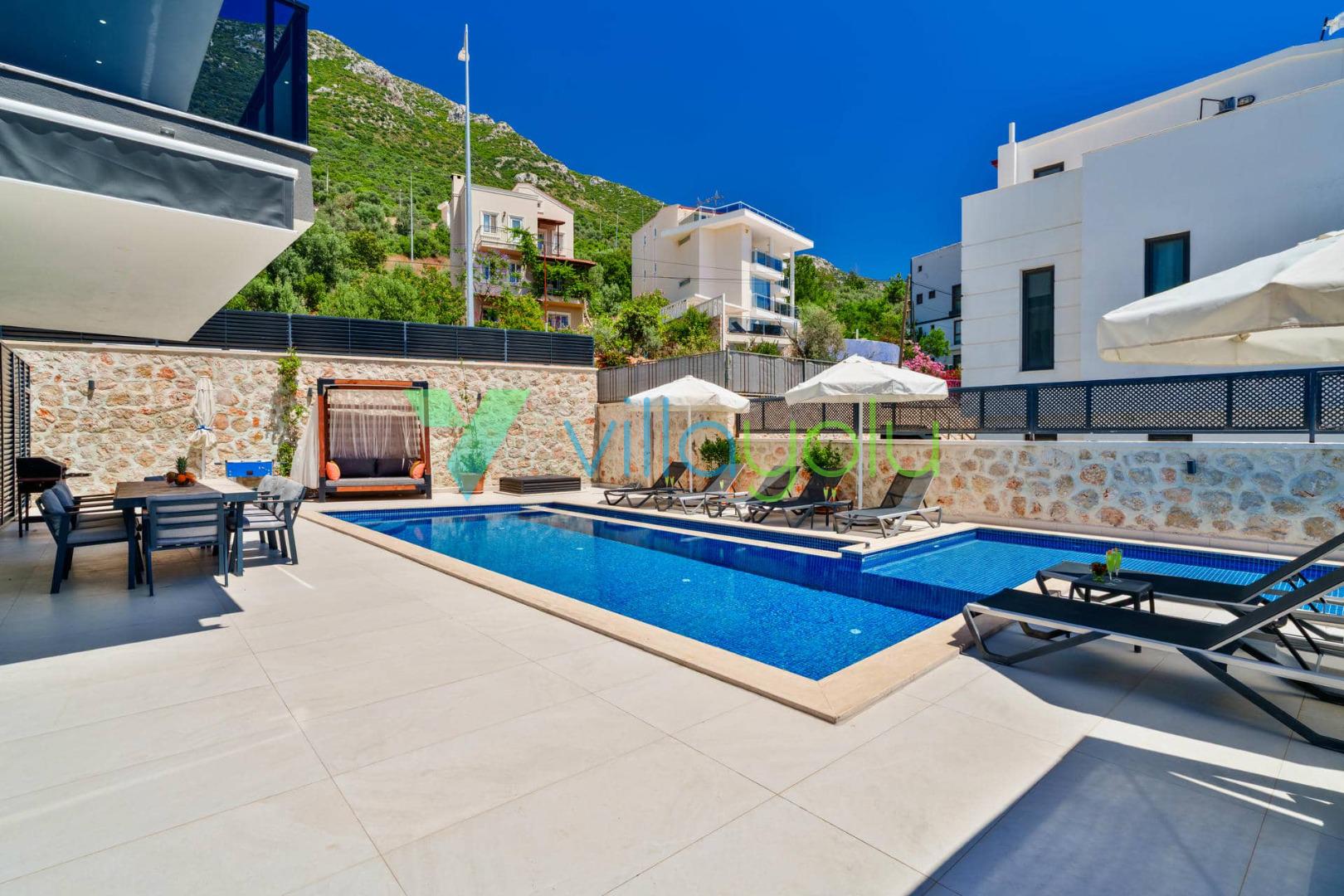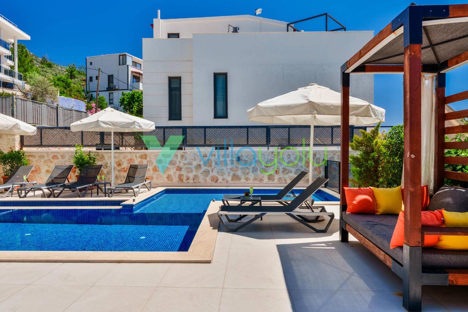Villa Cassa, Kalkan Kızıltaş'ta bulunan 4 yatak odalı 8 kişilik deniz manzaralı lüks villamızdır.Villamızın terası panoramik deniz manzaralıdır.Bodrum kat kısmında misafirlerinizin tatil boyunca eğlenebilecekleri bilardo masası,masa tenisi,hamam,sauna,kapalı ısıtmalı havuz ve spor aletleri bulunmaktadır. Kalkan merkeze çok yakın konumda bulunan villamız,plajlara araçla 5 dk mesafededir.Geniş aile ve arkadaş grupları için harika bir seçenektir.