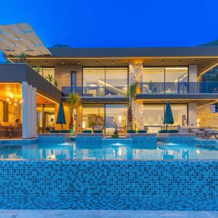 Villa Ela Quality,Kalkan merkeze yakın noktalarından Kızıltaş mevkisinde 2023 yapımı 4 yatak odası 9 kişi kapasili özel havuzlu lüks tatil villasıdır.Villamızın havuz alanı %70 korunaklı olup havuza entegre jakuzi ve çocuk havuzu olarak kullanılabilecek sığ havuz bulunmaktadır.Kalkan'ın harika şehir ve deniz manzarasına sahip evimiz son derece modern bir mimariye sahip olup üst kalite eşyalarla döşenmiştir.Geniş aile ve arkadaş grupları için olan villamızda sauna da bulunmaktadır.