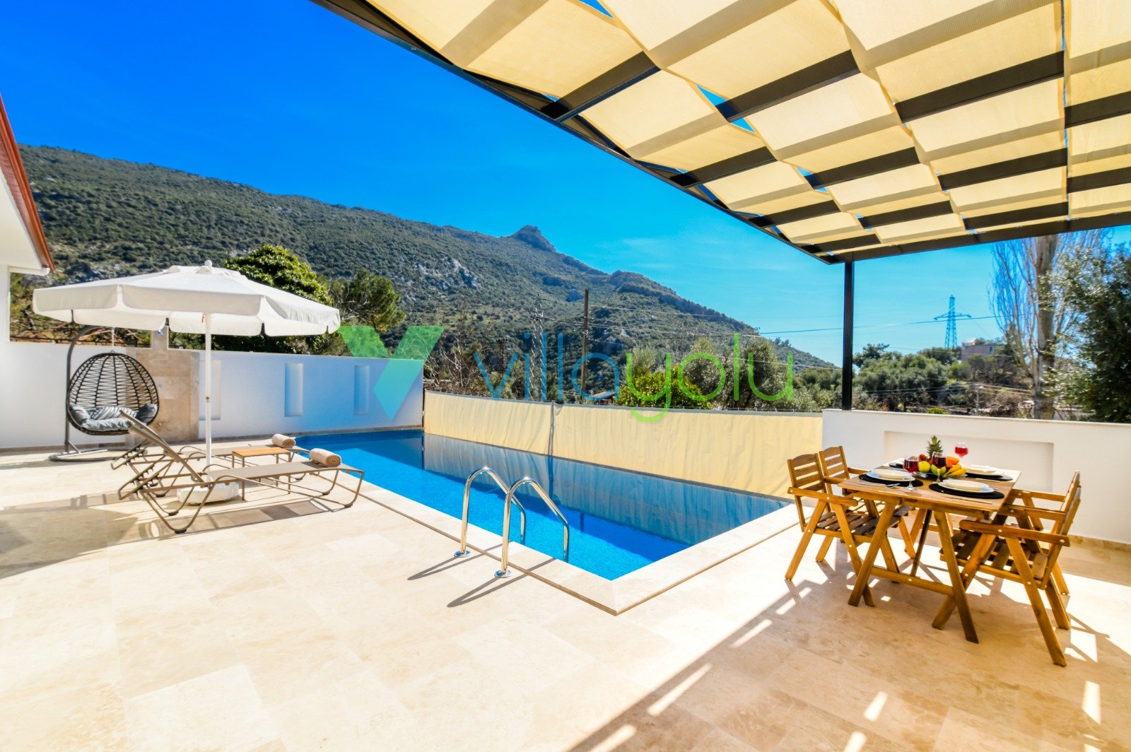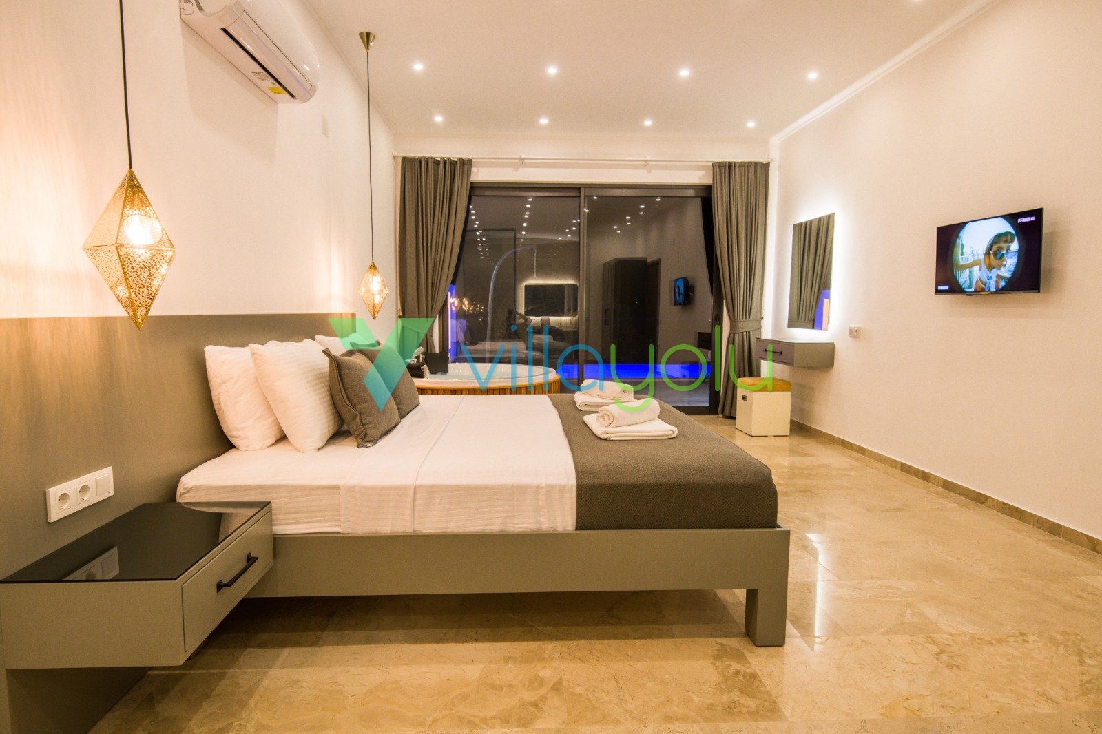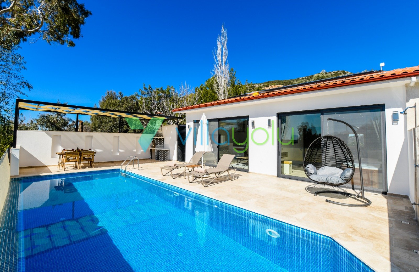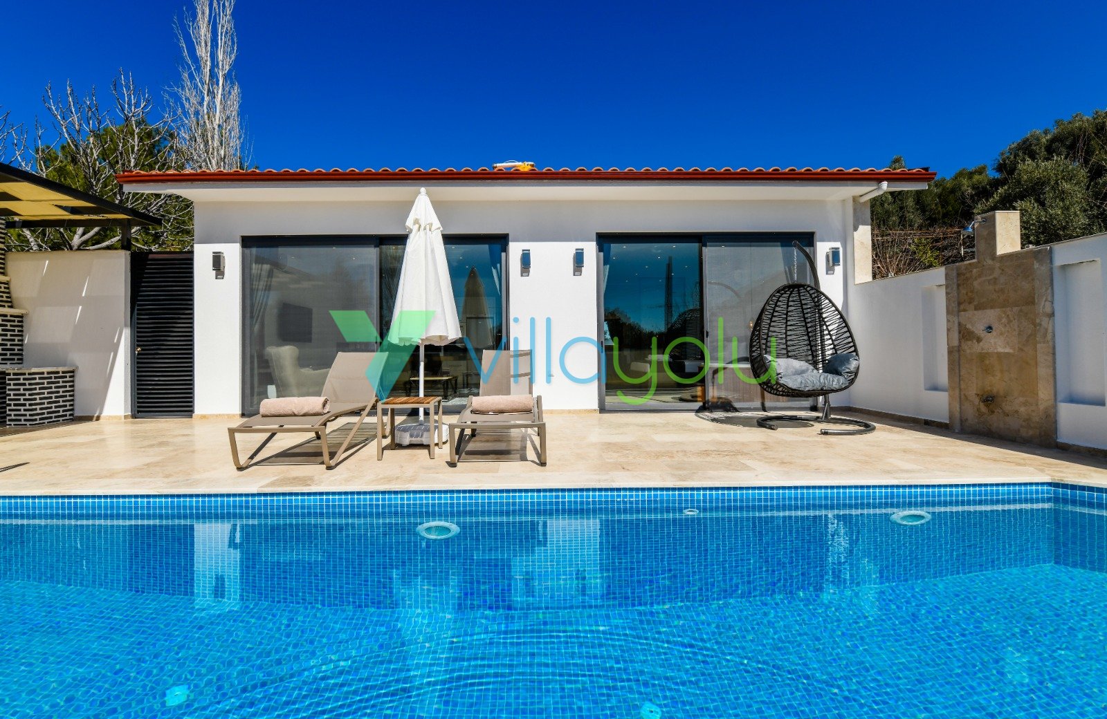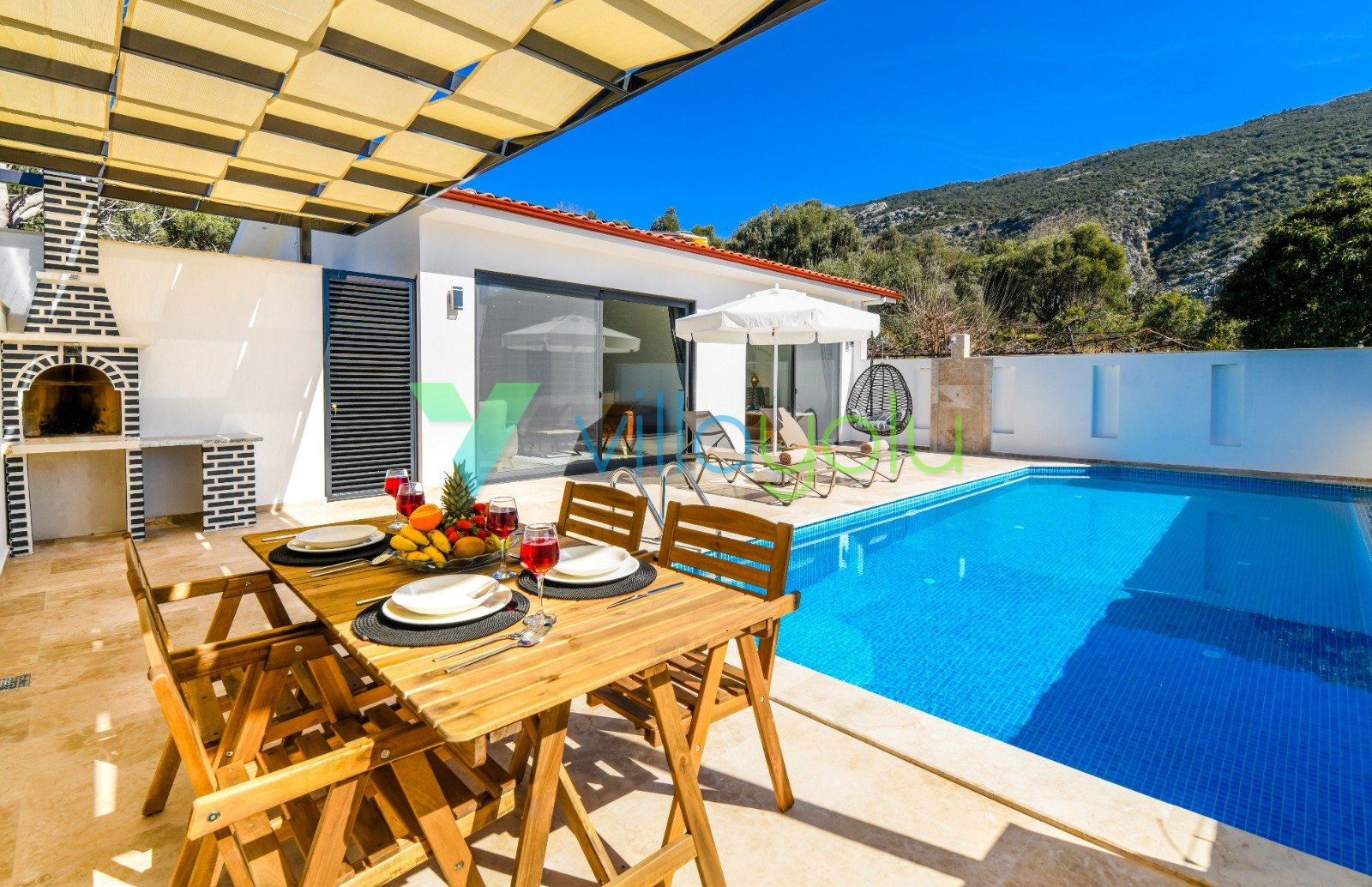 Villa Gala-2, Kalkan İslamlar'da tek yatak odalı son derece modern ve kaliteli eşyalarla döşenmiş, havuz alanı korunaklı jakuzili balayı villasıdır.