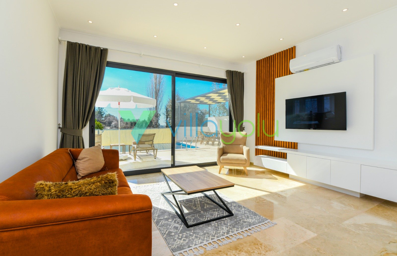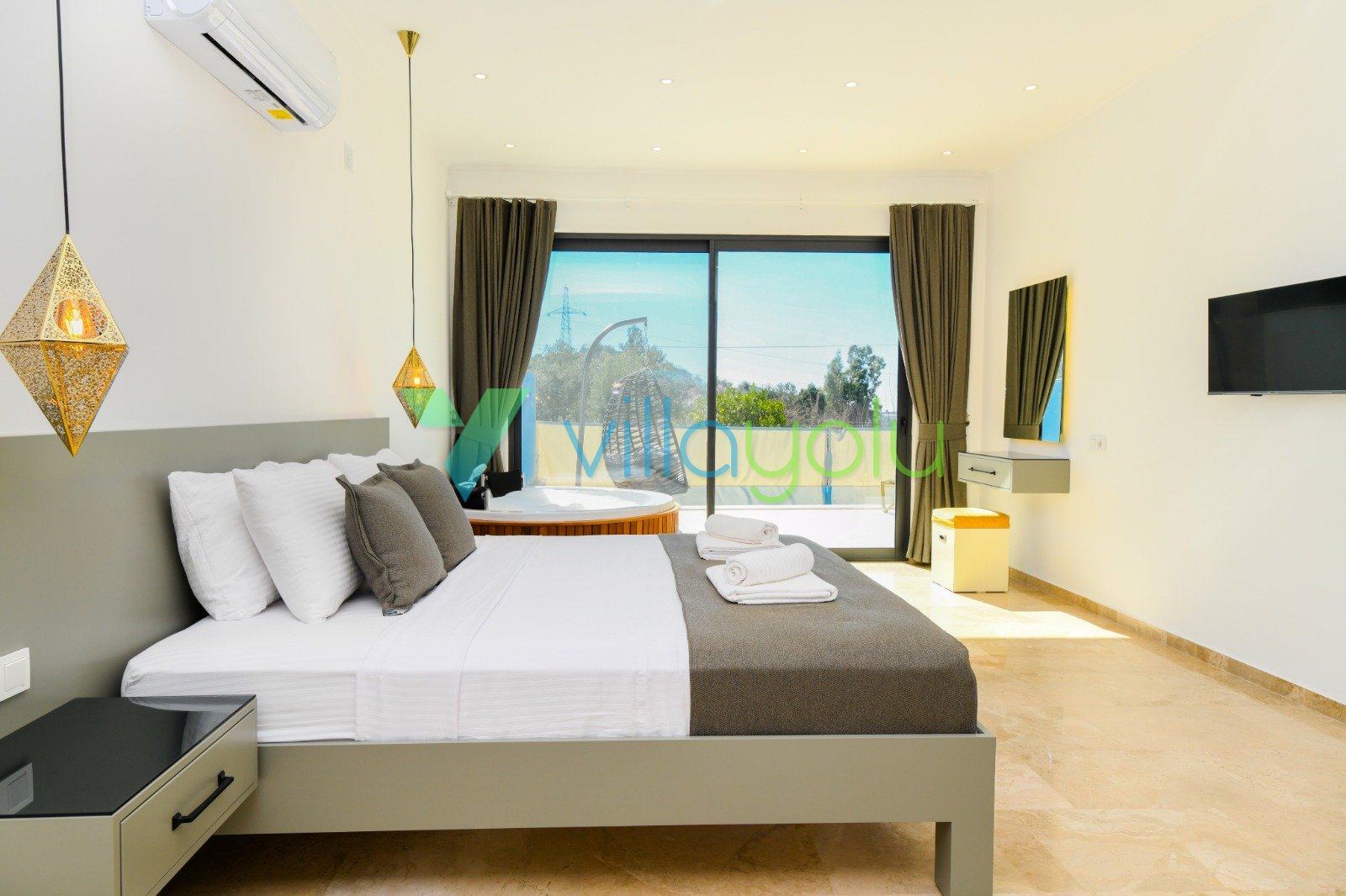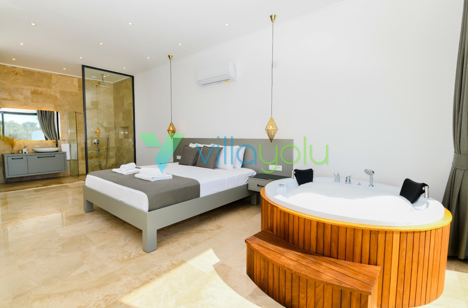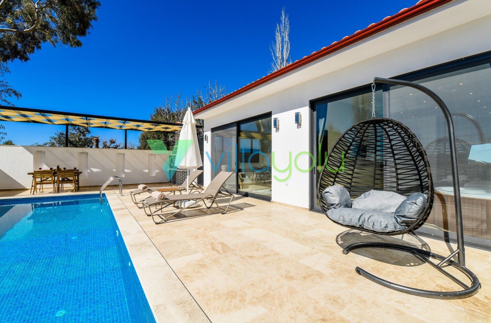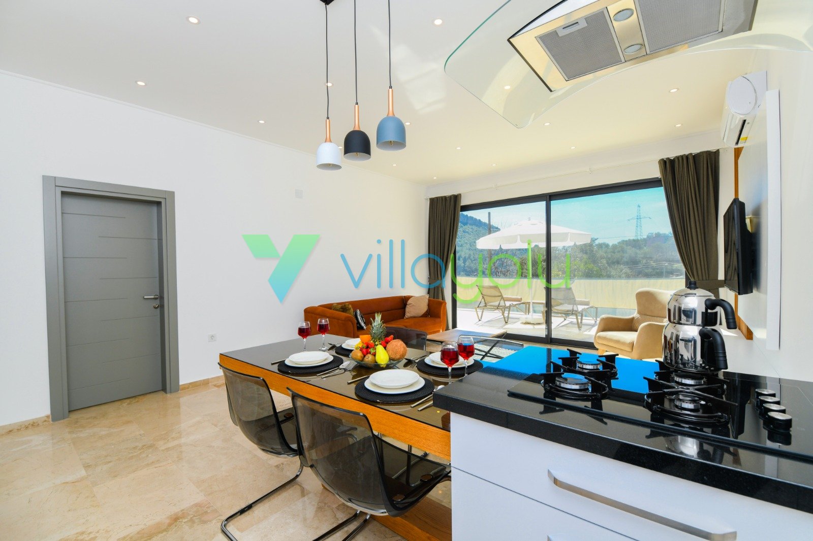 Villa Gala-2, Kalkan İslamlar'da tek yatak odalı son derece modern ve kaliteli eşyalarla döşenmiş, havuz alanı korunaklı jakuzili balayı villasıdır.