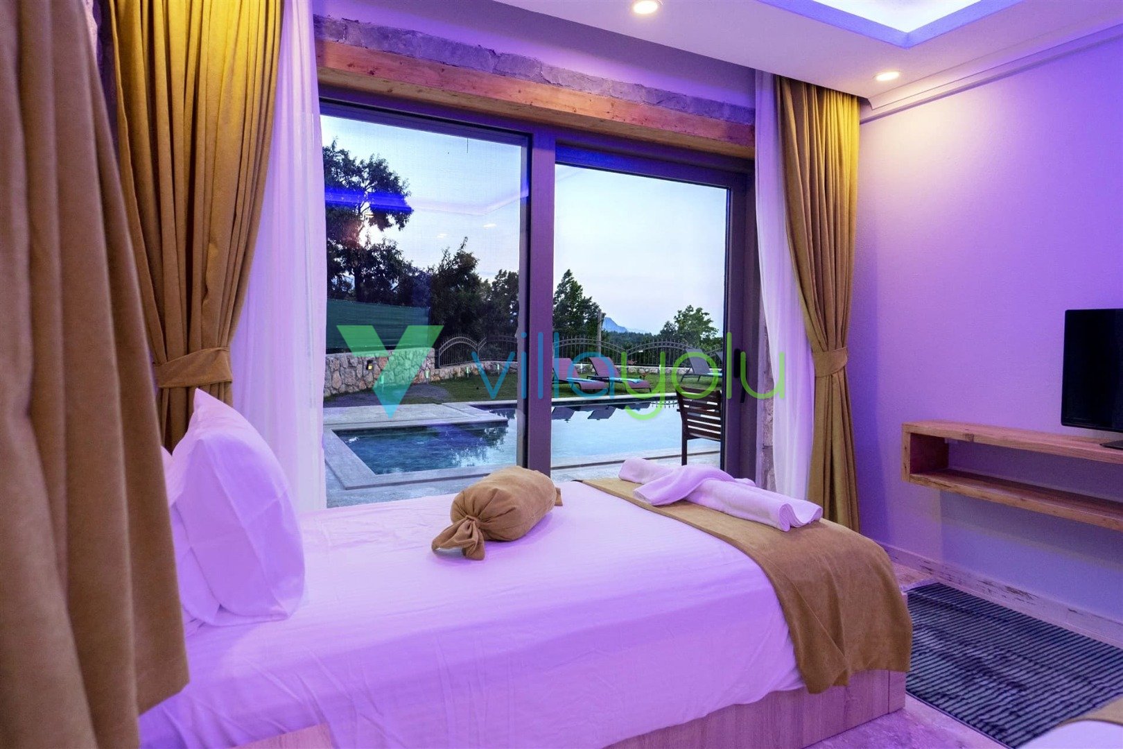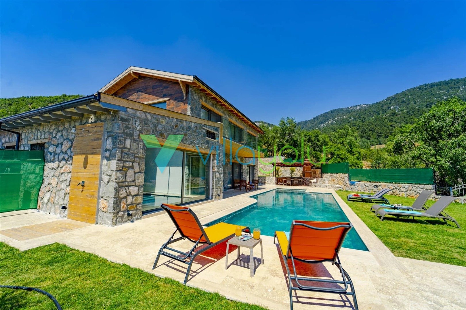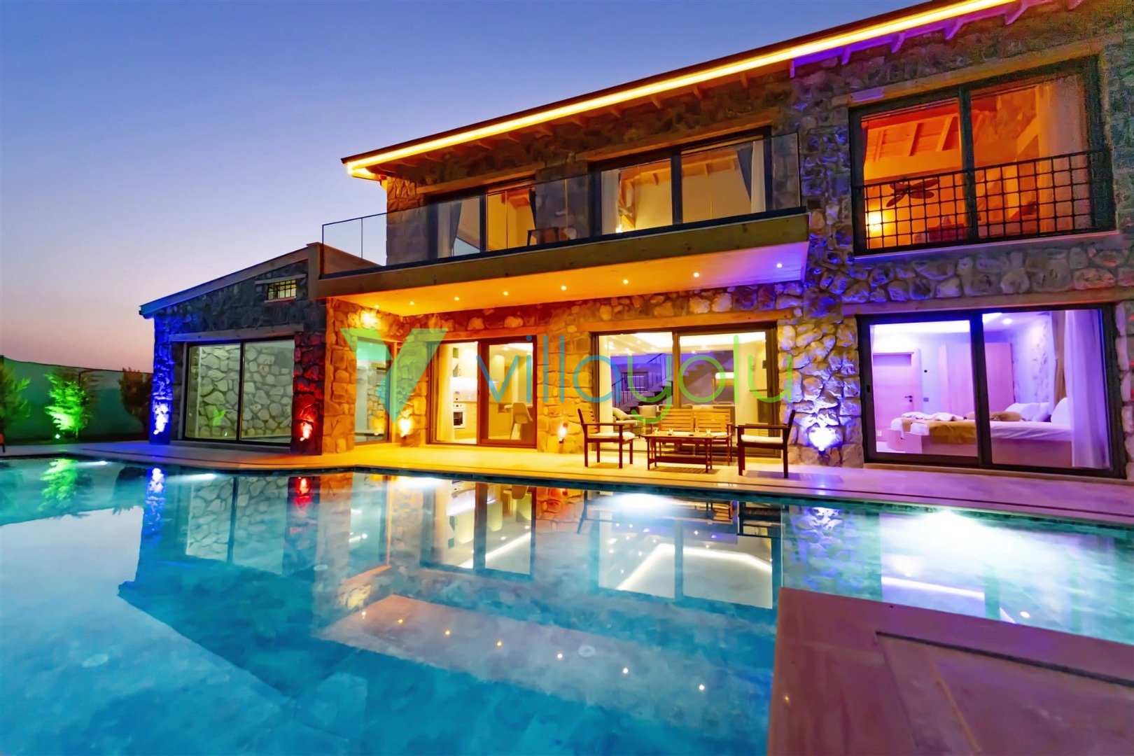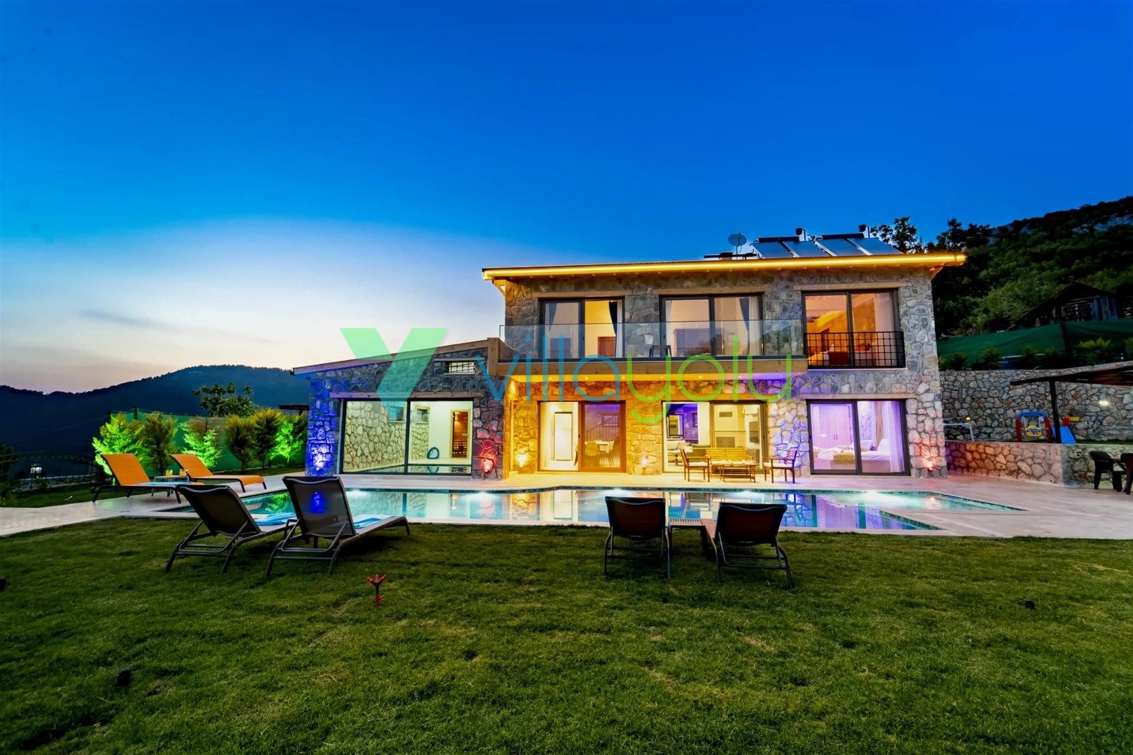 Son derece modern ve lüks tasarıma villamız harika bir doğa içerisindedir.Villamızda, çocuk havuzu ve oyun alanı,kapalı ısıtma havuzu, hamam, sauna ve jakuzi ile hoş vakit geçirmek için farklı olanaklarınız bulunmaktadır.2 adet çift kişilik oda,1 adet ikiz yataklı odanın bulunduğu evimiz dubleks mimariye sahiptir.