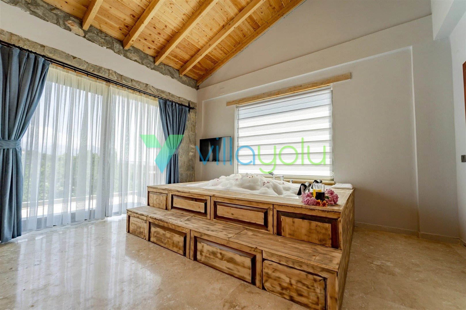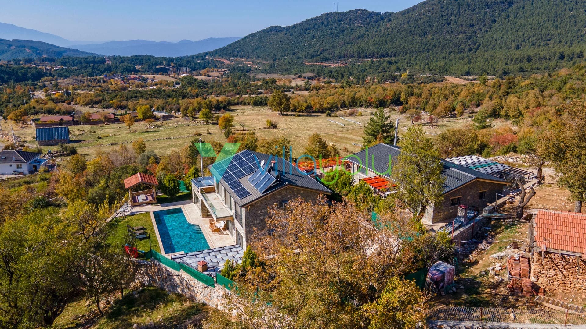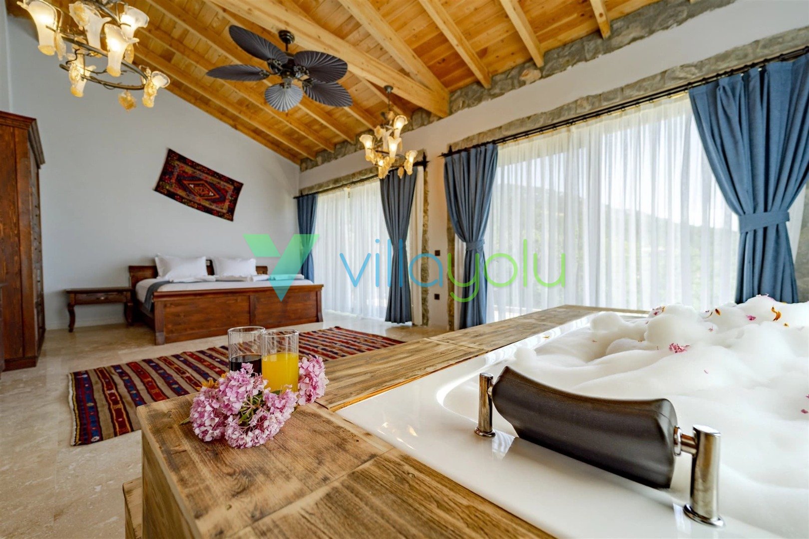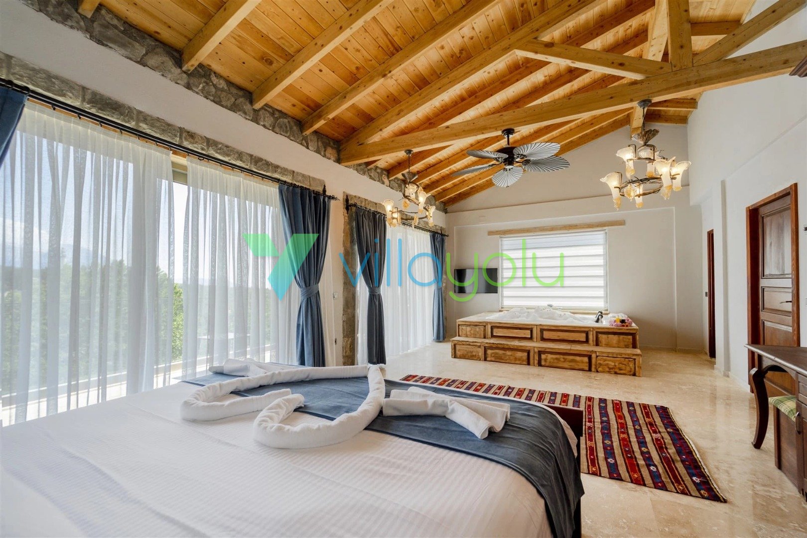 Son derece modern ve lüks tasarıma villamız harika bir doğa içerisindedir.Villamızda, çocuk havuzu ve oyun alanı,kapalı ısıtma havuzu, hamam, sauna ve jakuzi ile hoş vakit geçirmek için farklı olanaklarınız bulunmaktadır.2 adet çift kişilik oda,1 adet ikiz yataklı odanın bulunduğu evimiz dubleks mimariye sahiptir.