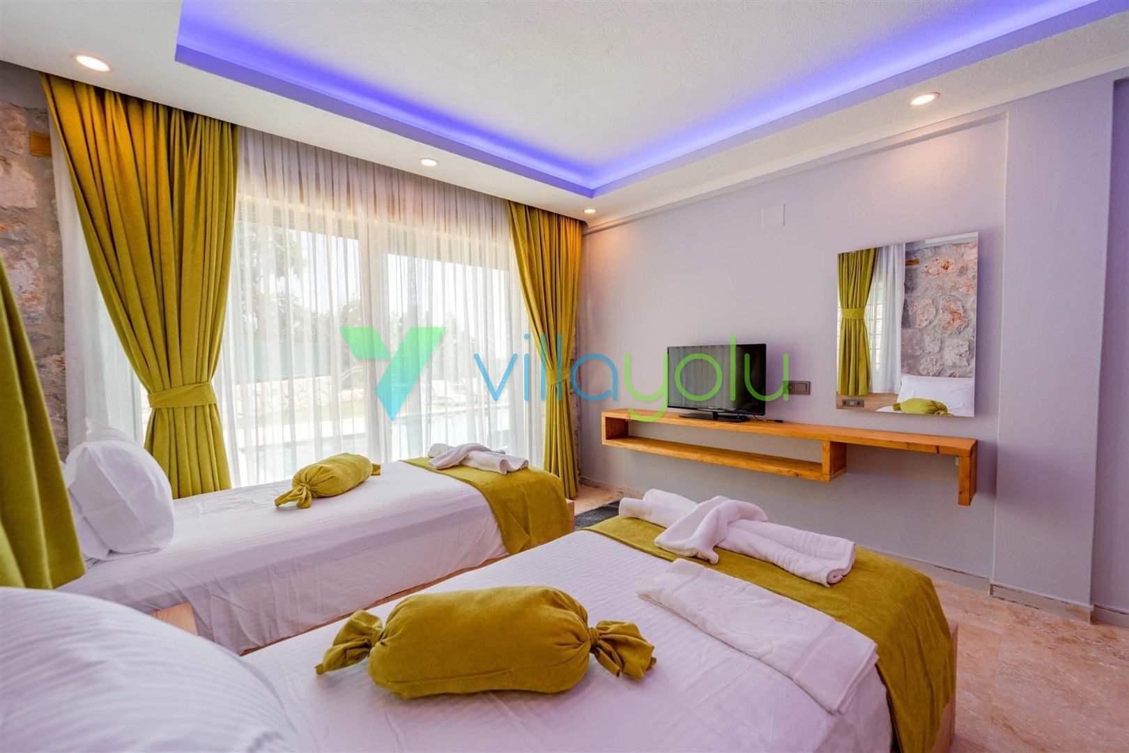 3. Yatak Odası Zemin Katta, Yatak Odası, 2 Tek Kişilik Yatak, Komodin, Elbise Dolabı, Banyo/WC, Klima, TV