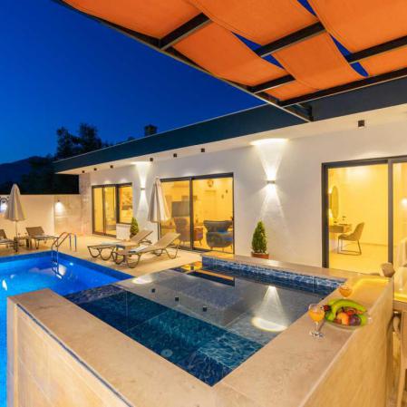 Villa Milid,Kalkan Üzümlü'de 2 yatak odası 4 kişi kapasiteli çocuk havuzlu,jakuzili, havuz alanı korunaklı tatil villasıdır.
