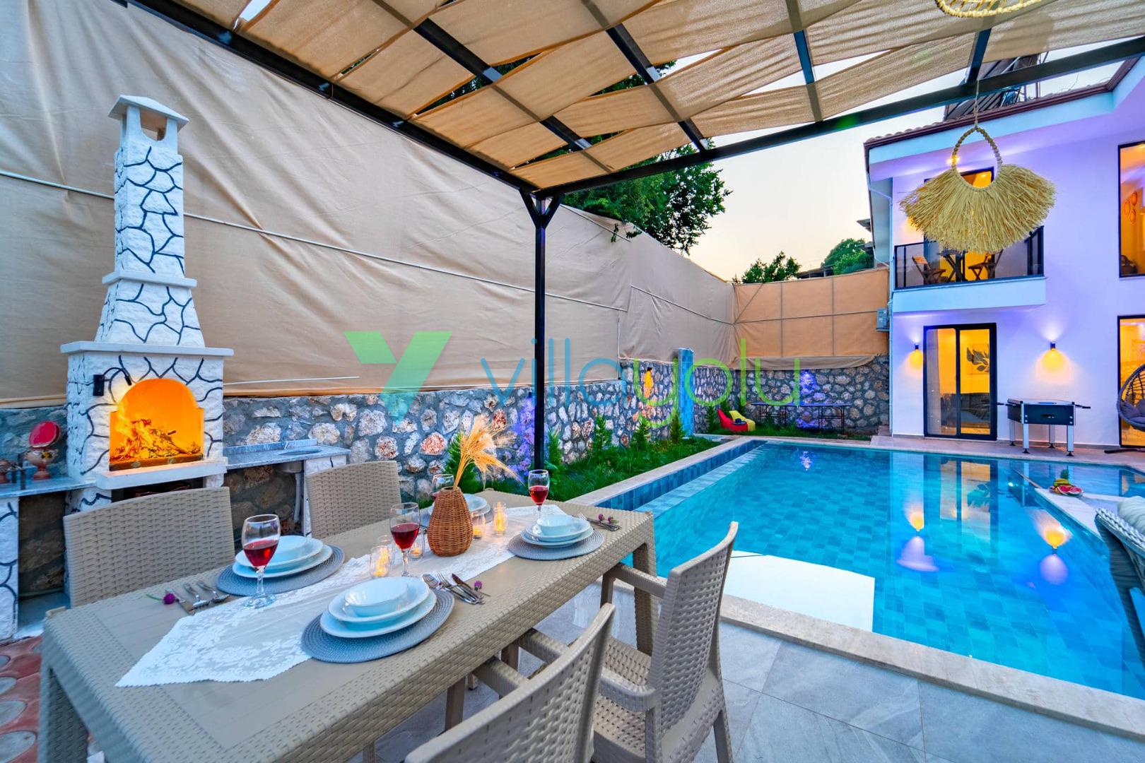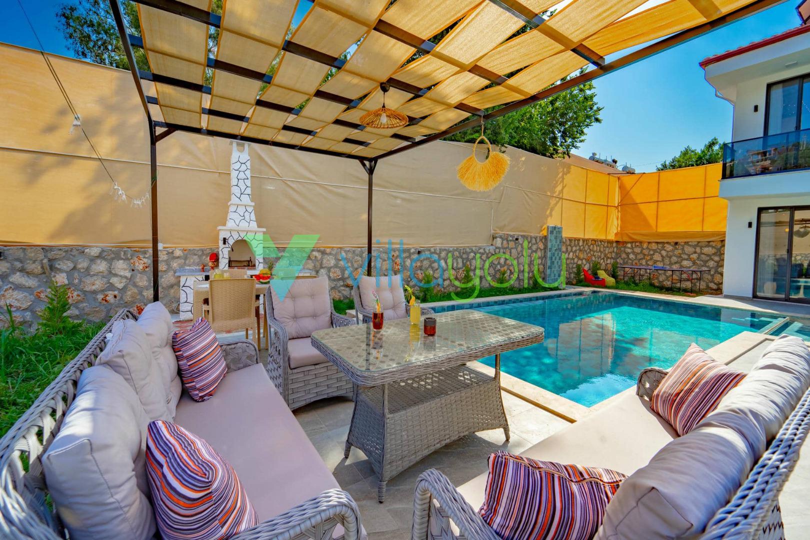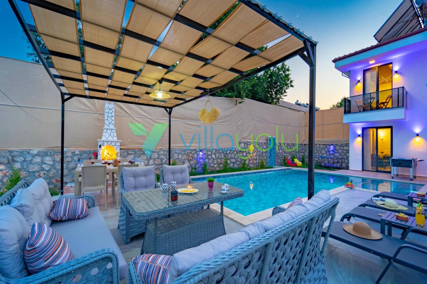 Villa Üçova,Kalkan Patara kesiminde tek katlı ve 2 yatak odalı havuz alanı korunaklı 5 kişilik tatil villasıdır.Ana yatak odasında 2 kişilik jakuzi bulunmaktadır.Geniş bir bahçeye sahip villamızda çocuklu aileler için langırt,masa tenisi,çocuk havuzu ve oyun alanı bulunmaktadır.Modern ve kaliteli eşyalarla donatılmış villamız dünyaca ünlü Patara Plajı 2.5km mesafededir.