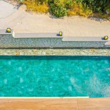 Kış aylarında salonda bulunan kapalı ısıtma havuzu ile 12 ay kiralanabilen evimiz,60 m2 L şeklinde dış havuza da sahiptir.